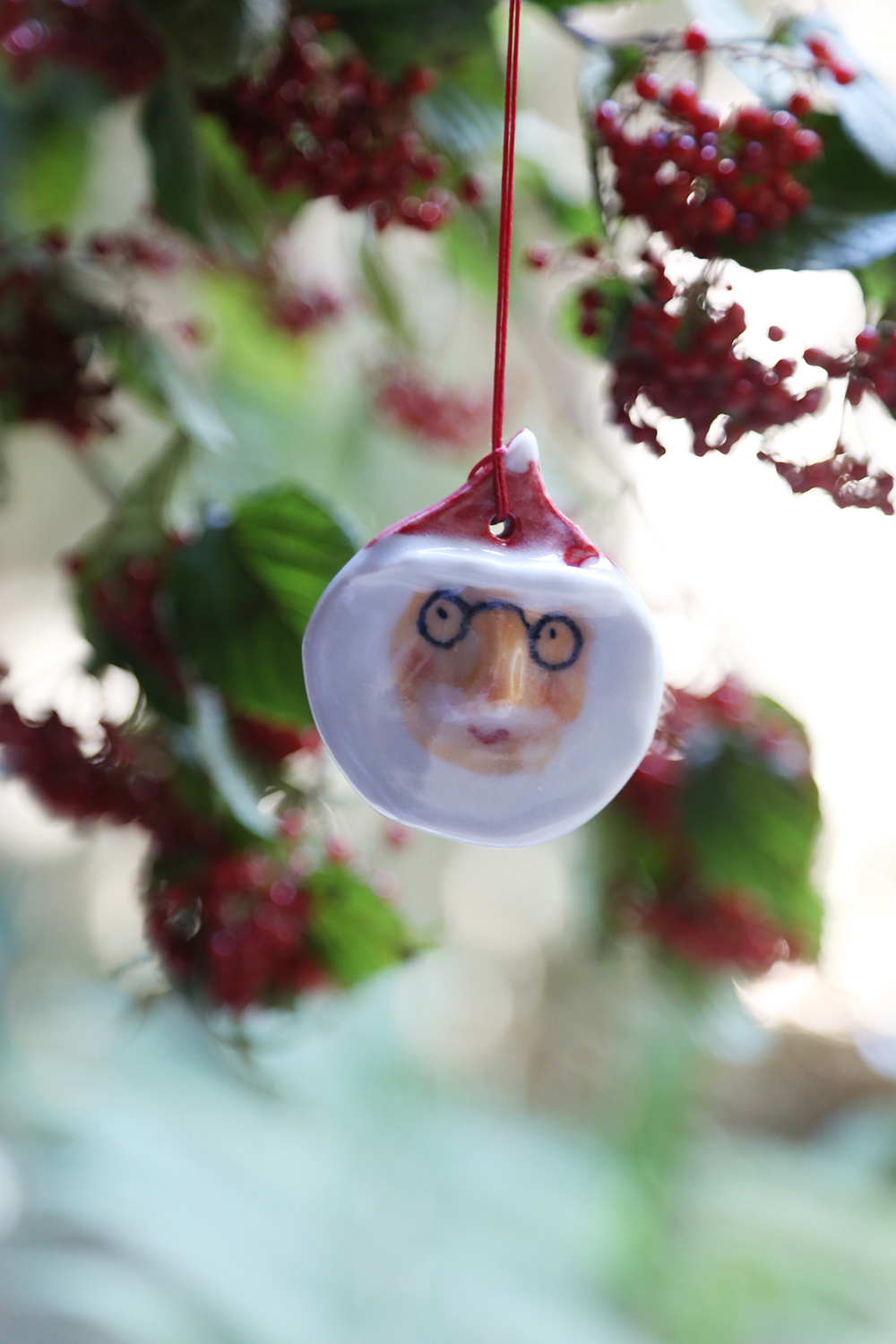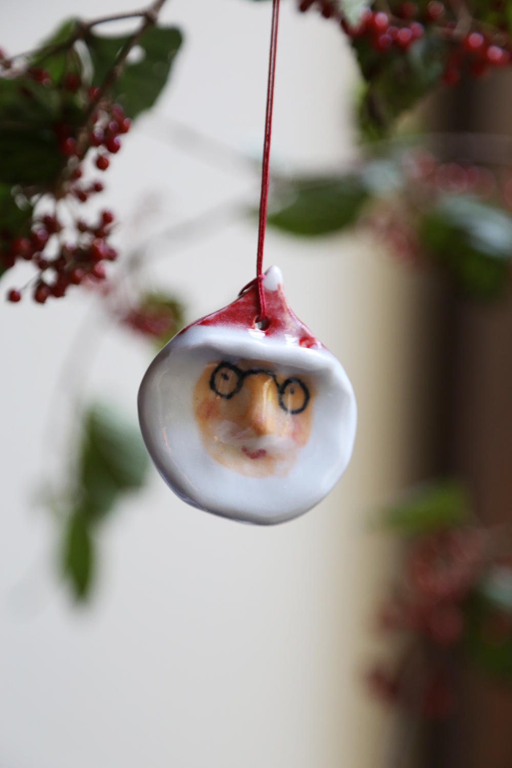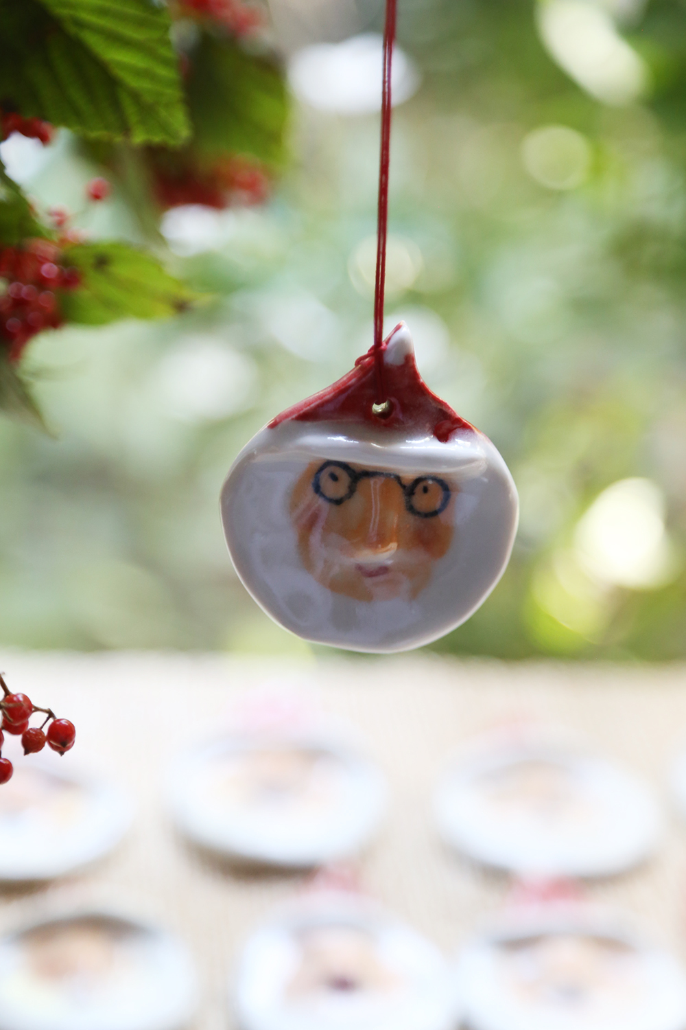 每隻聖誕老公公,都是陶土手捏上釉,因此每一個老公公個性表情都不同