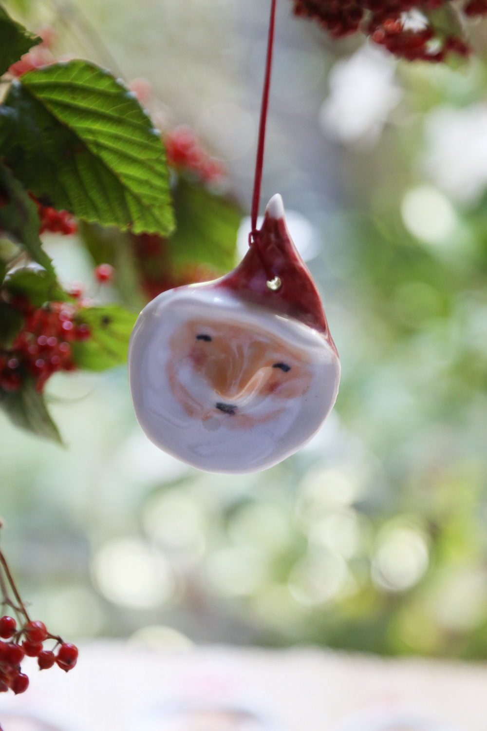 每隻聖誕老公公,都是陶土手捏上釉,因此每一個老公公個性表情都不同