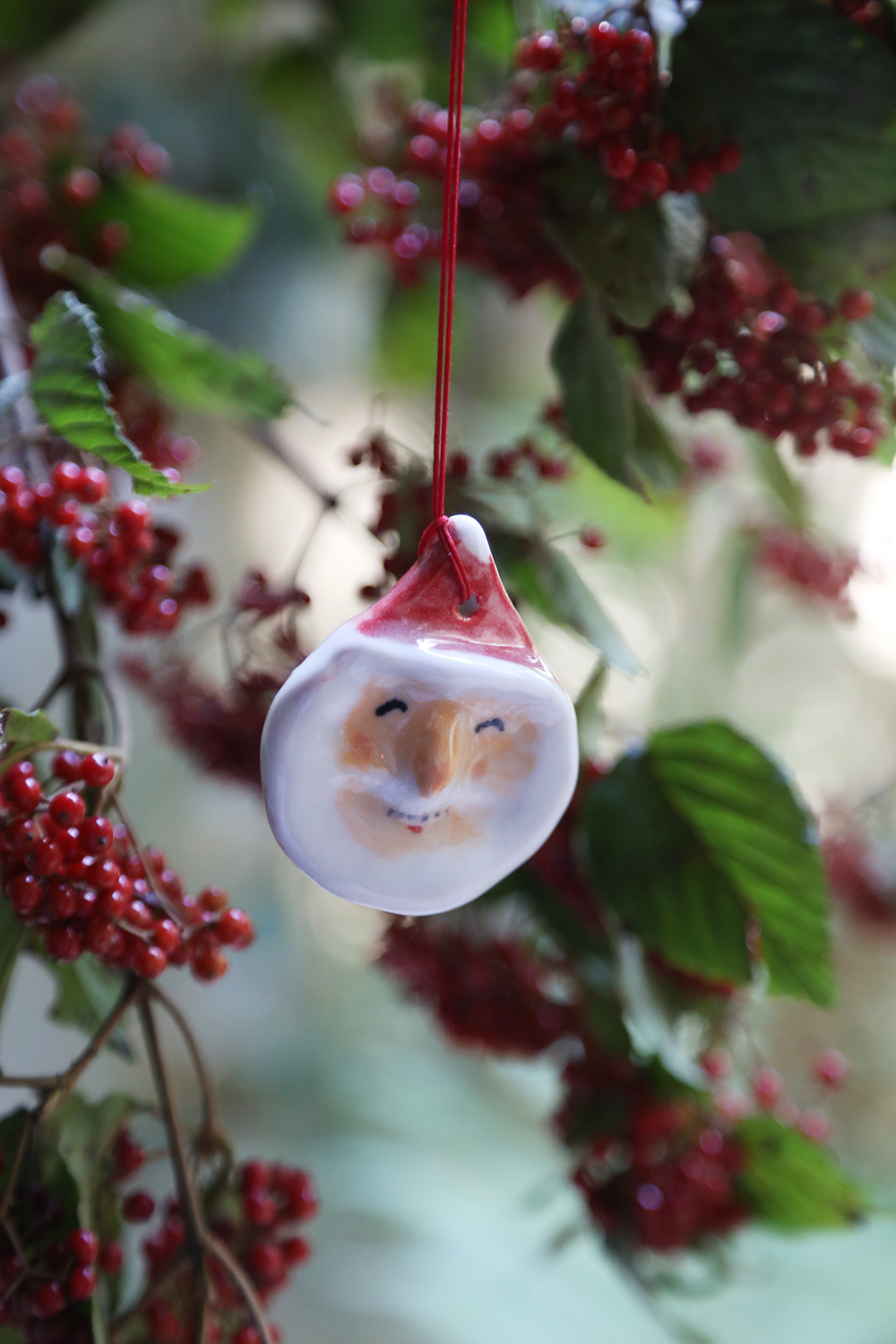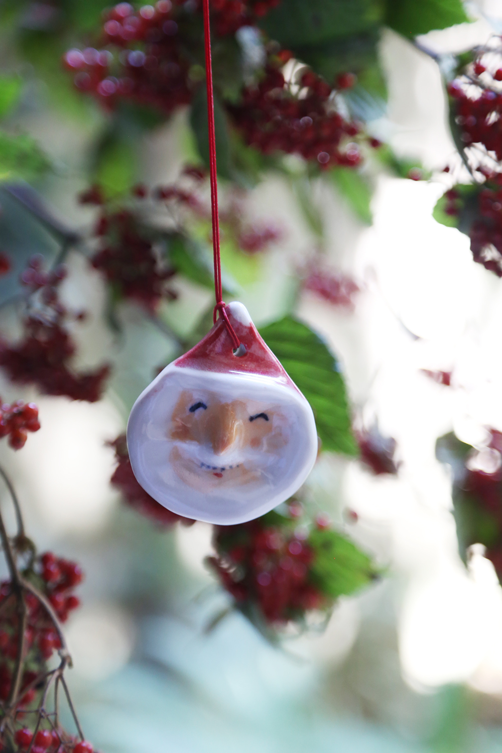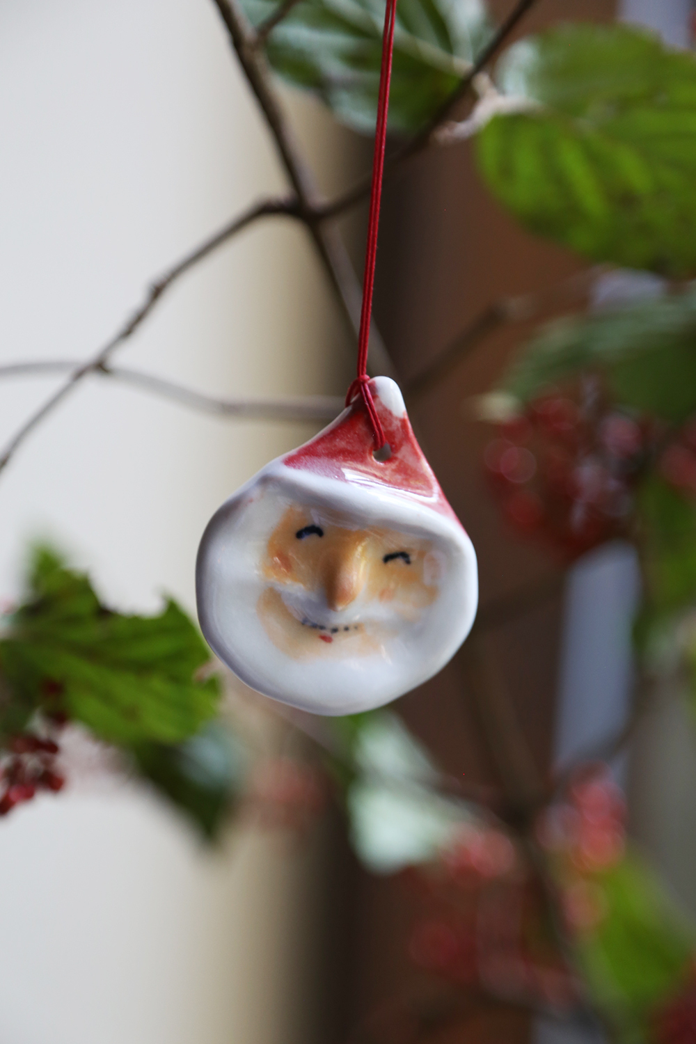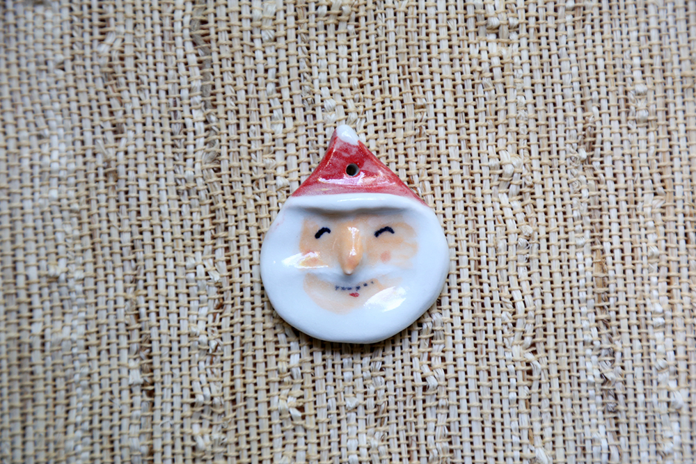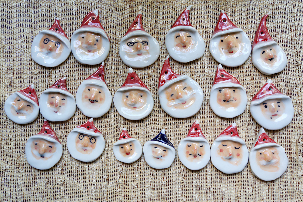 每隻聖誕老公公,都是陶土手捏上釉,因此每一個老公公個性表情都不同