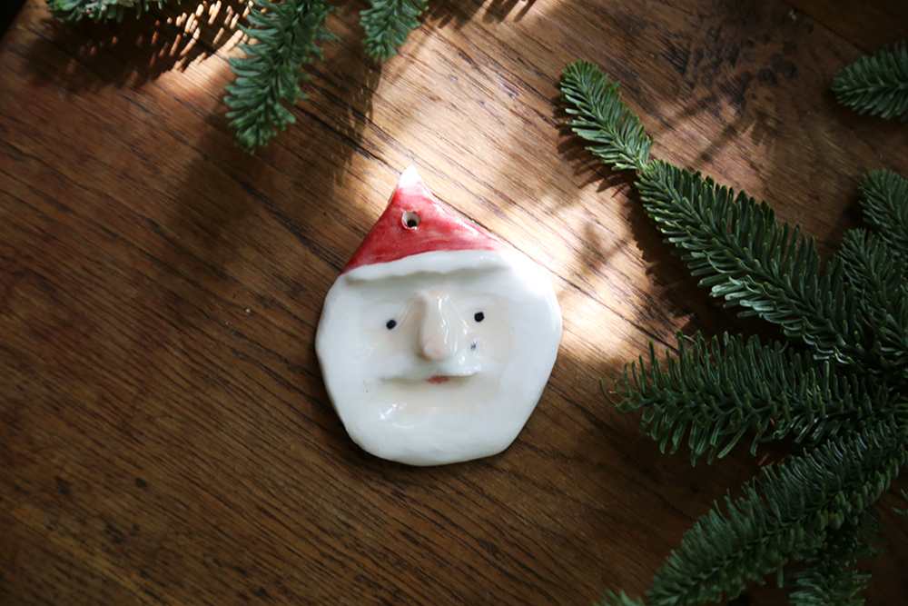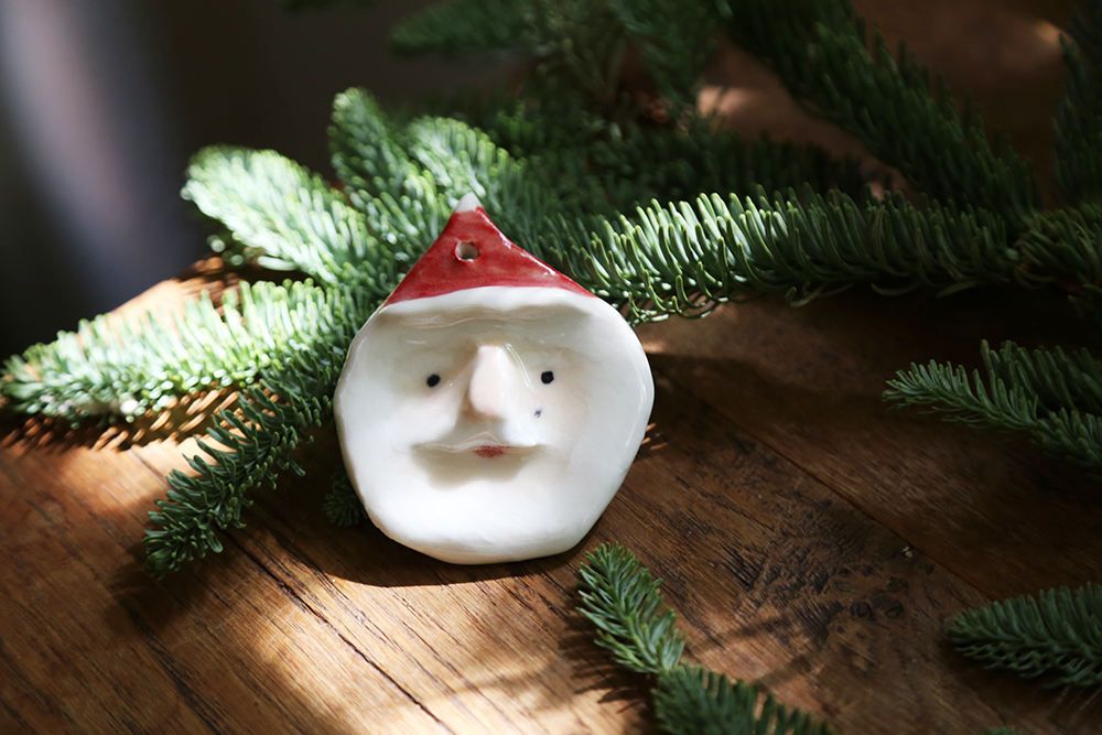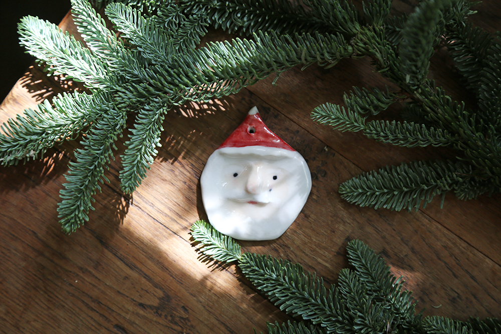 每隻聖誕老公公,都是陶土手捏上釉,因此每一個老公公個性表情都不同