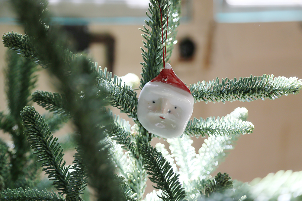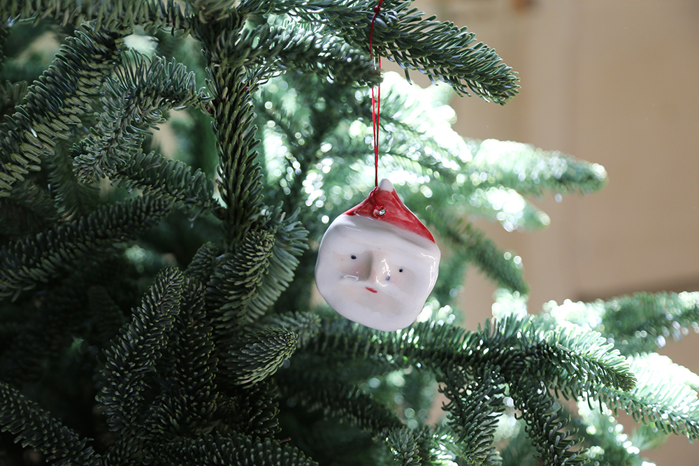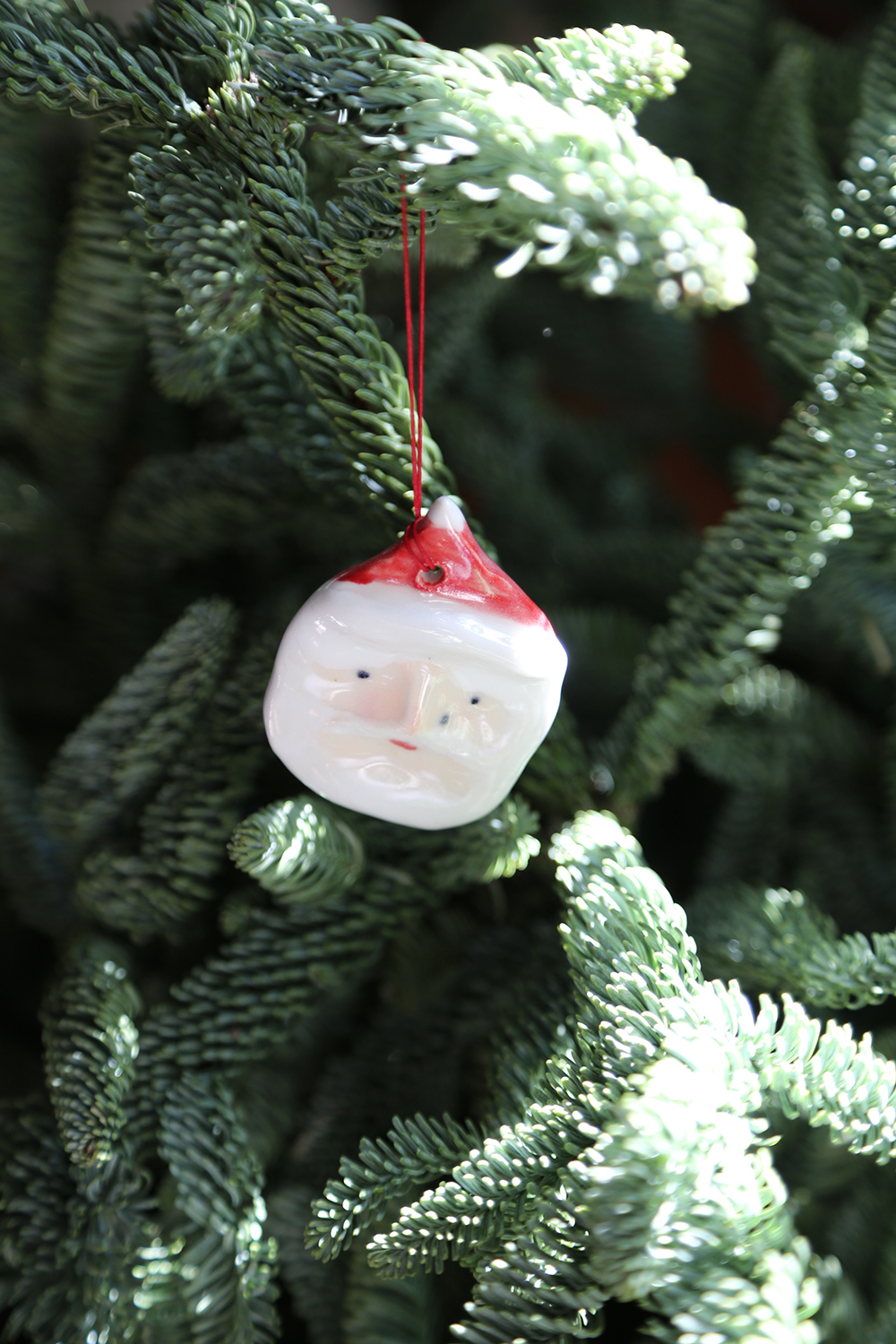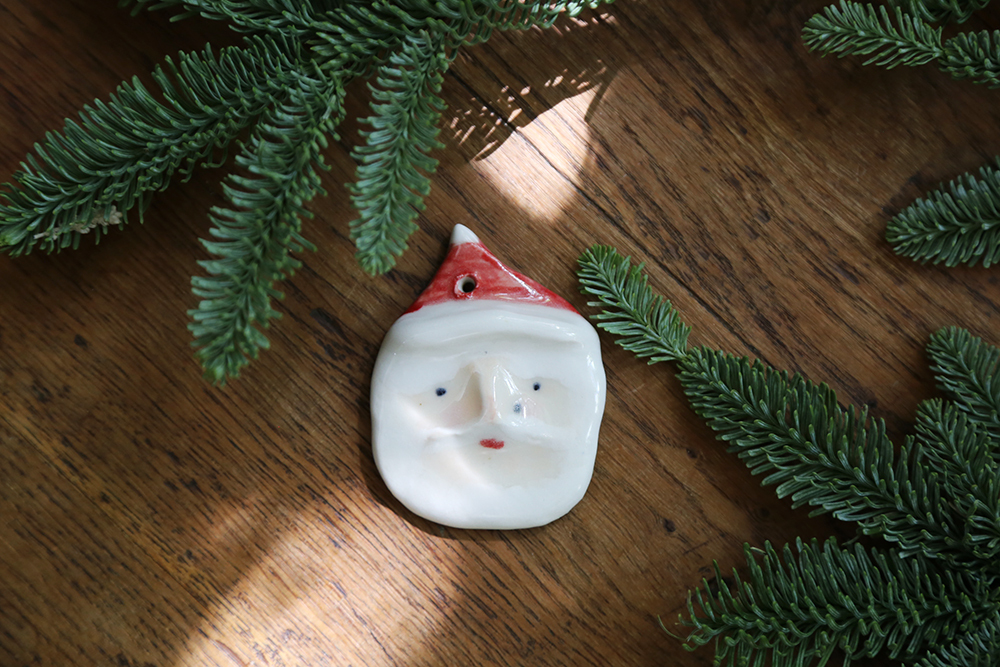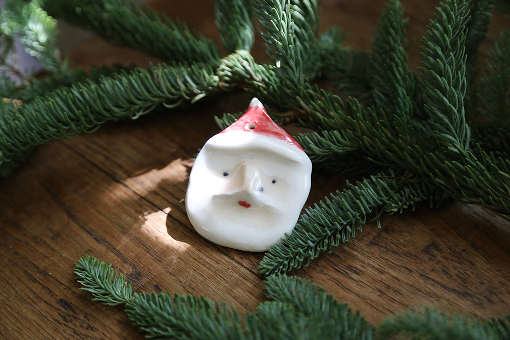 每隻聖誕老公公,都是陶土手捏上釉,因此每一個老公公個性表情都不同