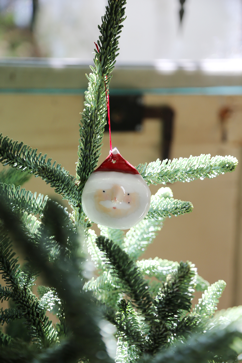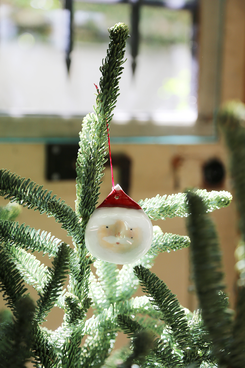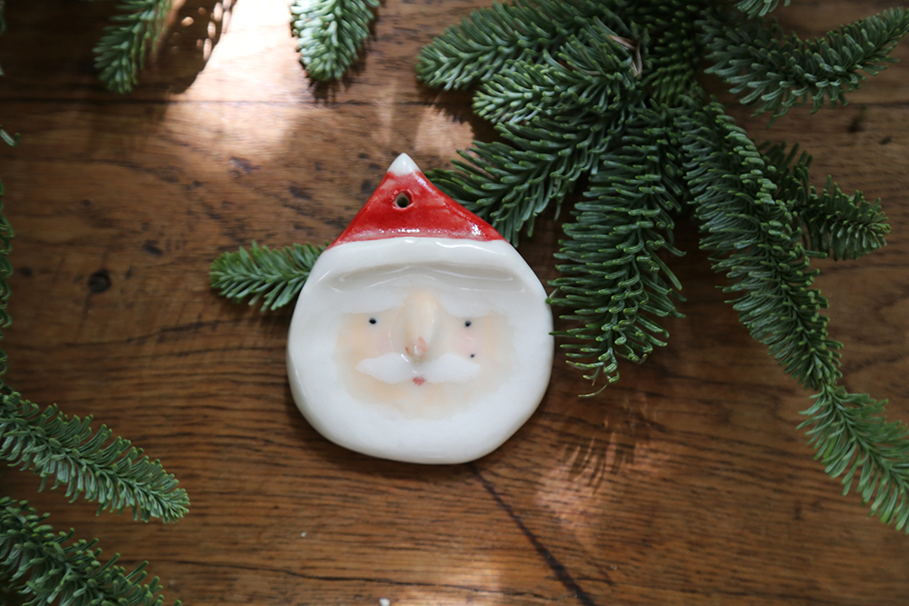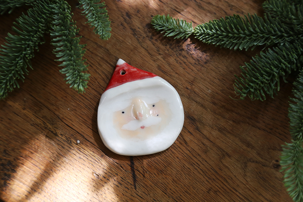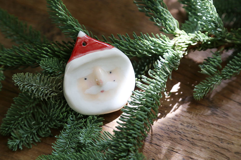 每隻聖誕老公公,都是陶土手捏上釉,因此每一個老公公個性表情都不同