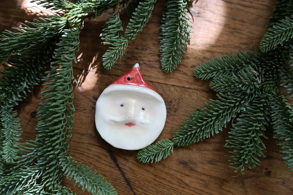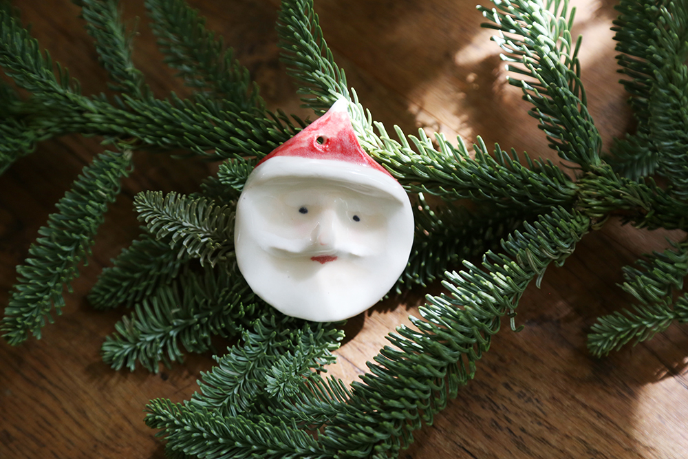 每隻聖誕老公公,都是陶土手捏上釉,因此每一個老公公個性表情都不同