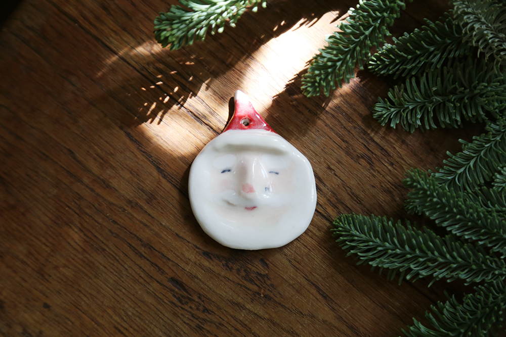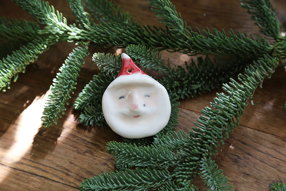 每隻聖誕老公公,都是陶土手捏上釉,因此每一個老公公個性表情都不同