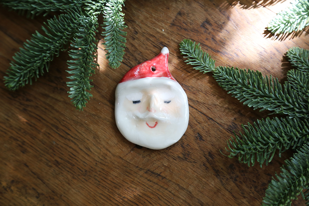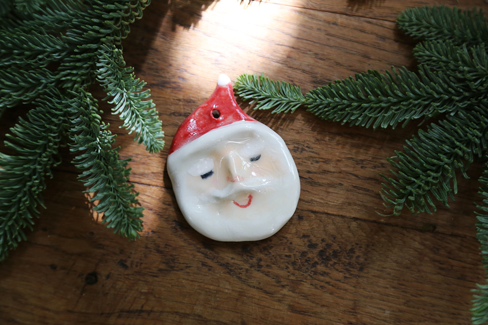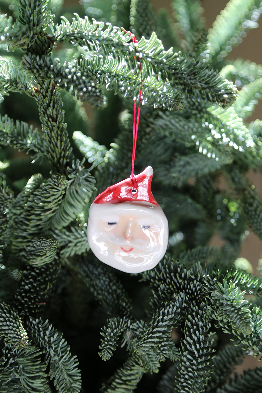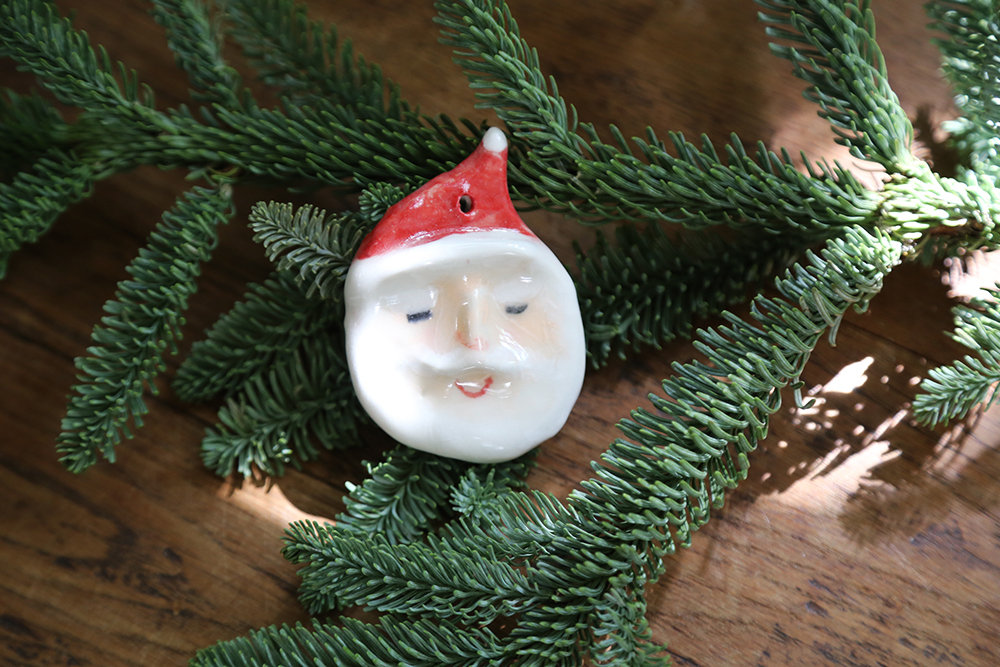 每隻聖誕老公公,都是陶土手捏上釉,因此每一個老公公個性表情都不同