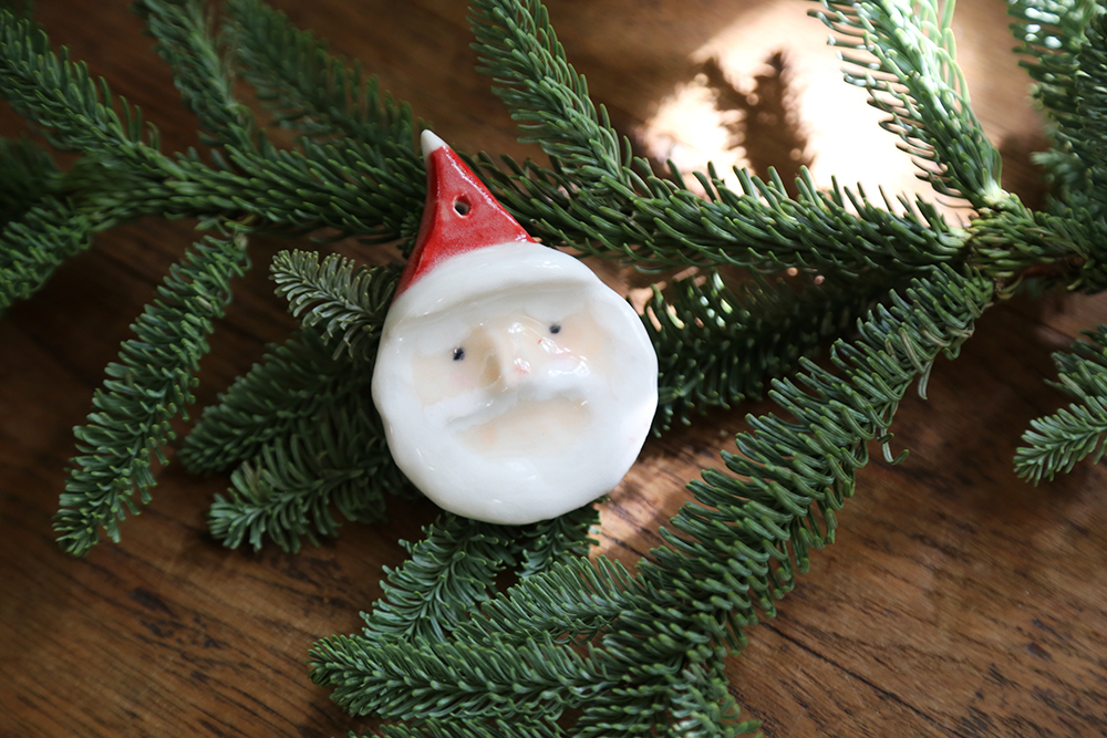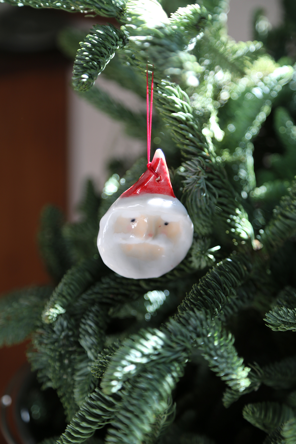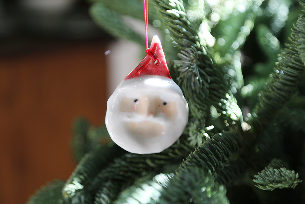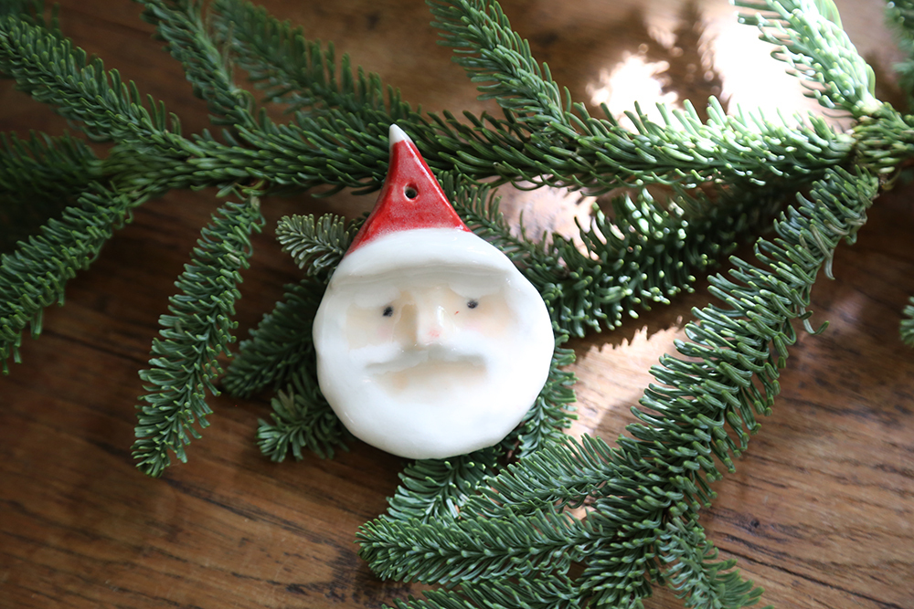 每隻聖誕老公公,都是陶土手捏上釉,因此每一個老公公個性表情都不同