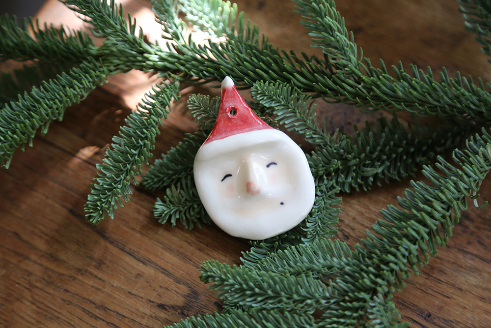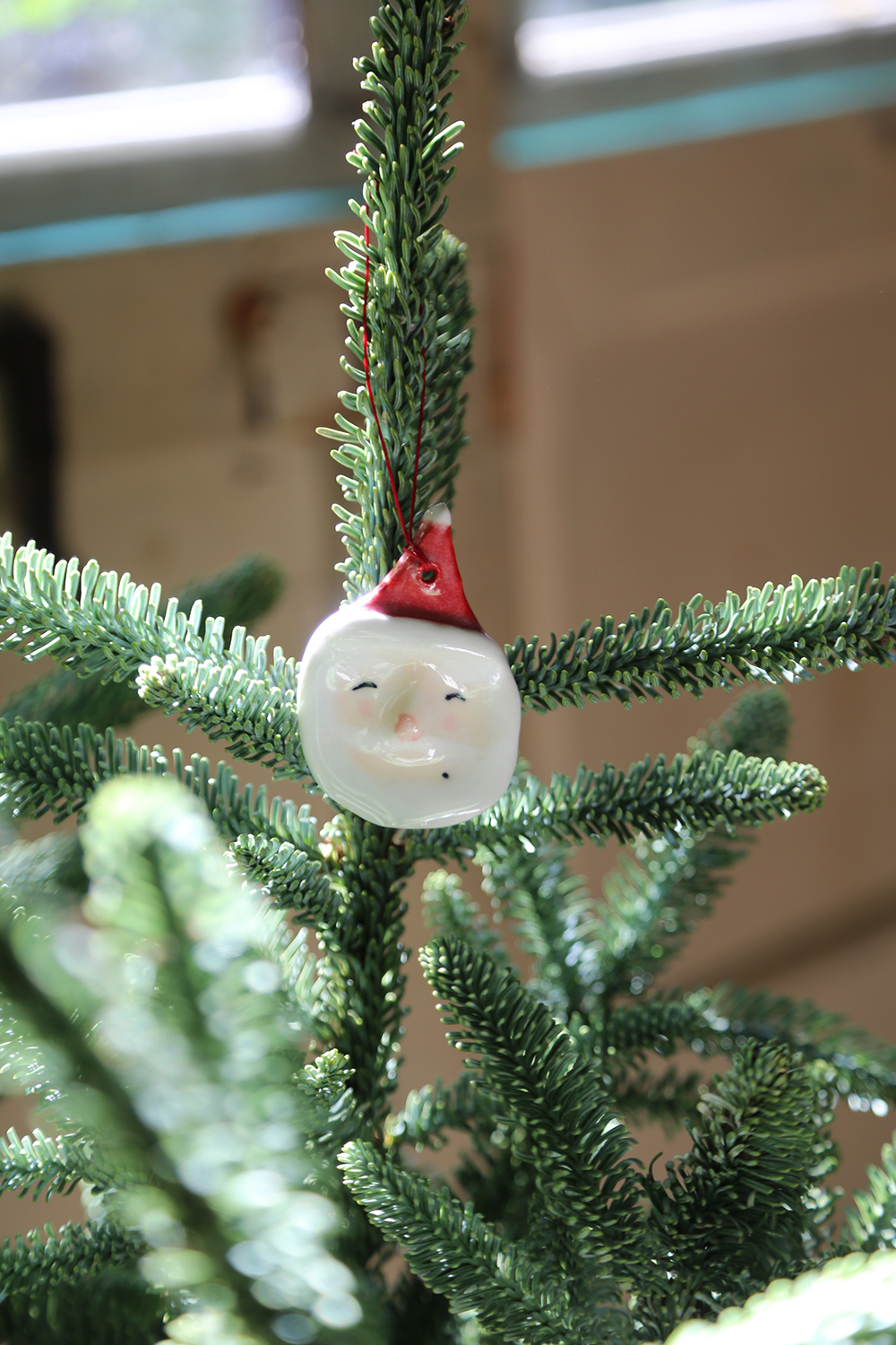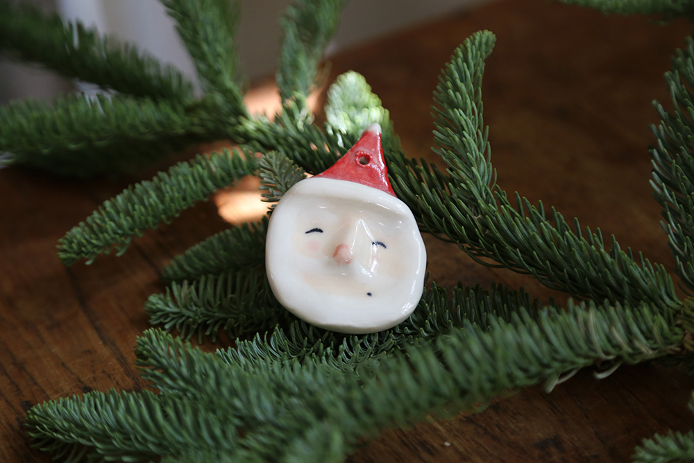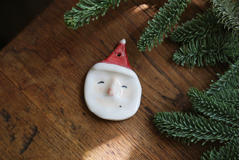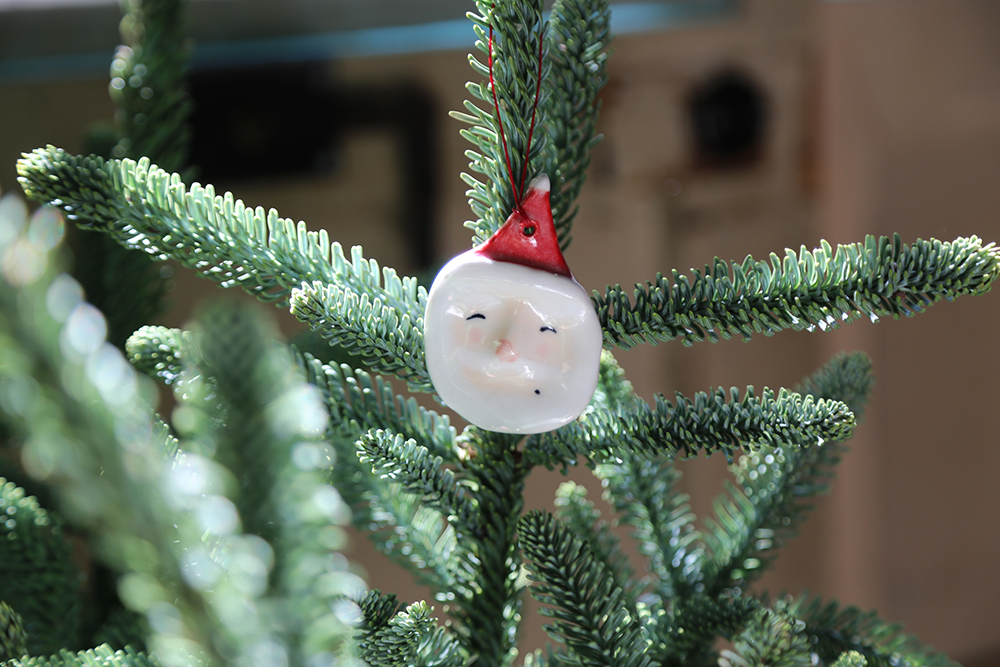 每隻聖誕老公公,都是陶土手捏上釉,因此每一個老公公個性表情都不同