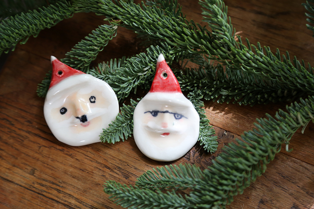 每個聖誕節老公公,都是陶土手捏上釉,所以每個老公公個性表情都不同