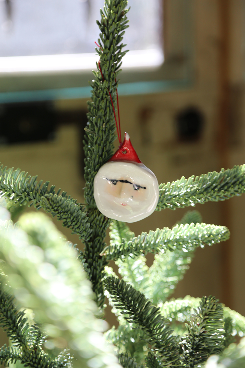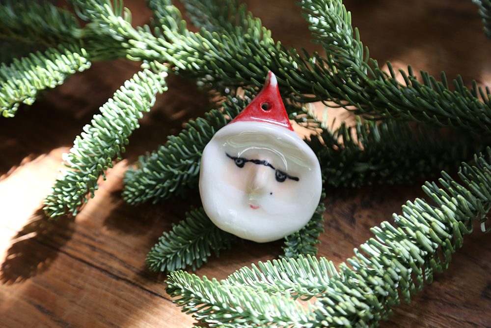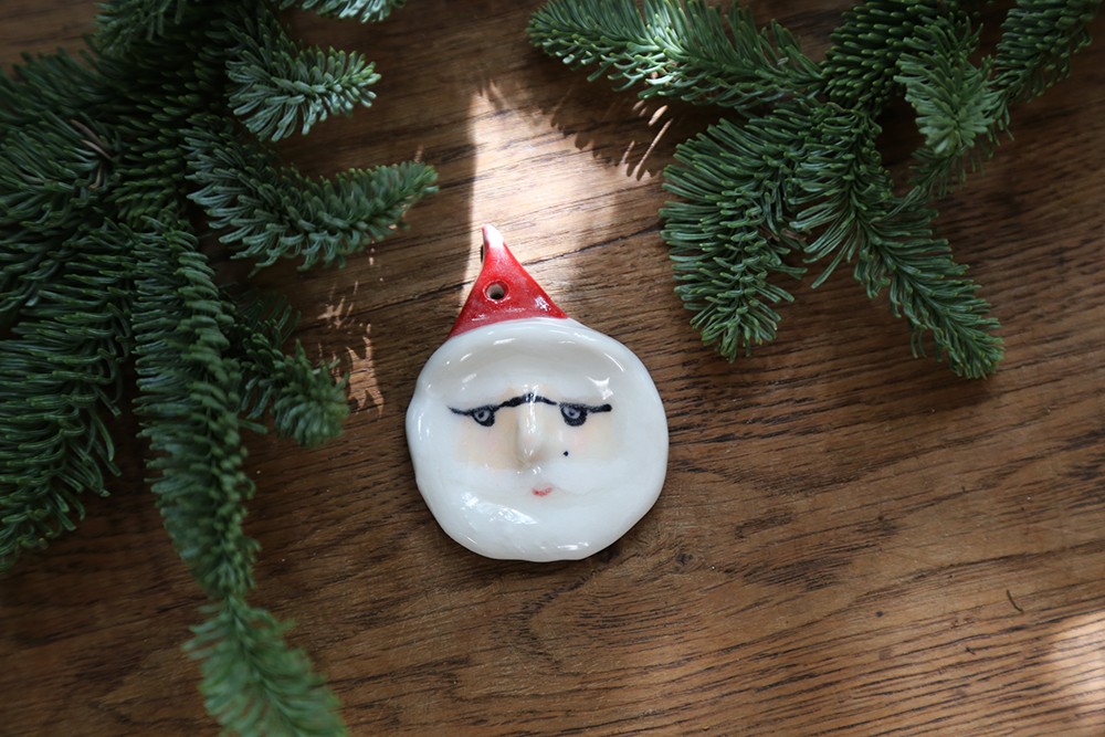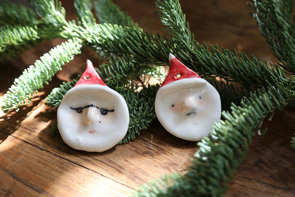 每隻聖誕老公公,都是陶土手捏上釉,因此每一個老公公個性表情都不同