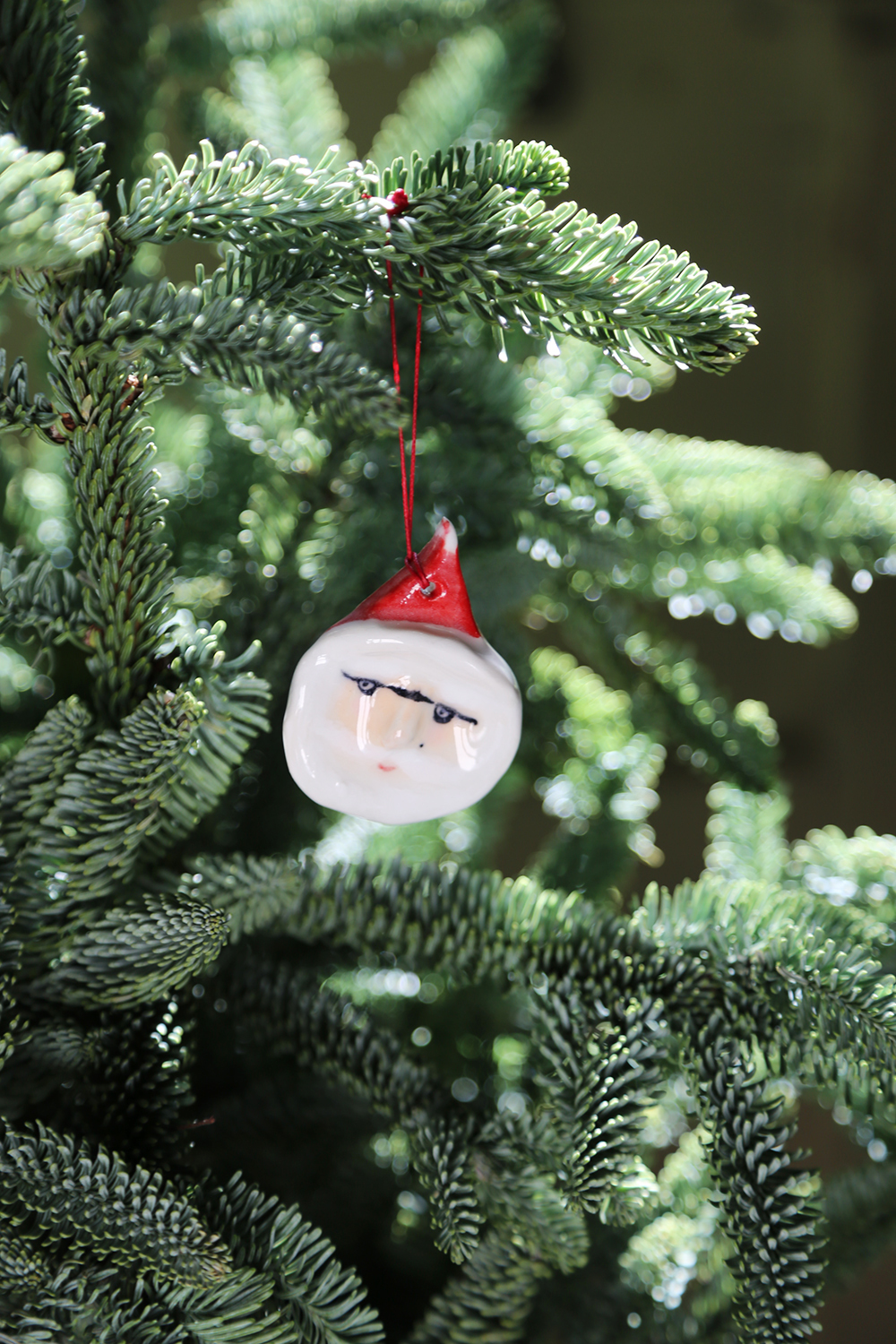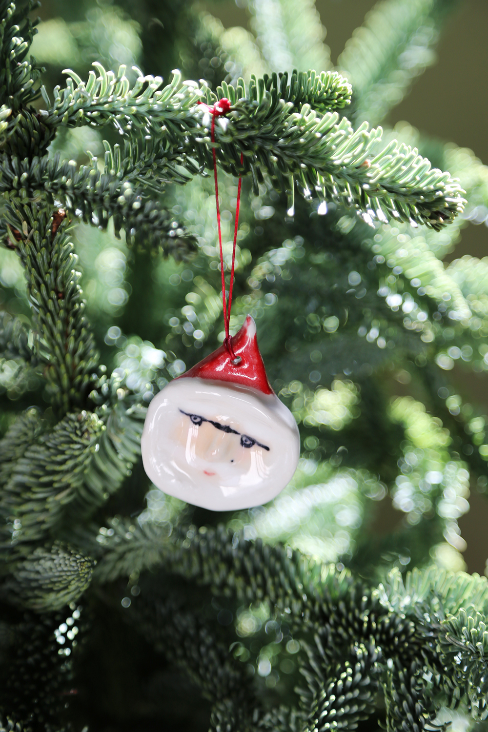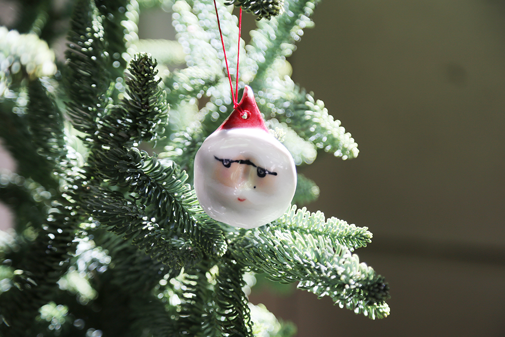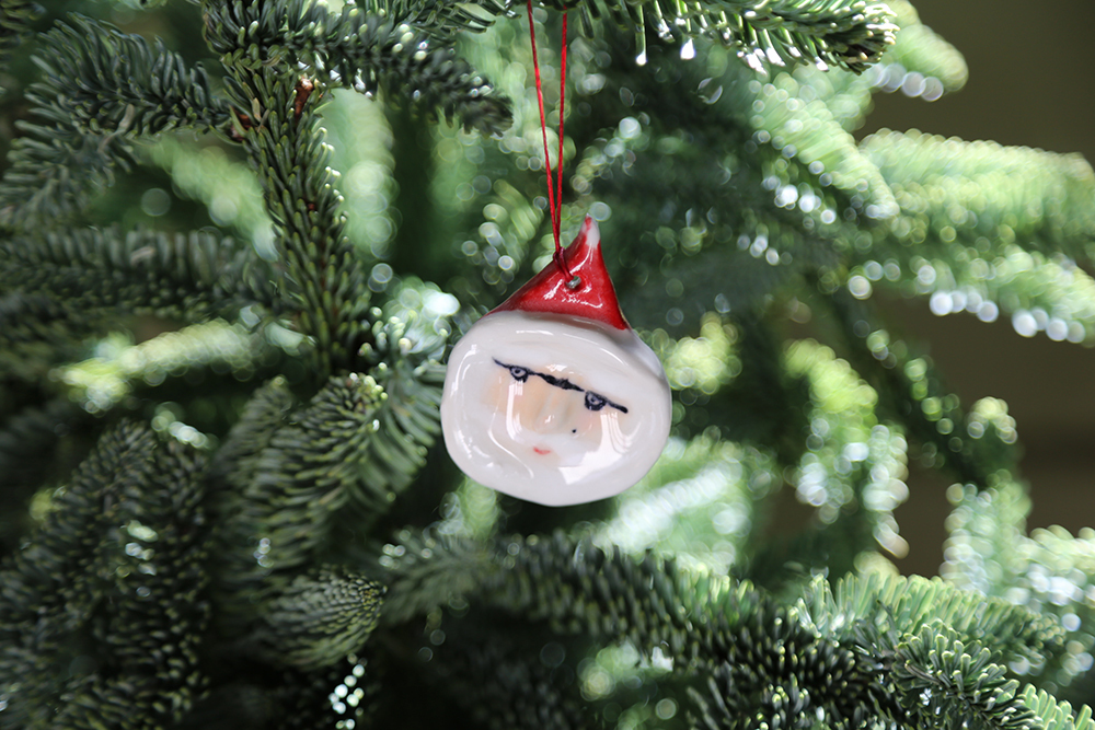 每隻聖誕老公公,都是陶土手捏上釉,因此每一個老公公個性表情都不同