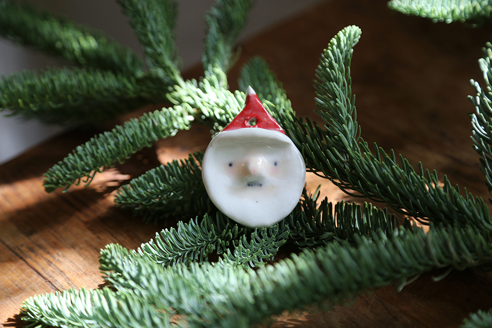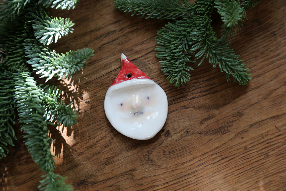 每隻聖誕老公公,都是陶土手捏上釉,因此每一個老公公個性表情都不同