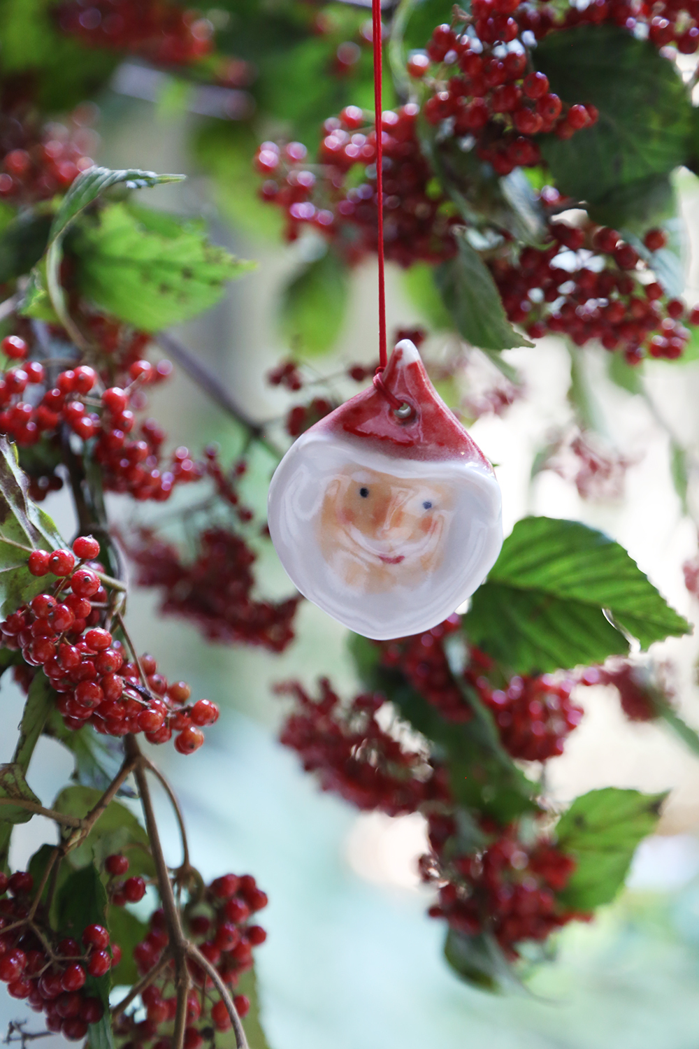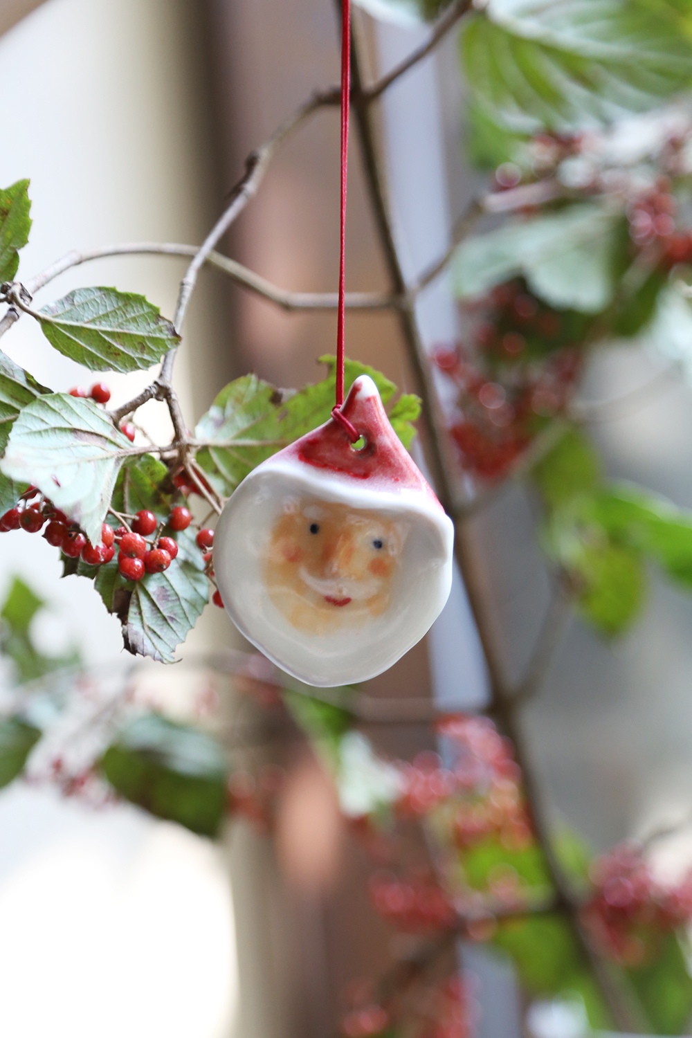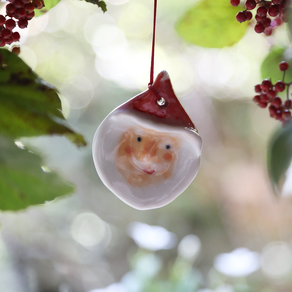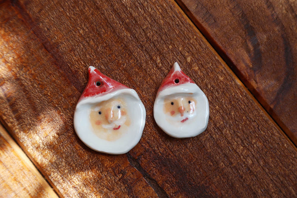 每隻聖誕老公公,都是陶土手捏上釉,因此每一個老公公個性表情都不同