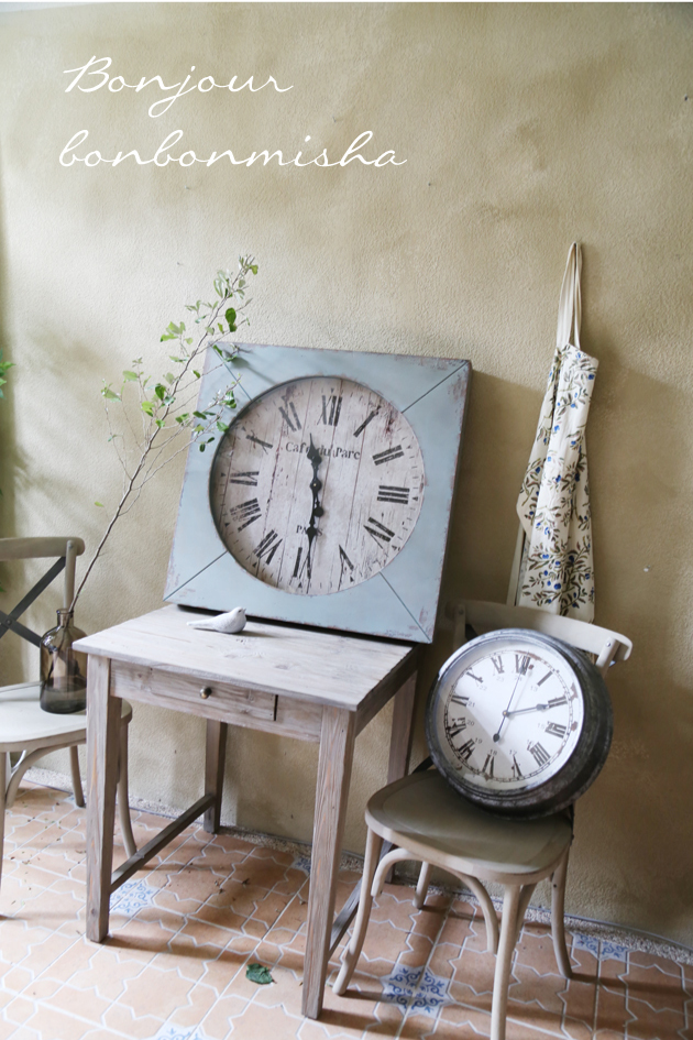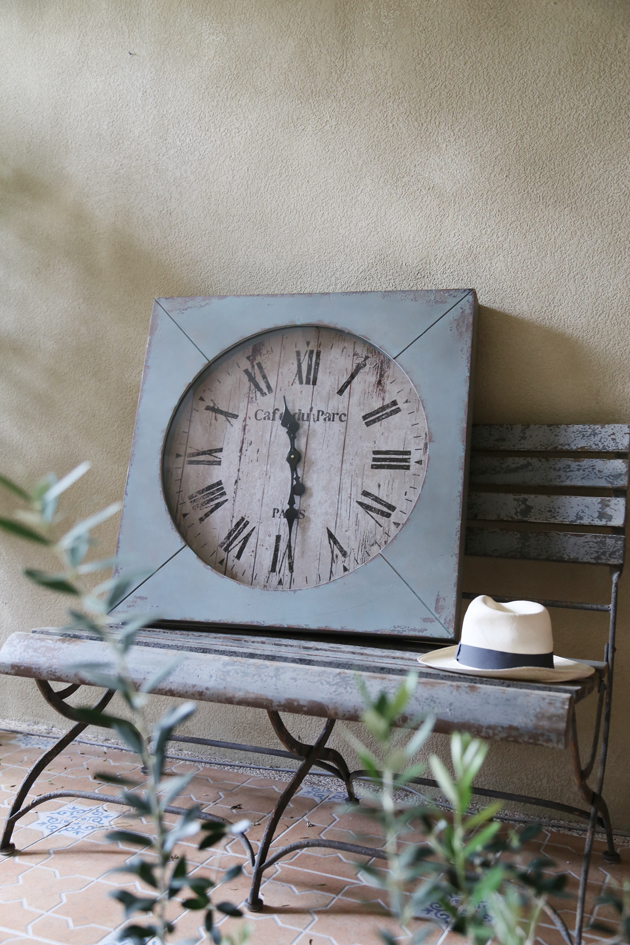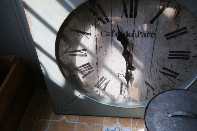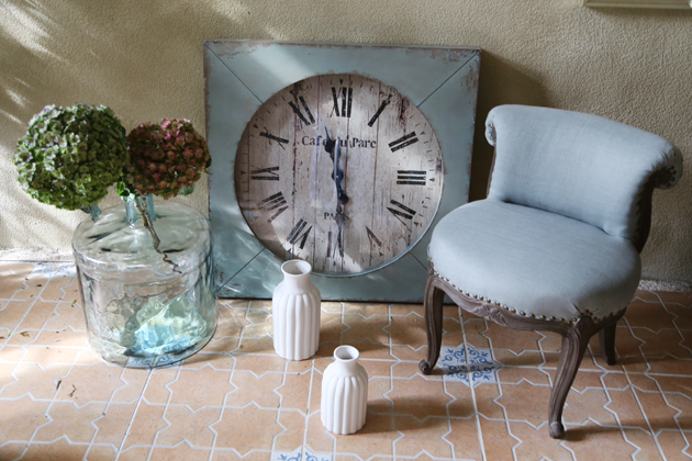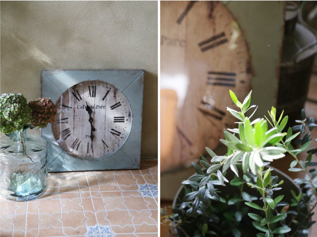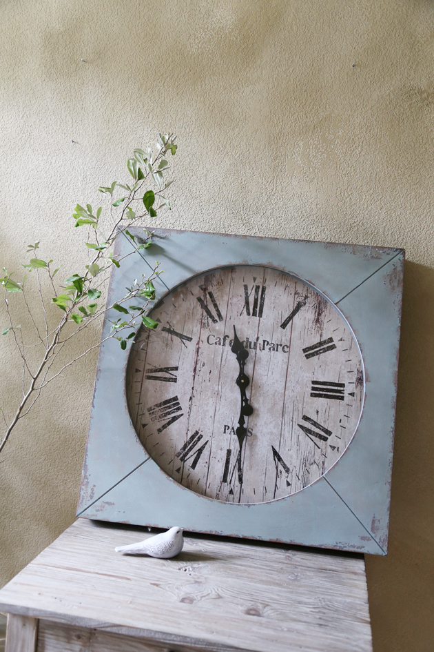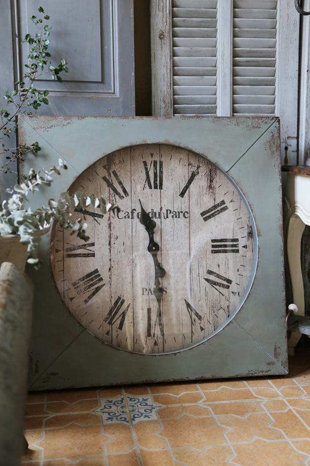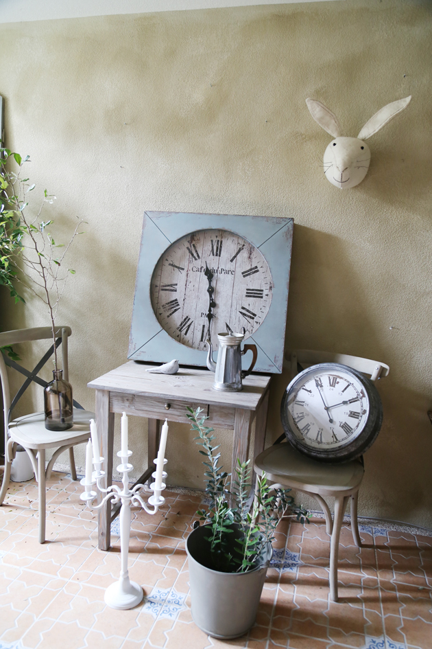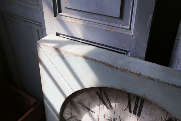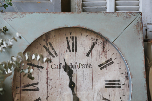 斑駁的刷色、法式的灰藍色、還有羅馬數字