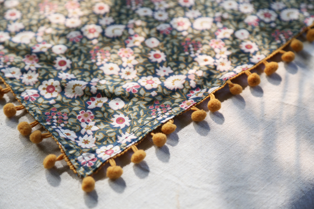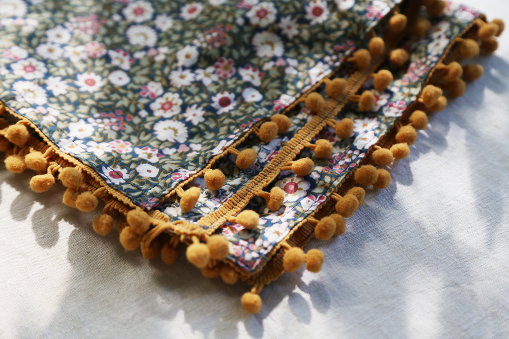 搭配橘色絨球飾邊流蘇