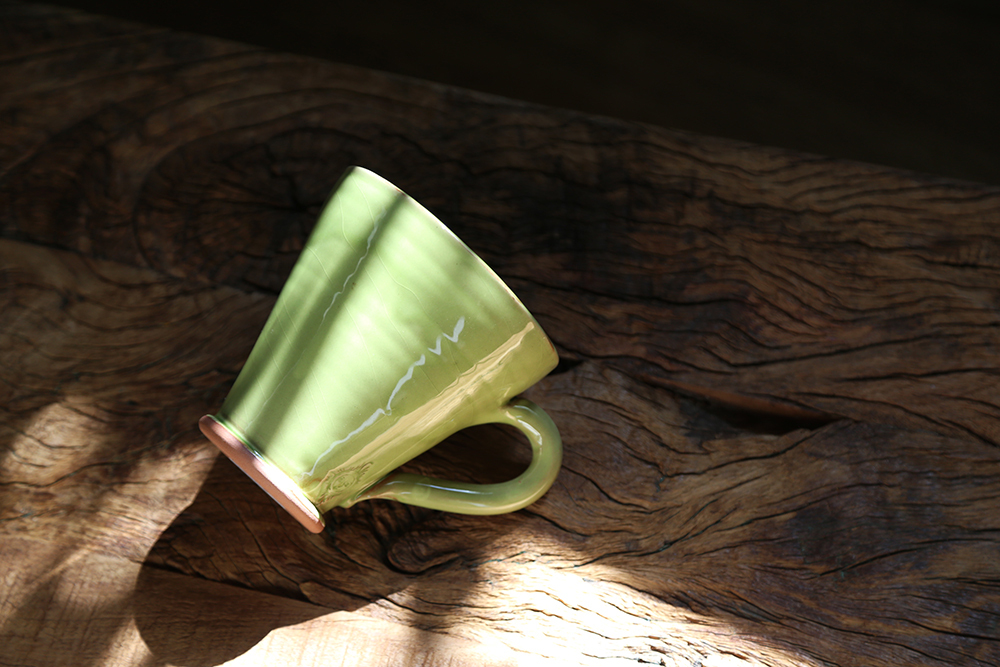 因是手工上釉,釉色不均、釉色氣孔、陶面厚薄不一、形狀不工整,以及因為燒製而產生的自然冰裂釉