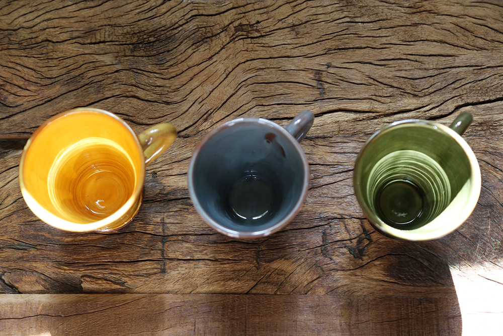 因是手工上釉,釉色不均、釉色氣孔、陶面厚薄不一、形狀不工整,以及因為燒製而產生的自然冰裂釉
