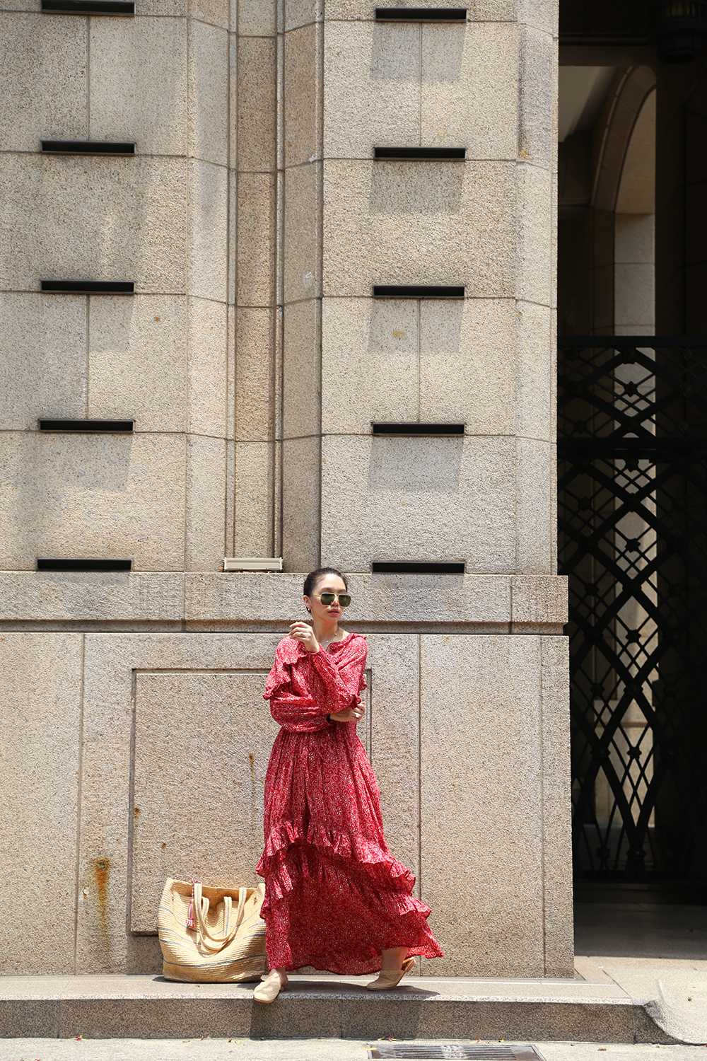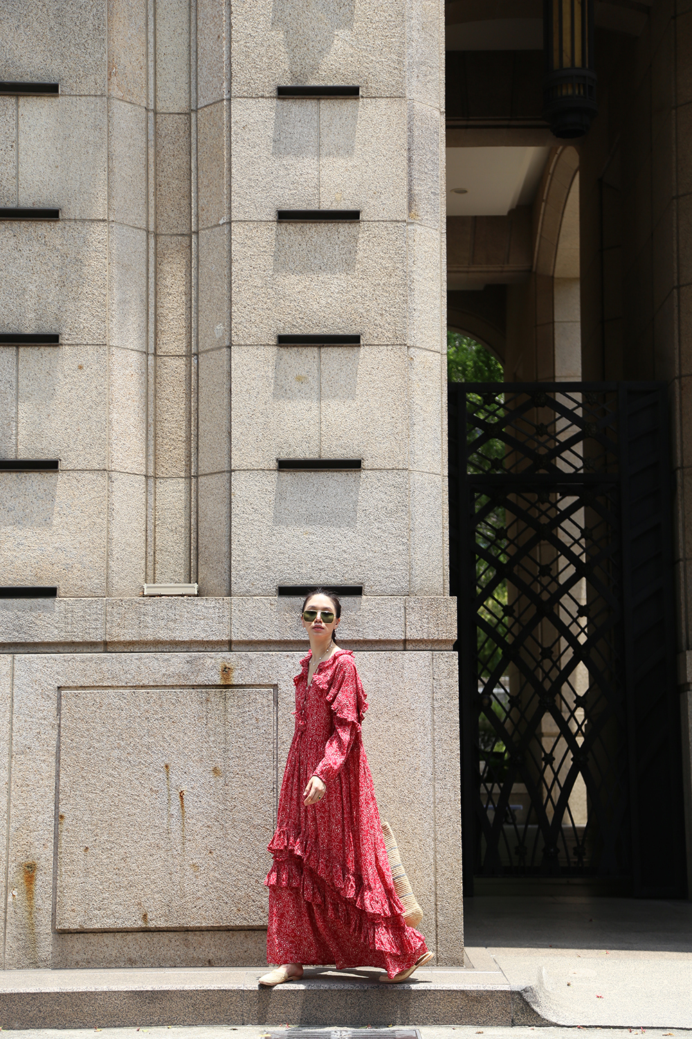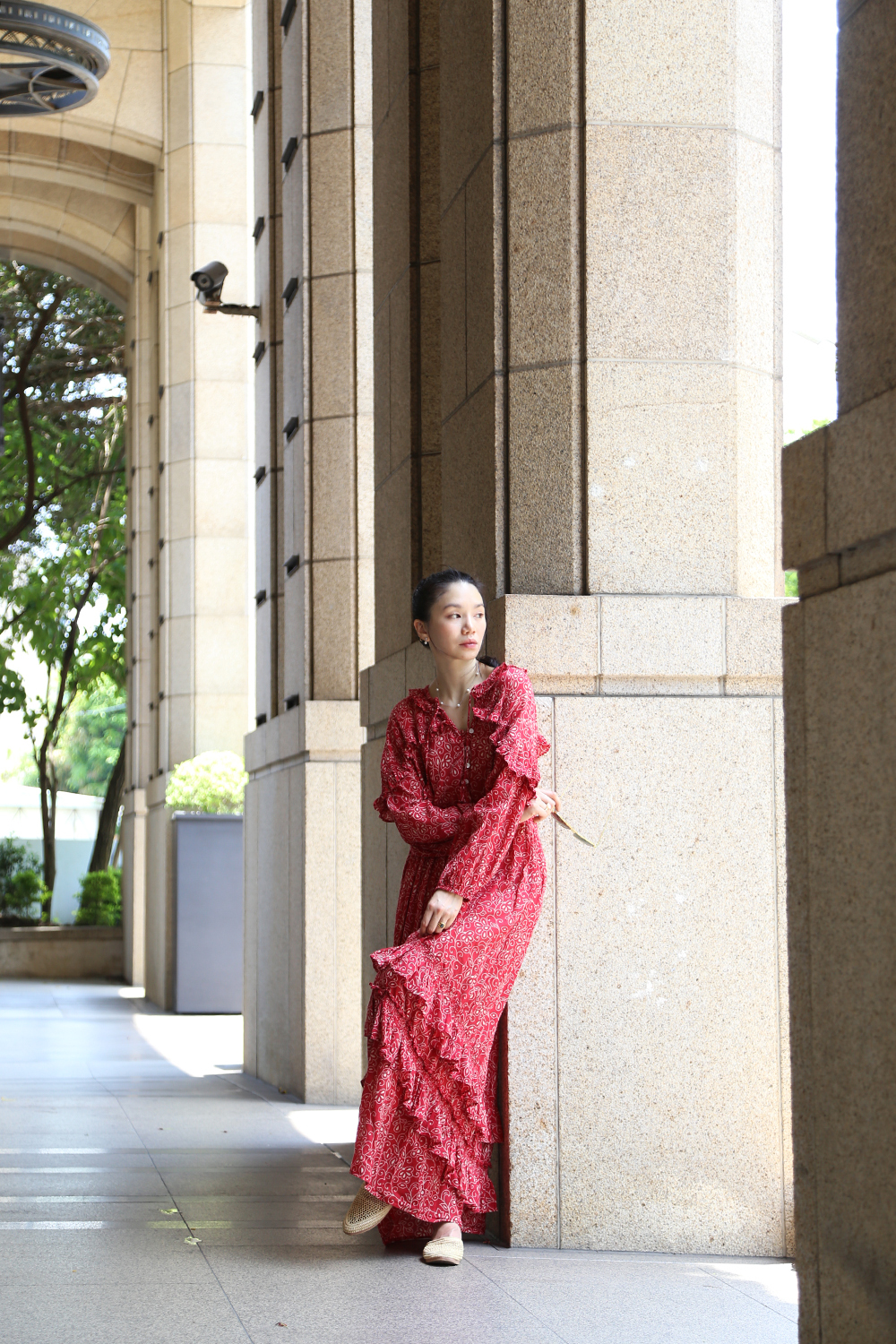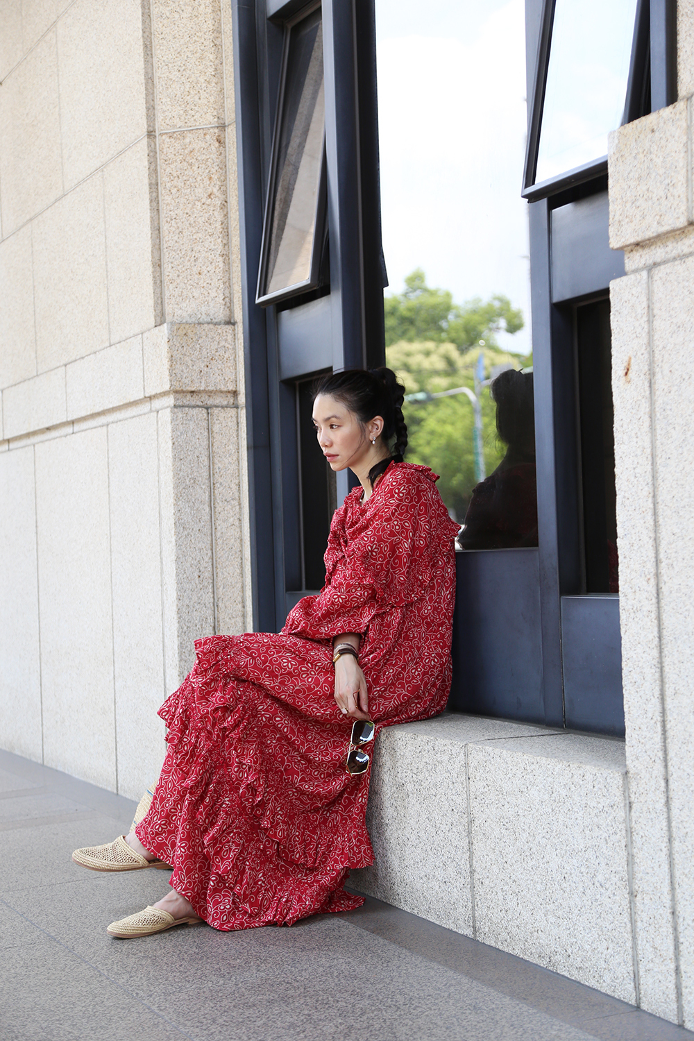 而荷葉邊袖口和分層下擺則增添了足夠的戲劇效果