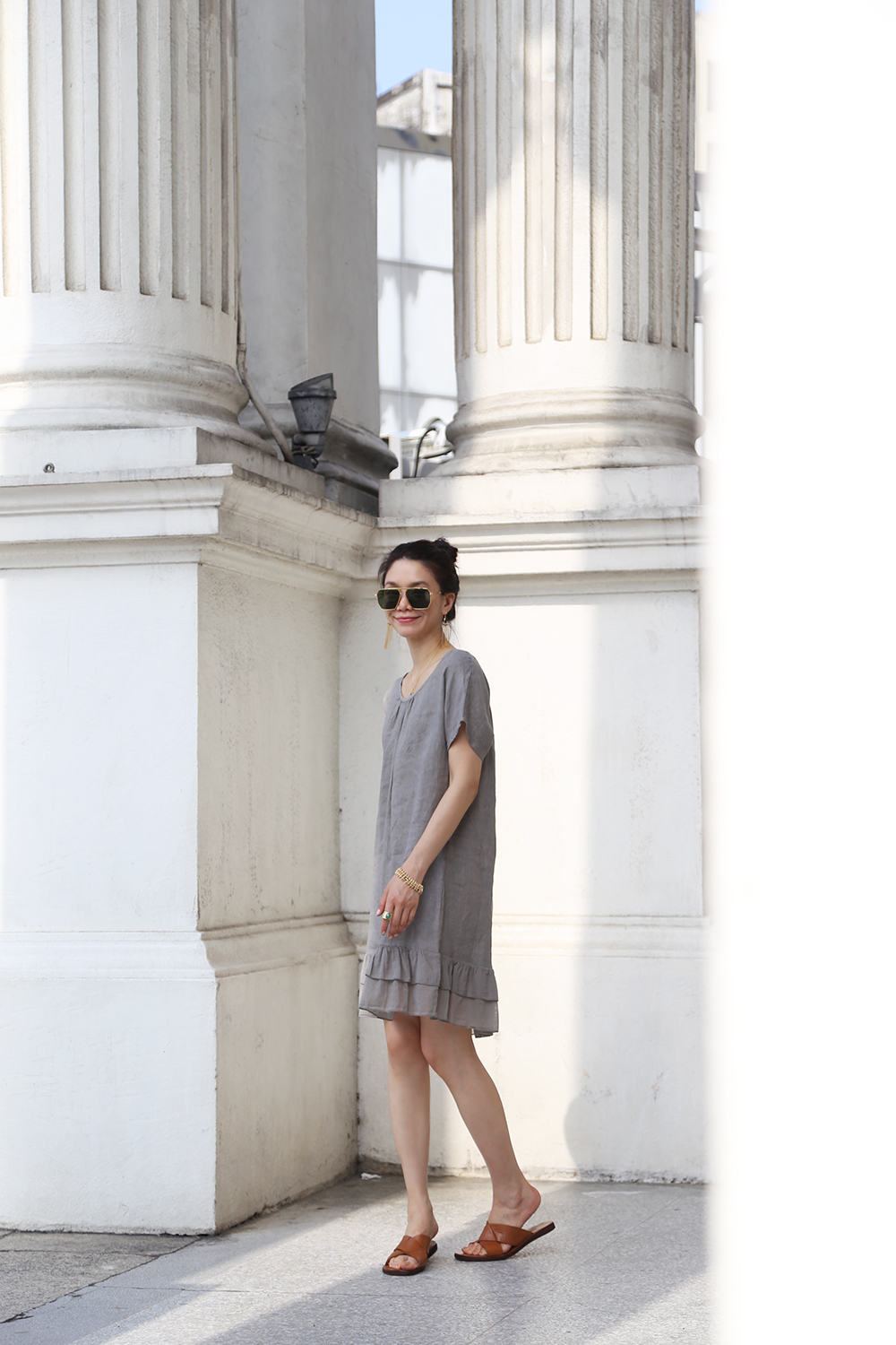 材質透氣舒適,是衣櫃裡不可缺的一件單品,陽光下冷氣房都舒適自在