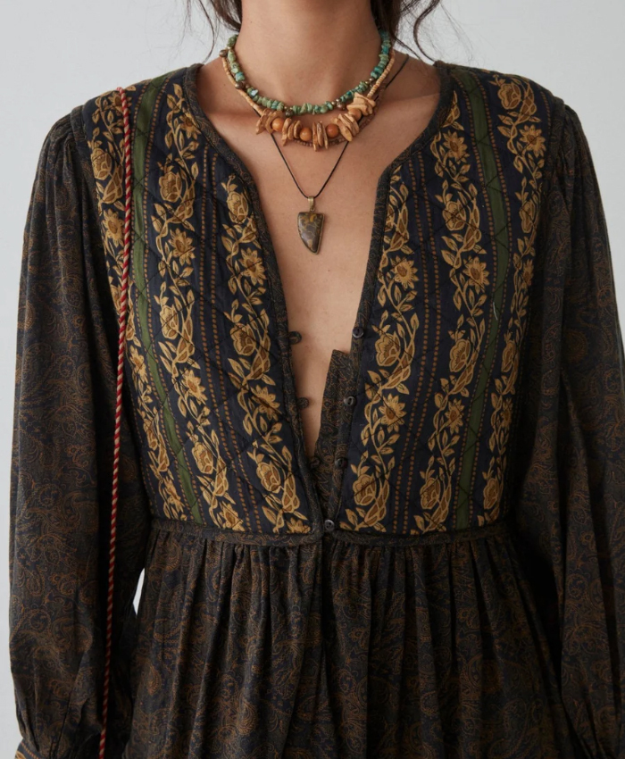 精緻的花卉刺繡沿著領口和袖口翩翩起舞