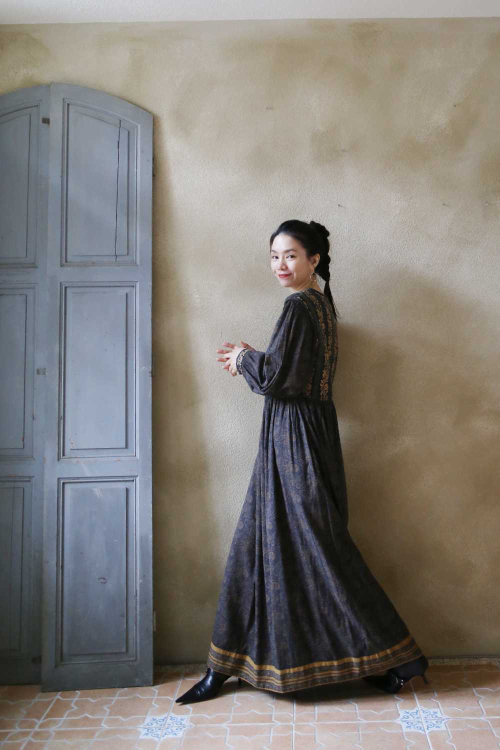 然後垂落成飄逸的及踝裙擺,如耳語般移動