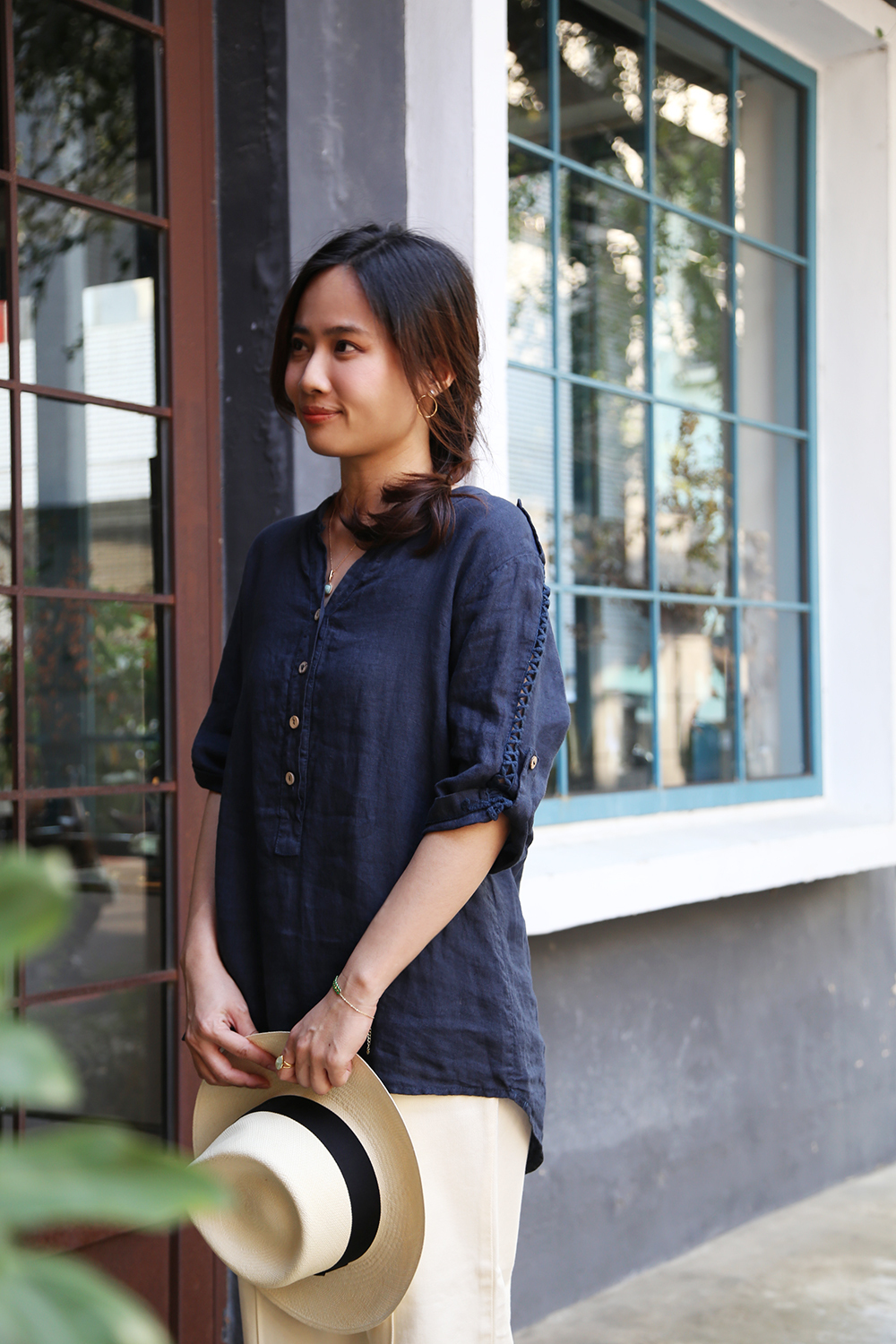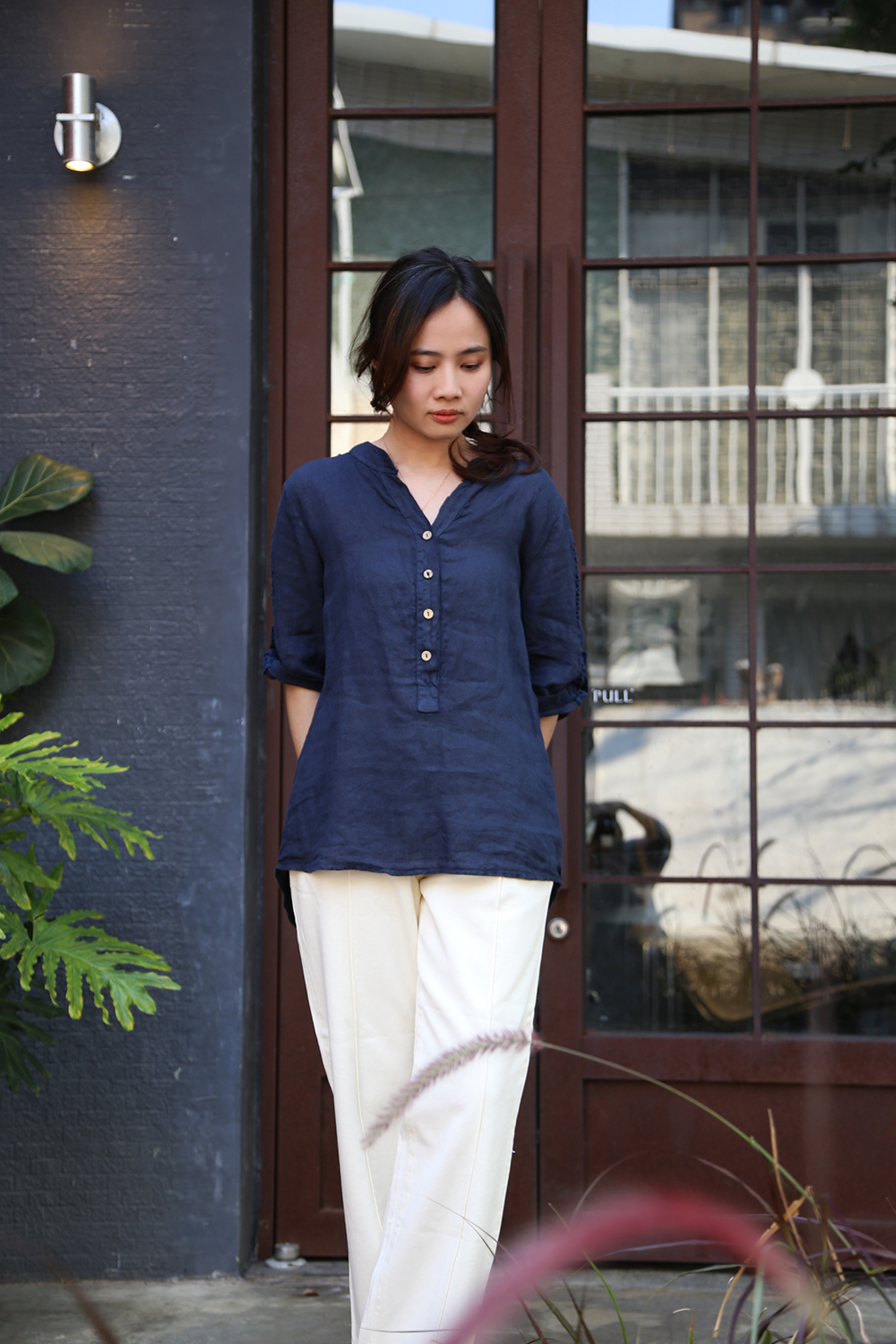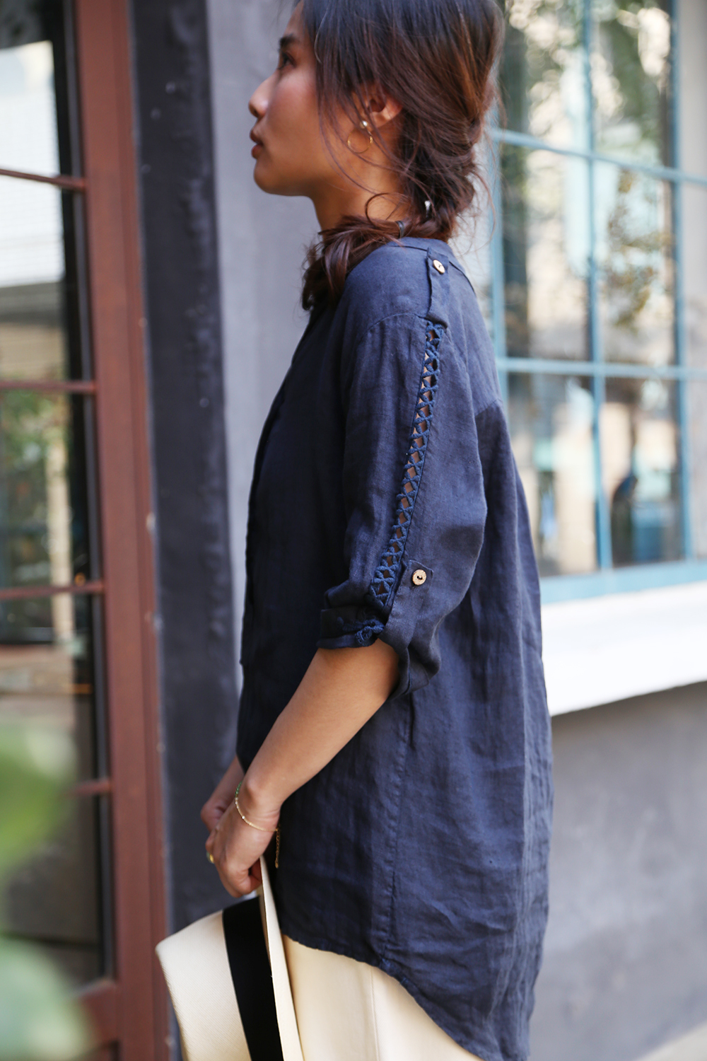 材質透氣舒適,是衣櫃裡不可缺的一件單品,陽光下冷氣房都舒適自在