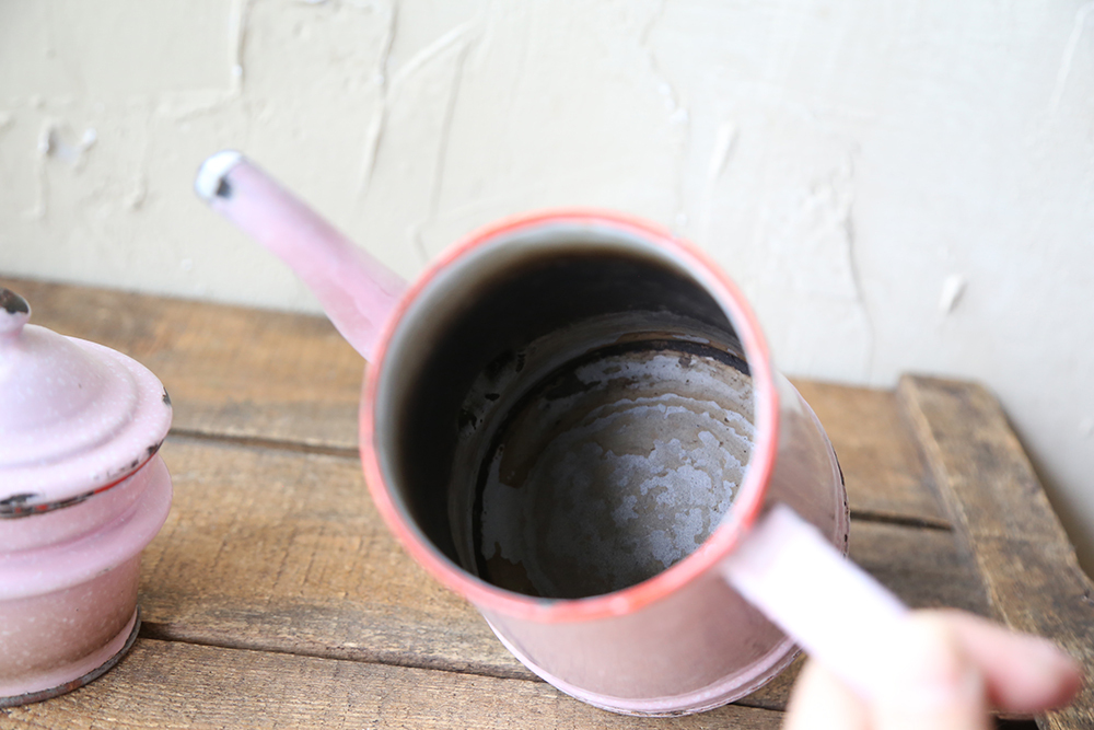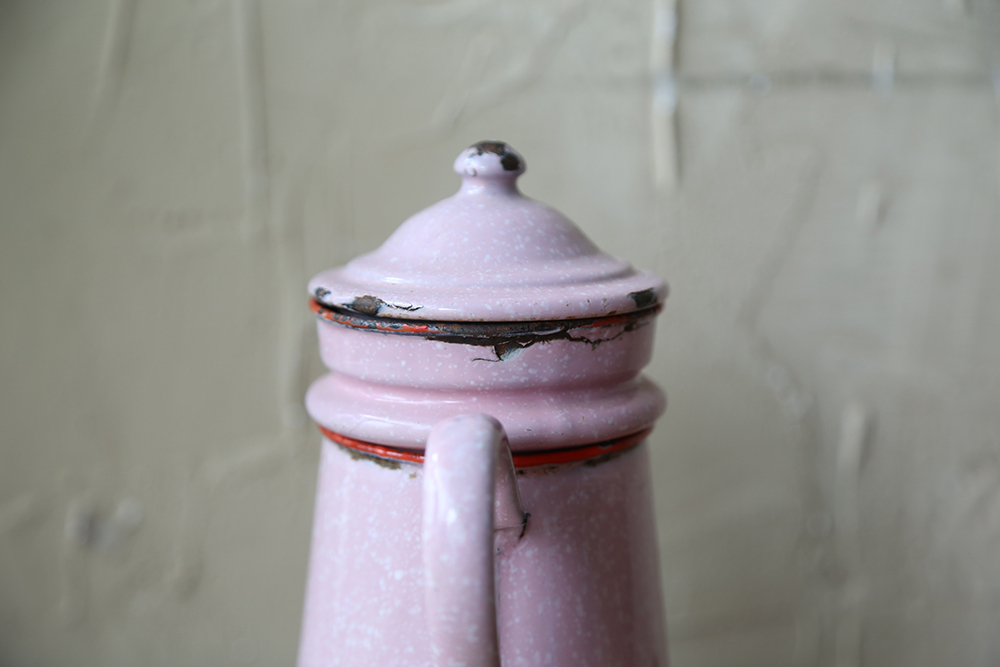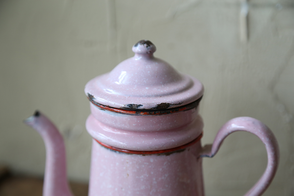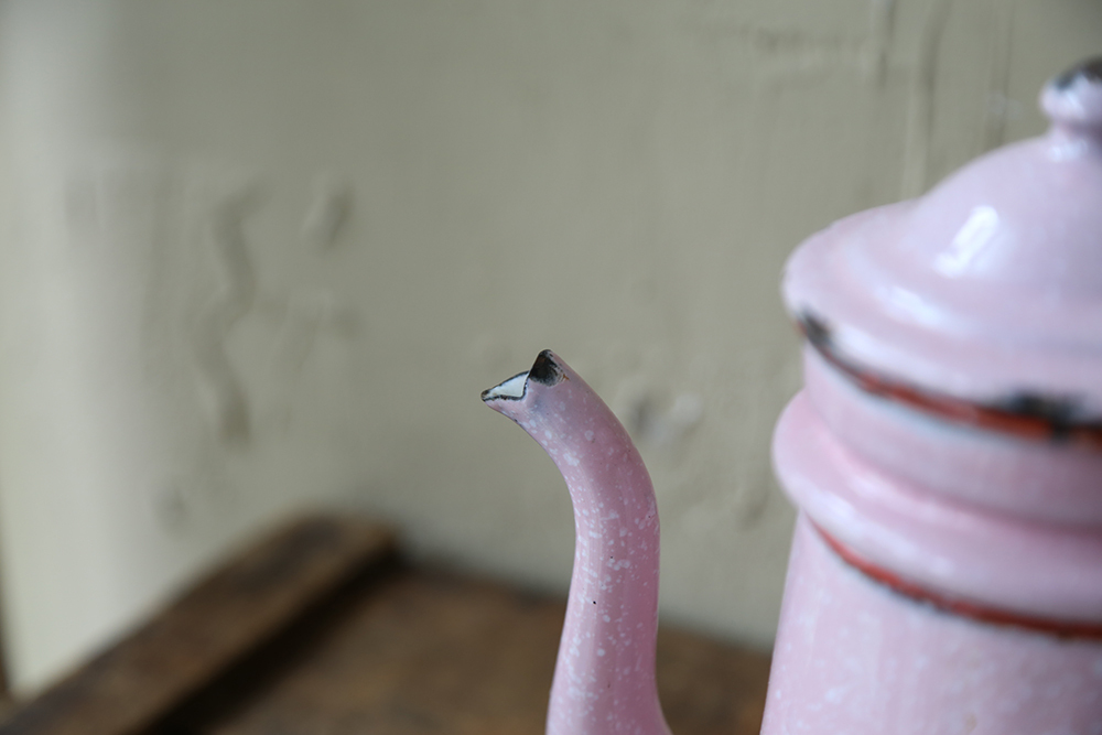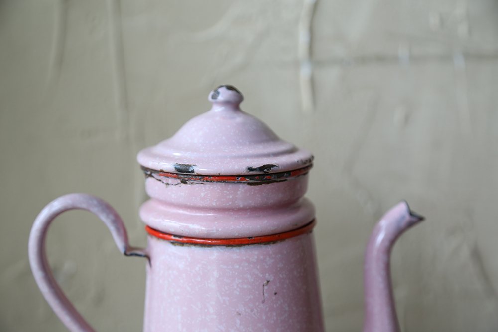 古董琺瑯咖啡壺因年代久遠,會有碰撞的歲月痕跡 ,建議作為擺飾用
