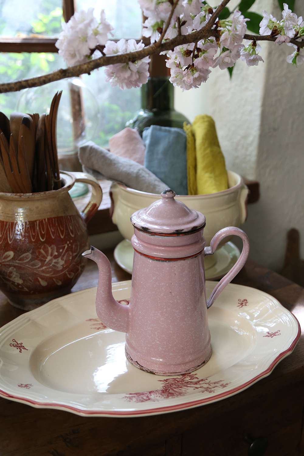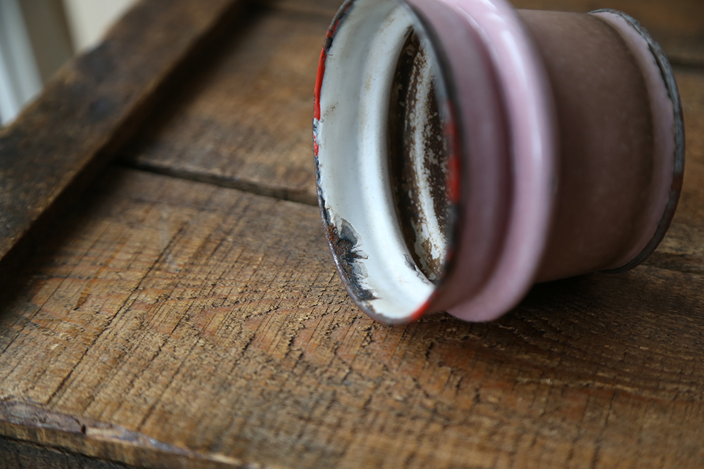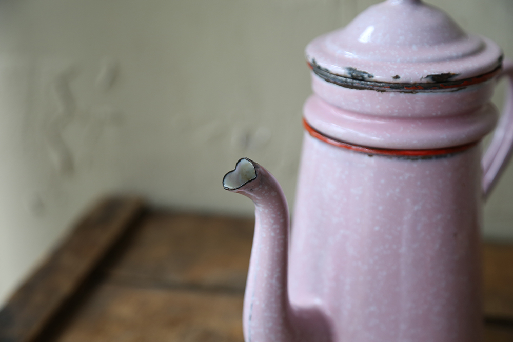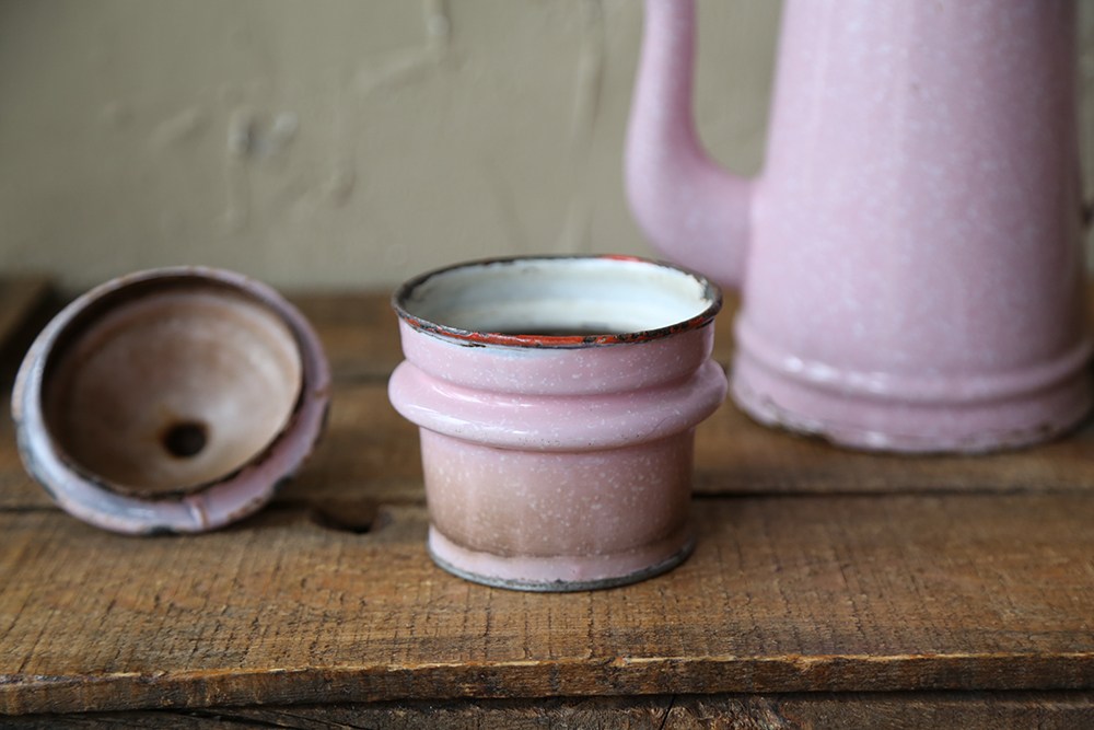 古董琺瑯咖啡壺因年代久遠,會有碰撞的歲月痕跡 ,建議作為擺飾用