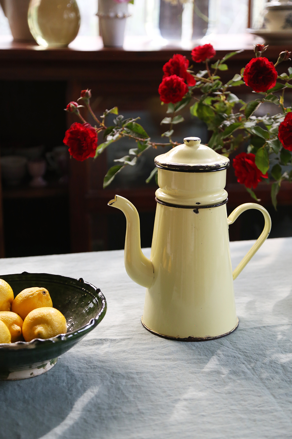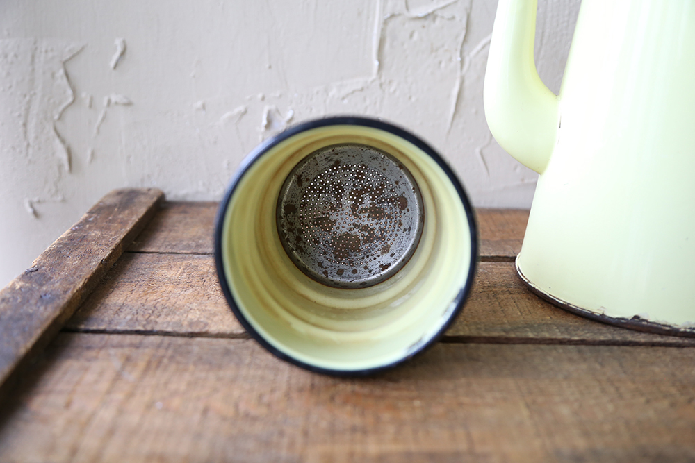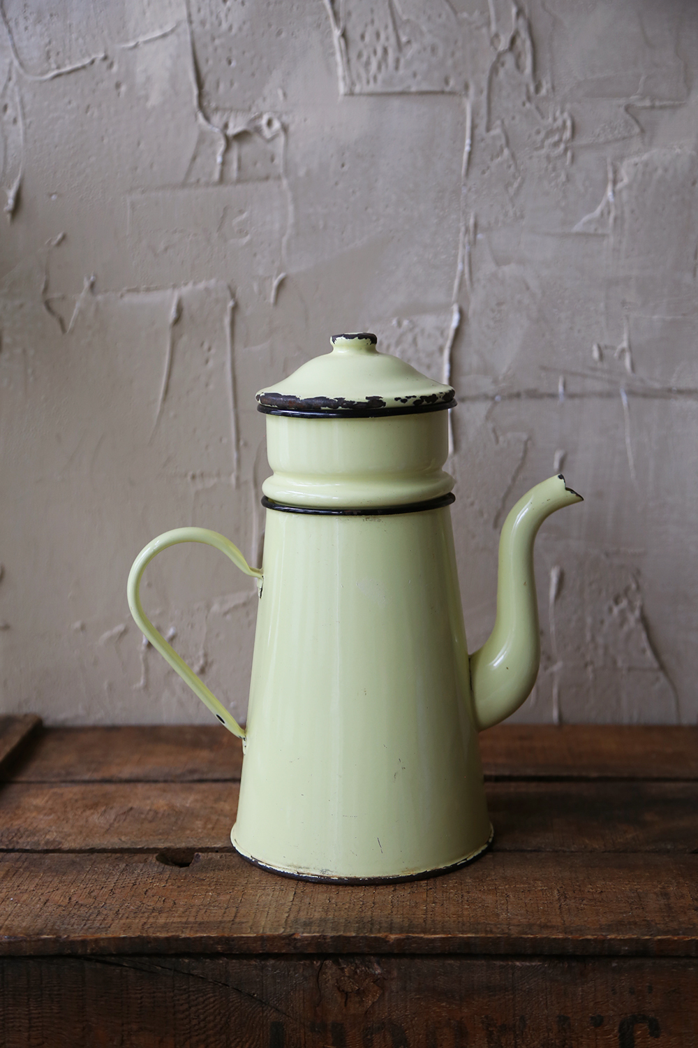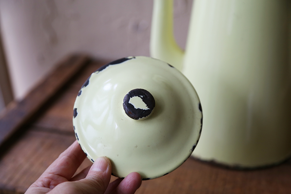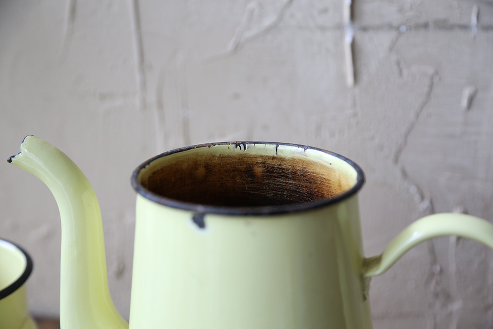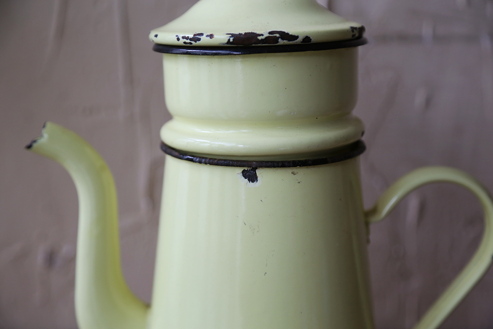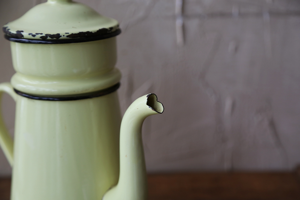 古董琺瑯咖啡壺因年代久遠,會有碰撞的歲月痕跡 ,建議作為擺飾用