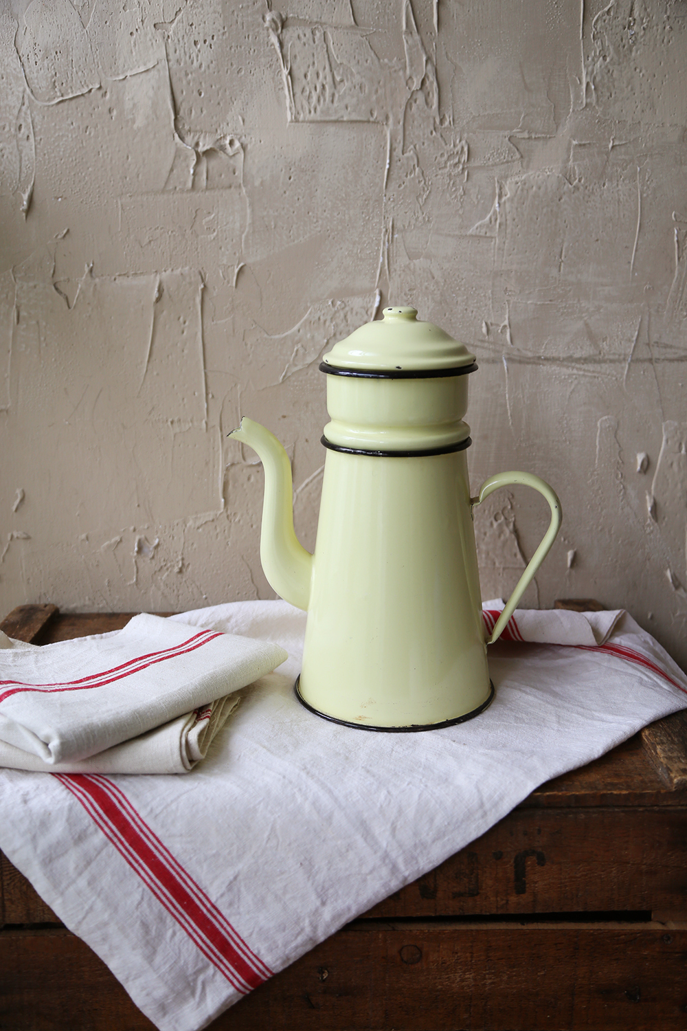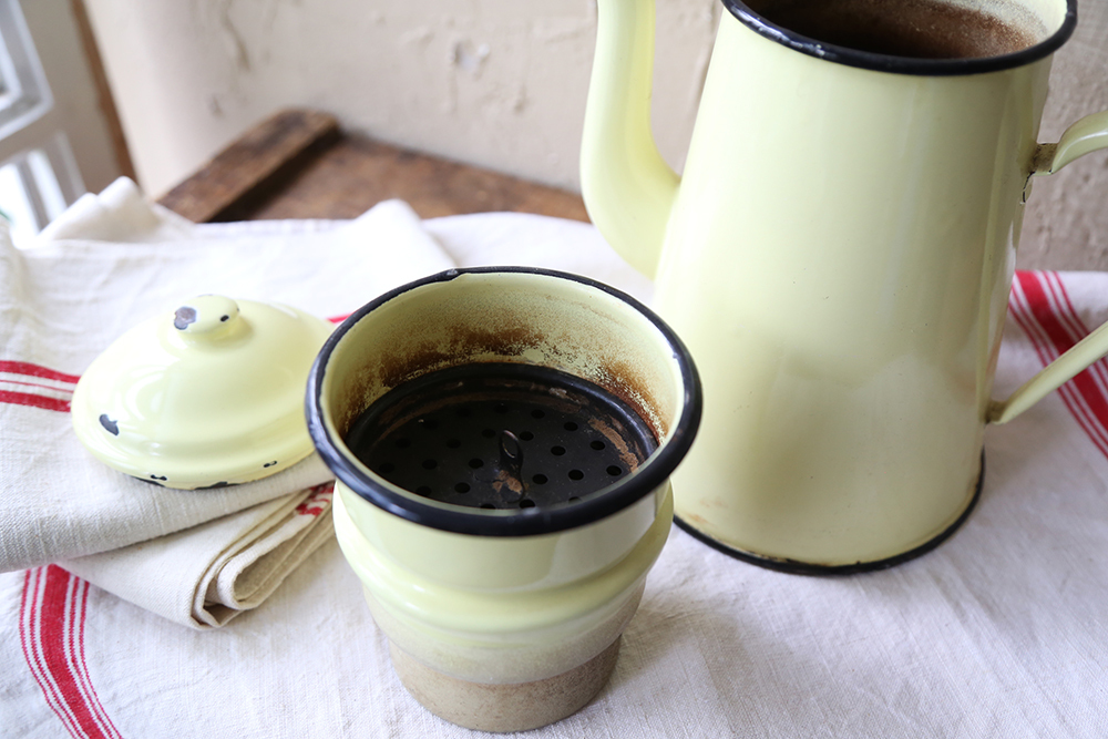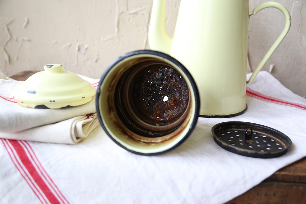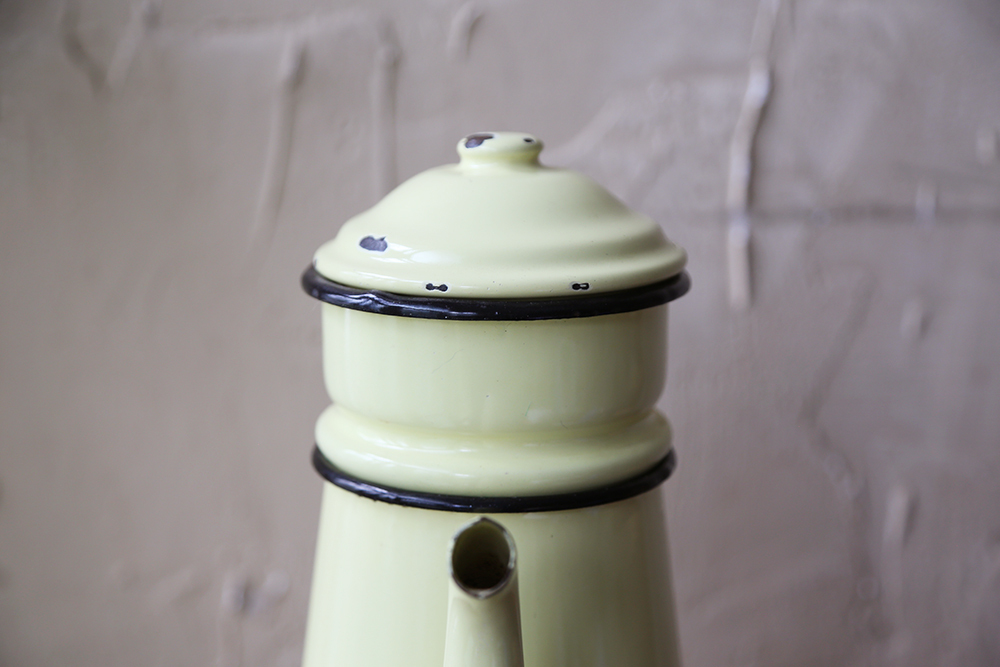 古董琺瑯咖啡壺因年代久遠,會有碰撞的歲月痕跡 ,建議作為擺飾用