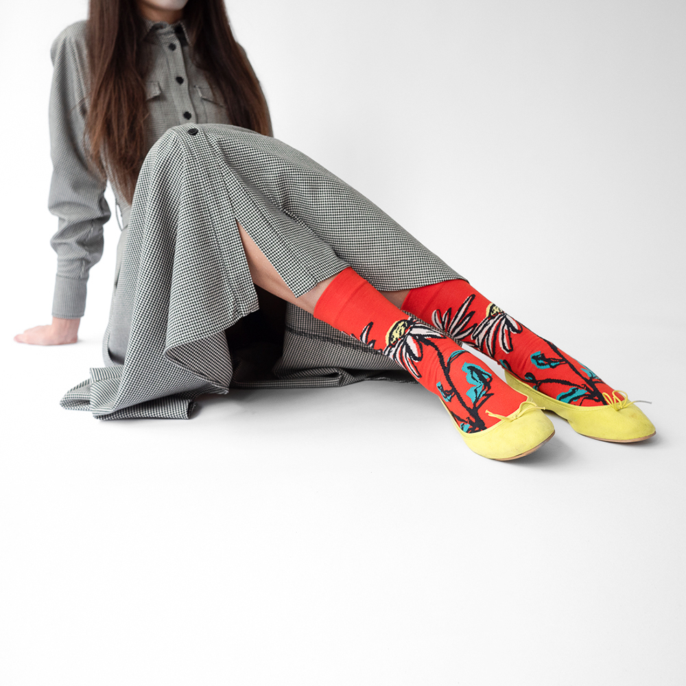 在義大利製布紡紗,全程在法國設計以及法國和葡萄牙生產的每一雙襪子。