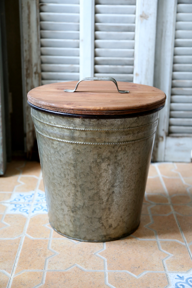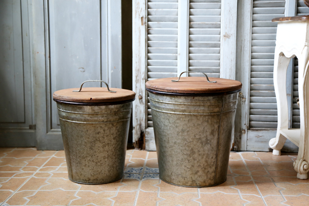 經典簡約的法式馬口鐵收納桶,搭配木製的圓蓋,增添了生活的暖度