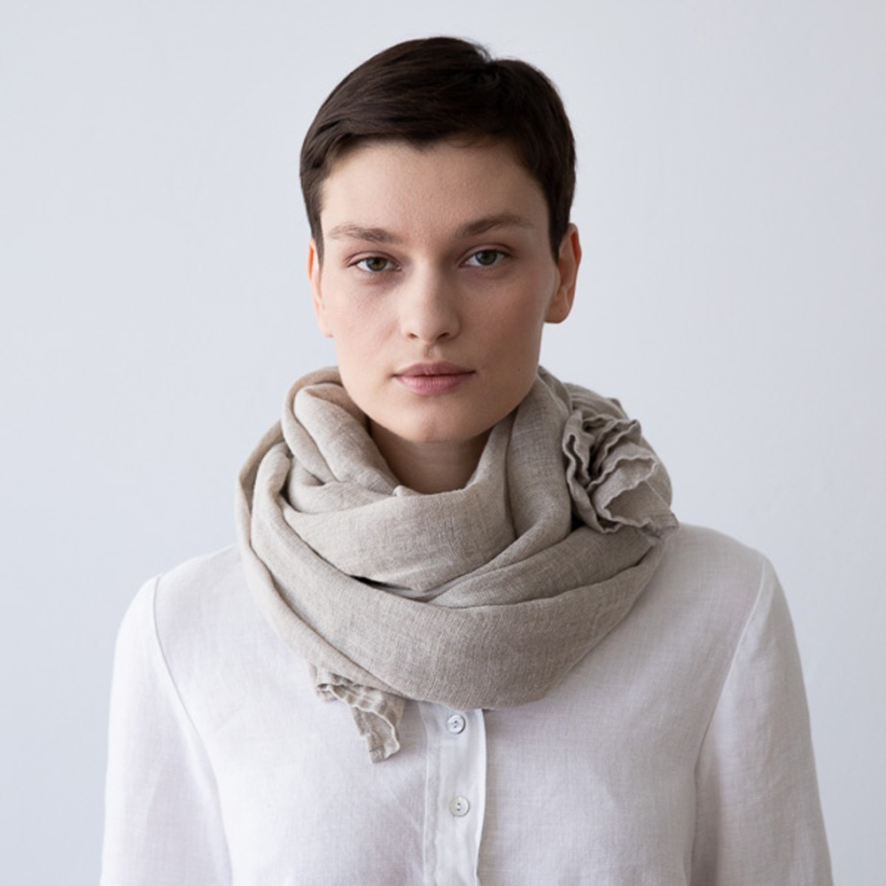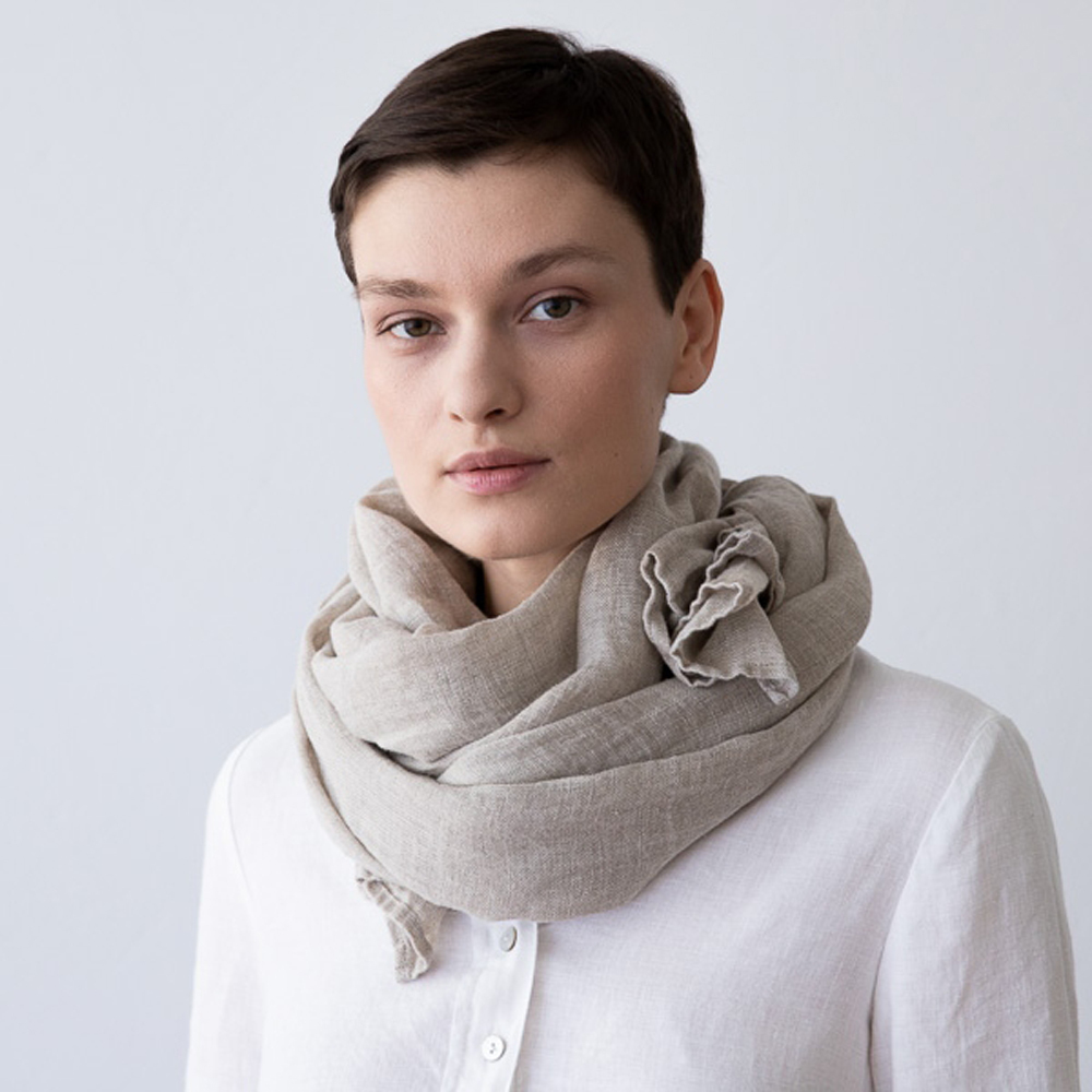 使用100%的亞麻製成,純淨的抓皺感,非常柔軟舒適,材質輕柔適合隨身攜帶。