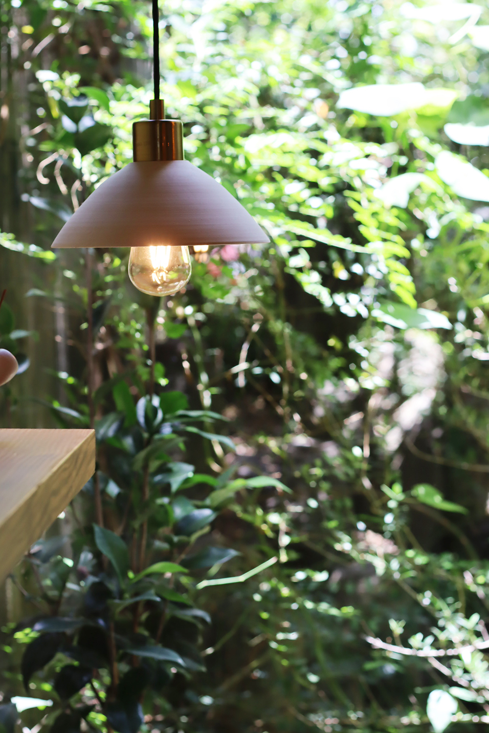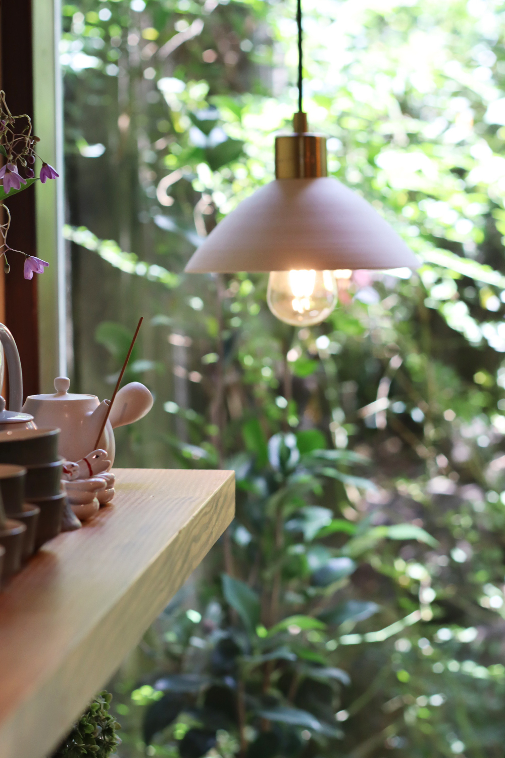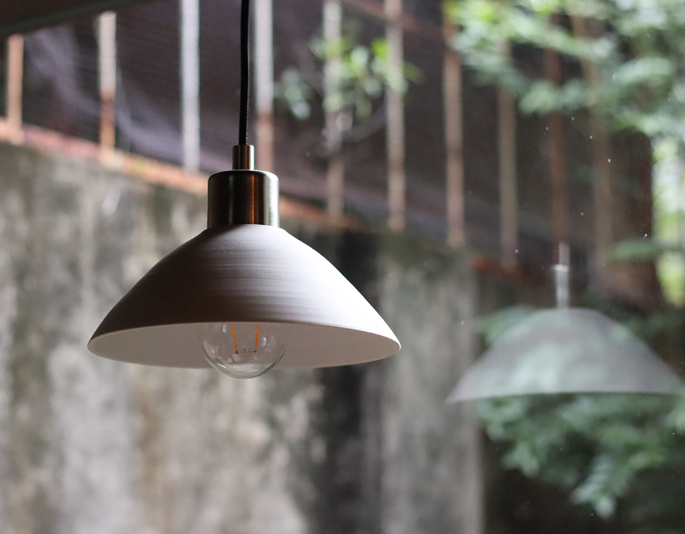 經過高溫燒窯,以白瓷土燒製的陶燈,保留土最原本的樣貌