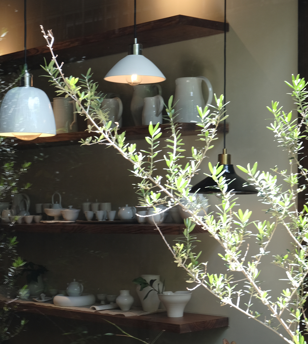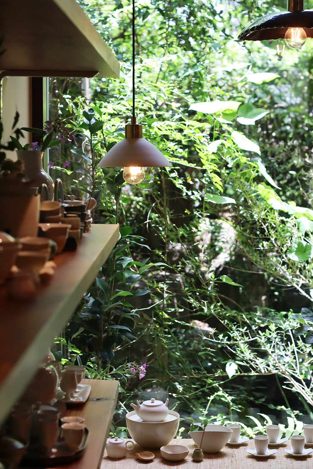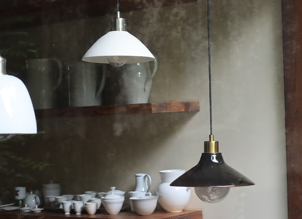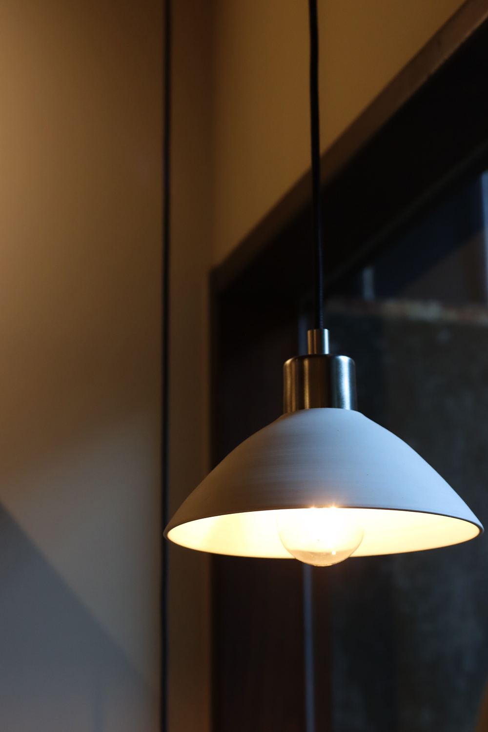 經過高溫燒窯,以白瓷土燒製的陶燈,保留土最原本的樣貌