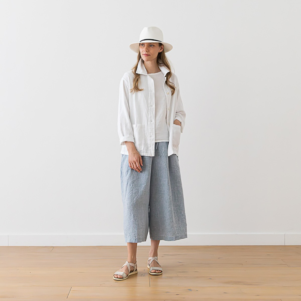 炎熱天氣可搭配無袖亞麻背心,涼爽清晨或夜晚可加一件夾克