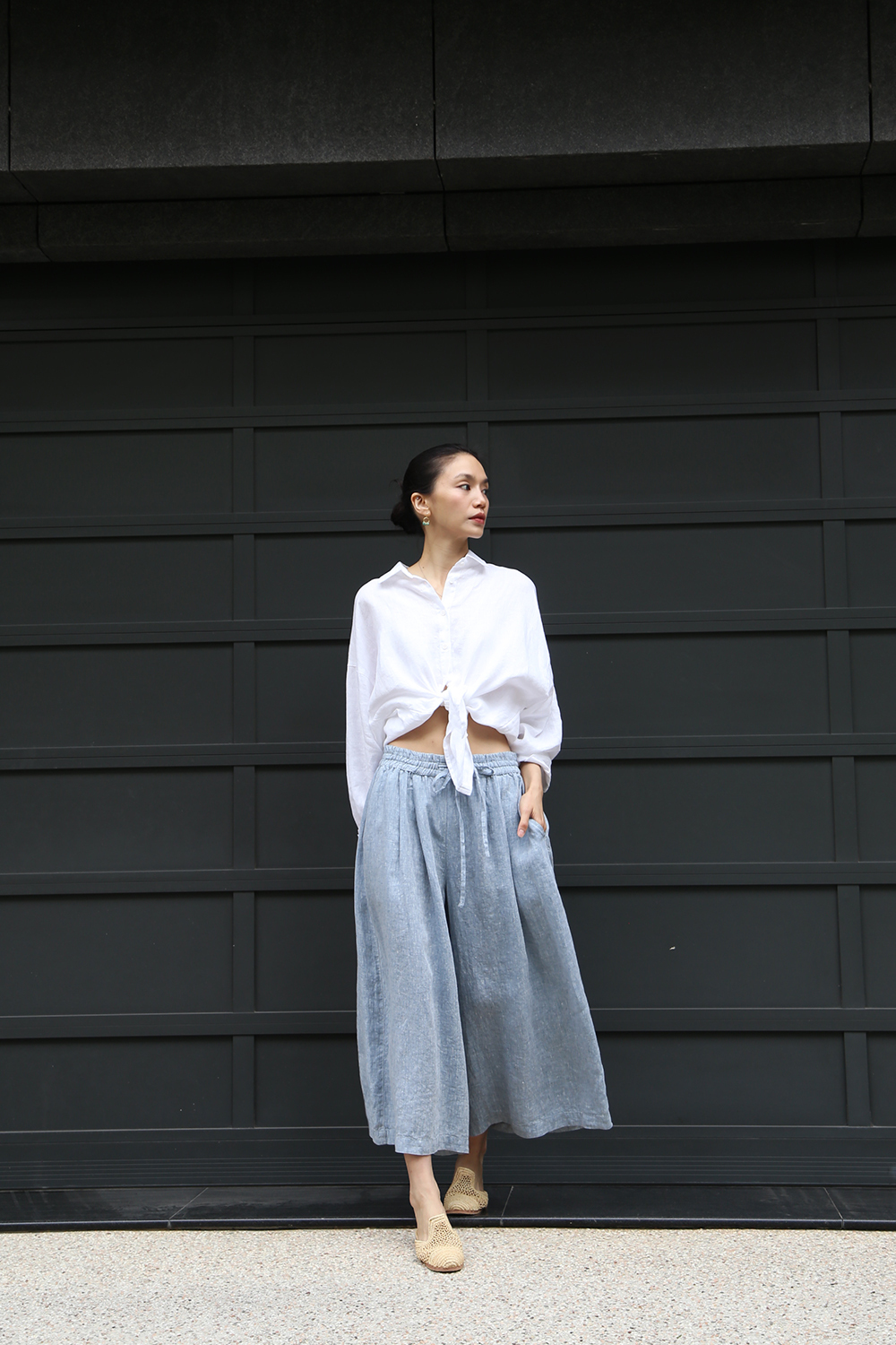 穿上這款完美剪裁的寬褲亞麻褲裙,開啟新一季的精彩