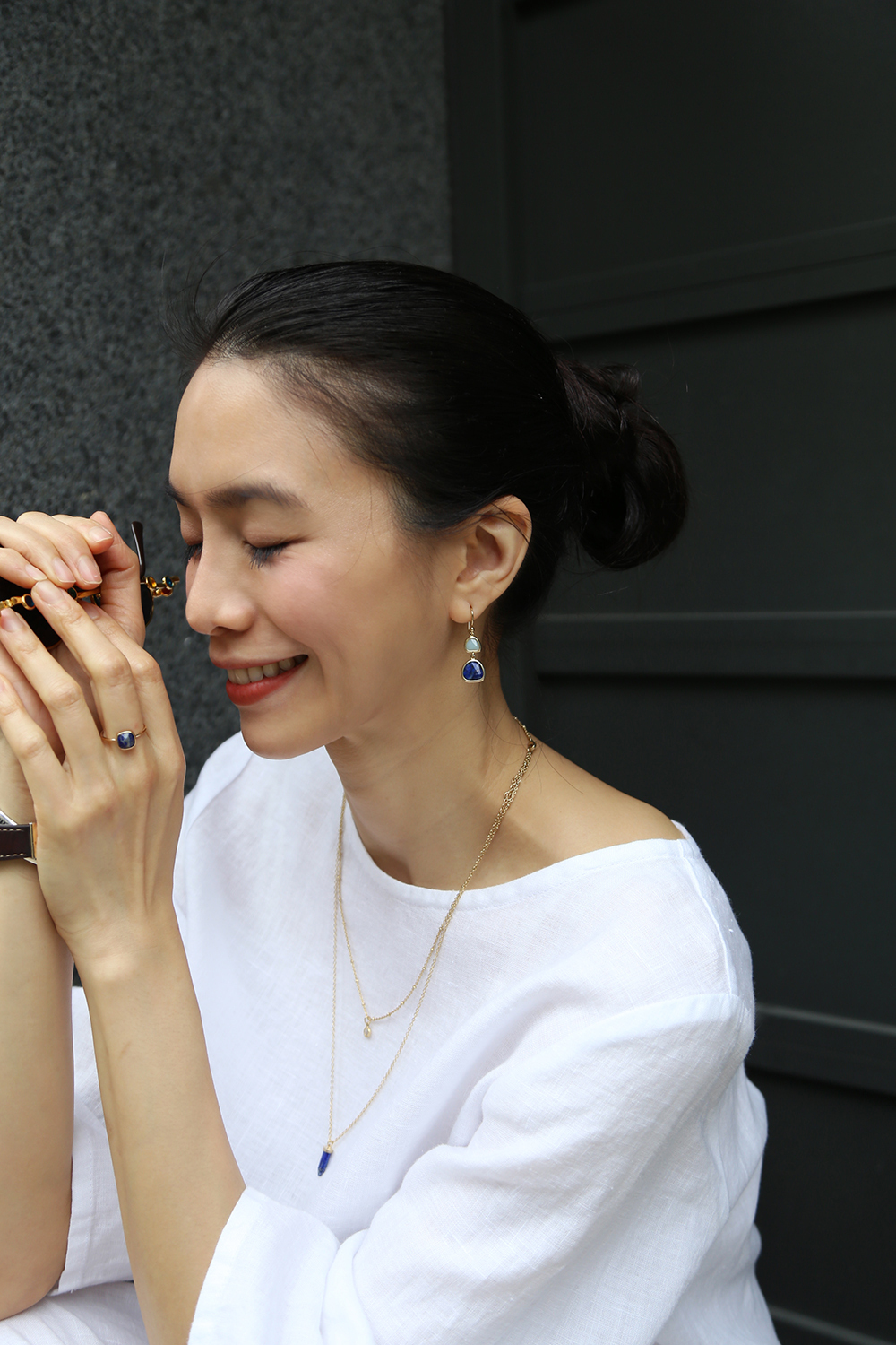 不對稱下擺在後背略微加長,而五分袖的開口則略微加寬