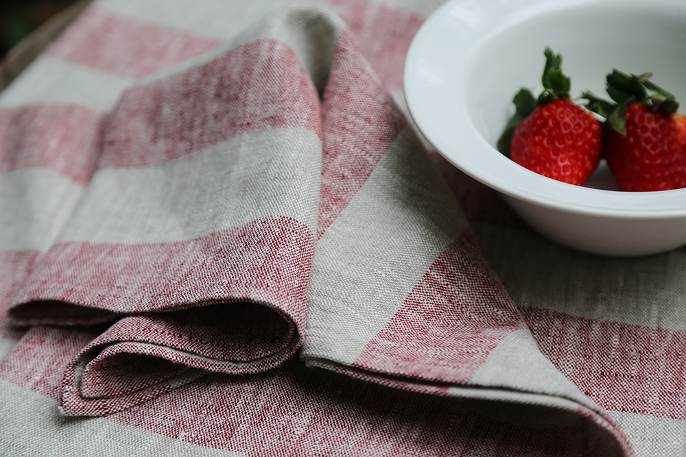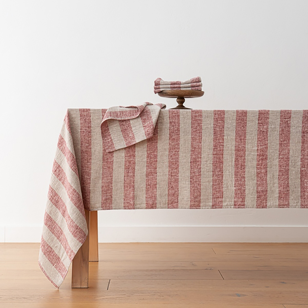 以天然未染色亞麻為底,飾以醒目而平衡的 5 厘米紗線染色條紋