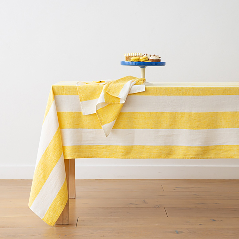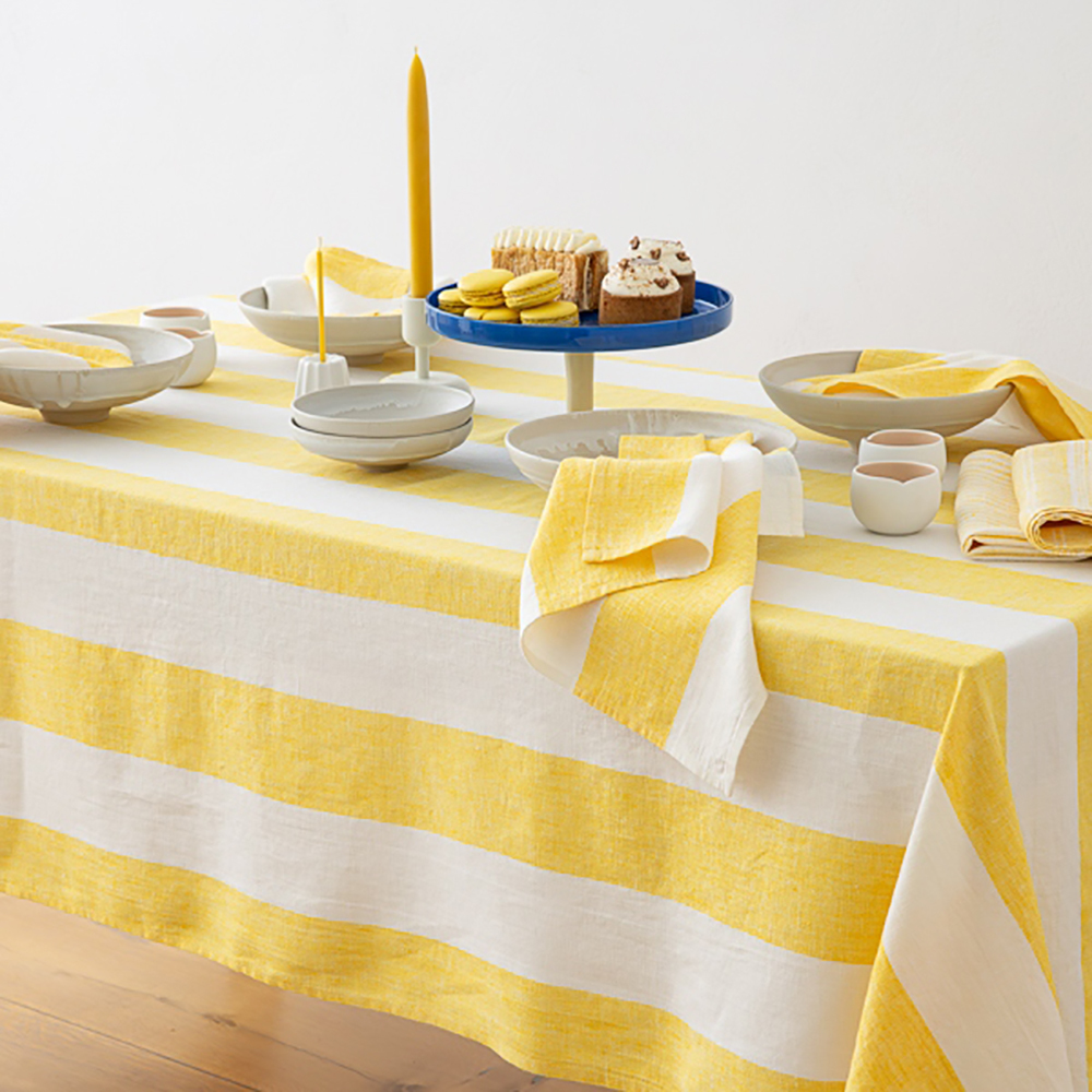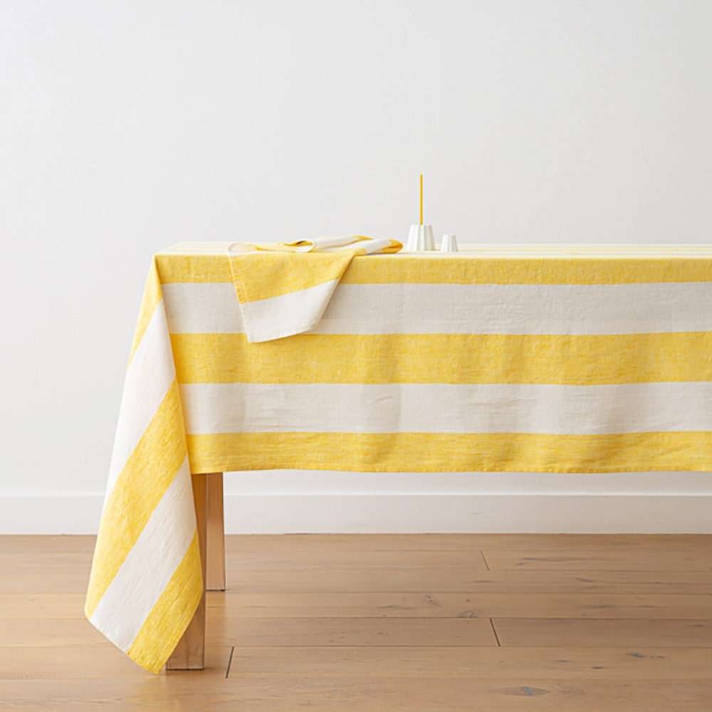 我們提供一系列加厚預洗條紋亞麻桌布、桌旗、餐巾和餐墊