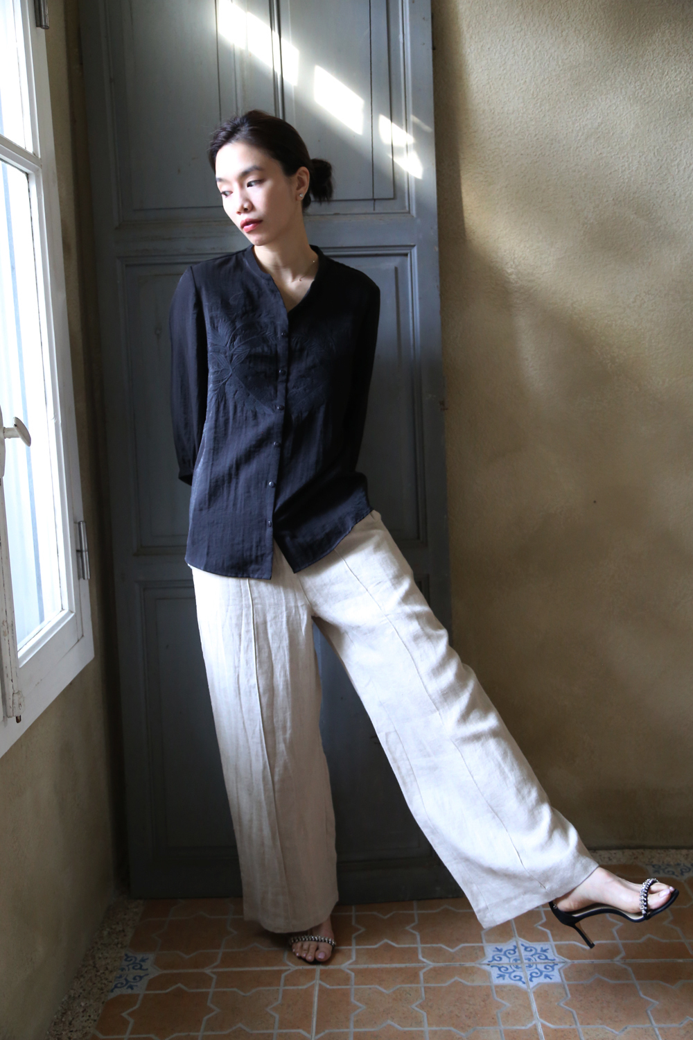 亞麻大寬褲,完美打版,中高腰前面西裝褲的設計,可以有正式感