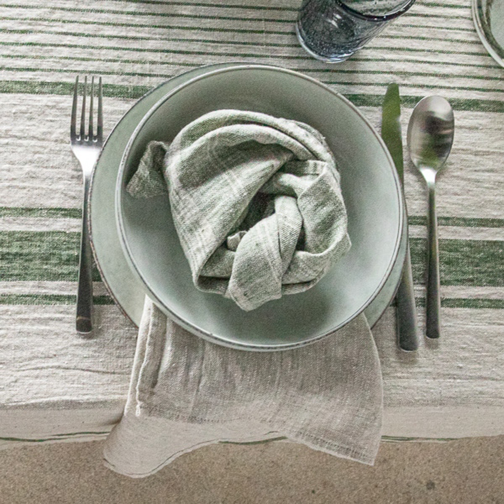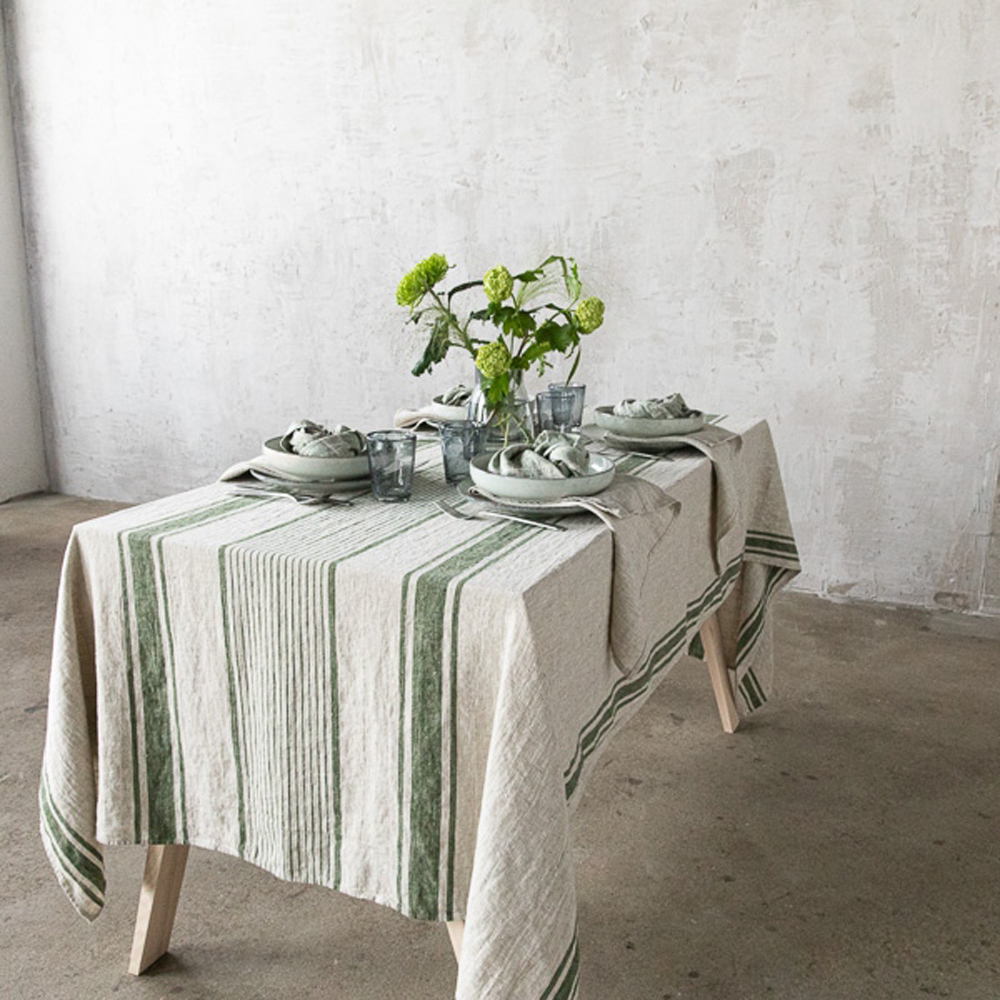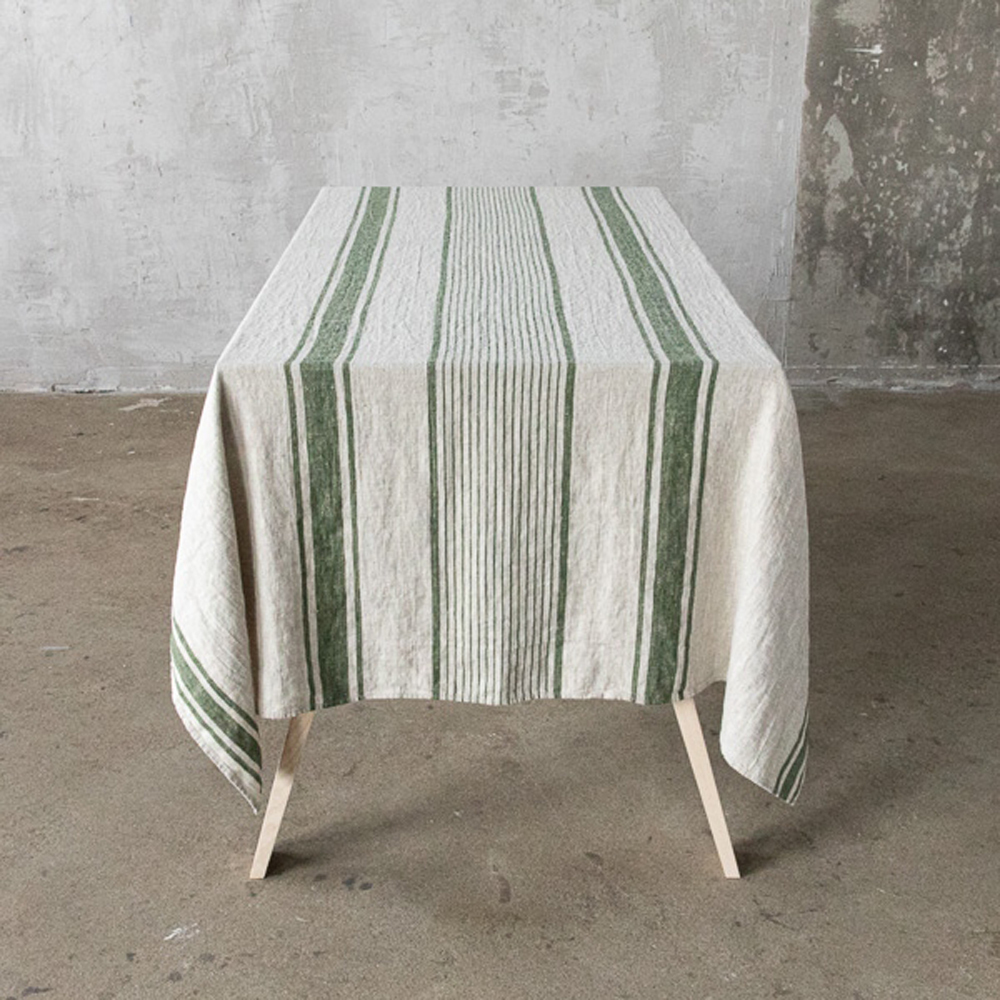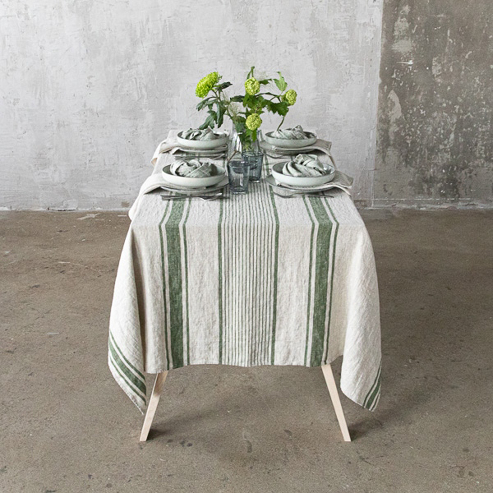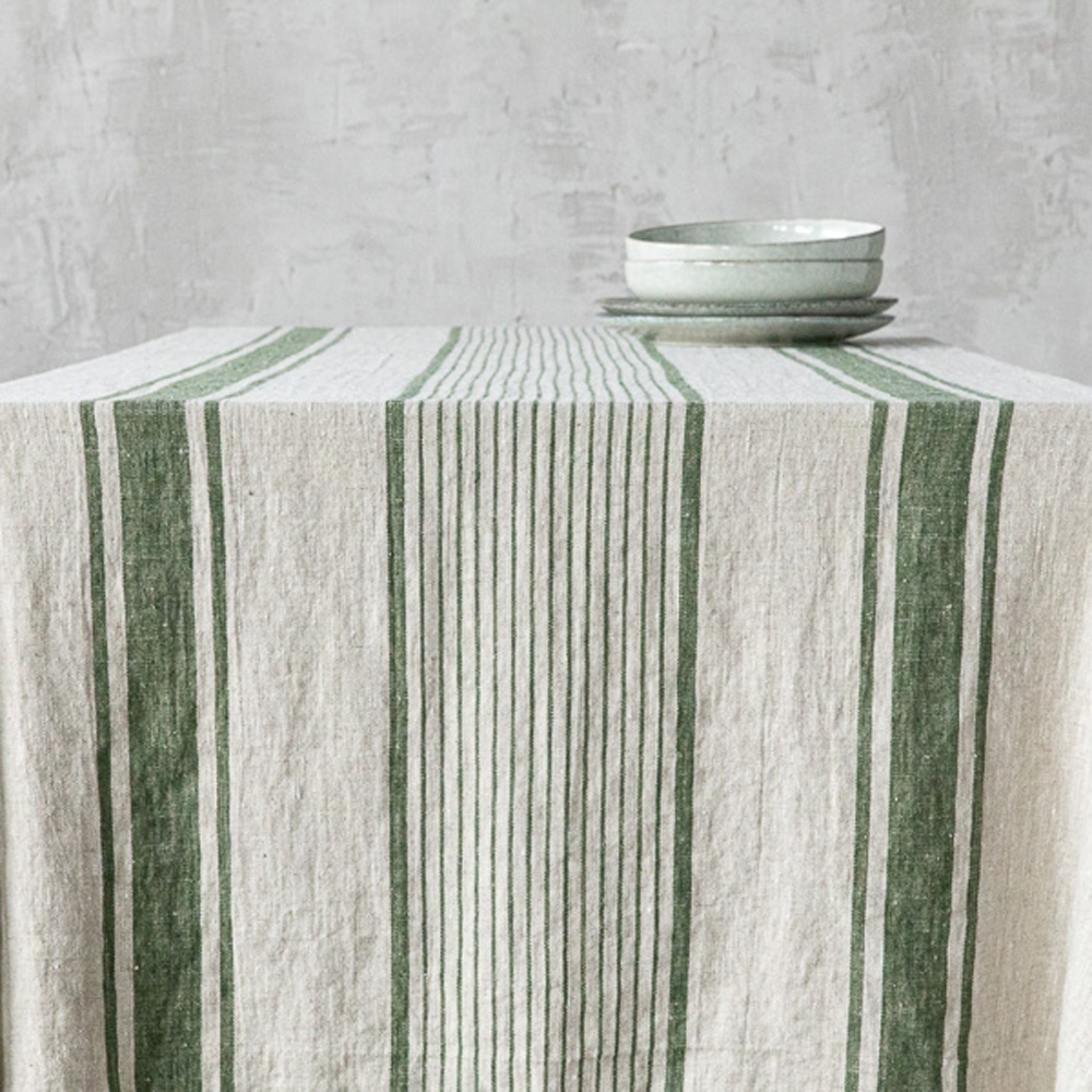 普羅旺斯亞麻桌巾-森林綠條紋136x250cm