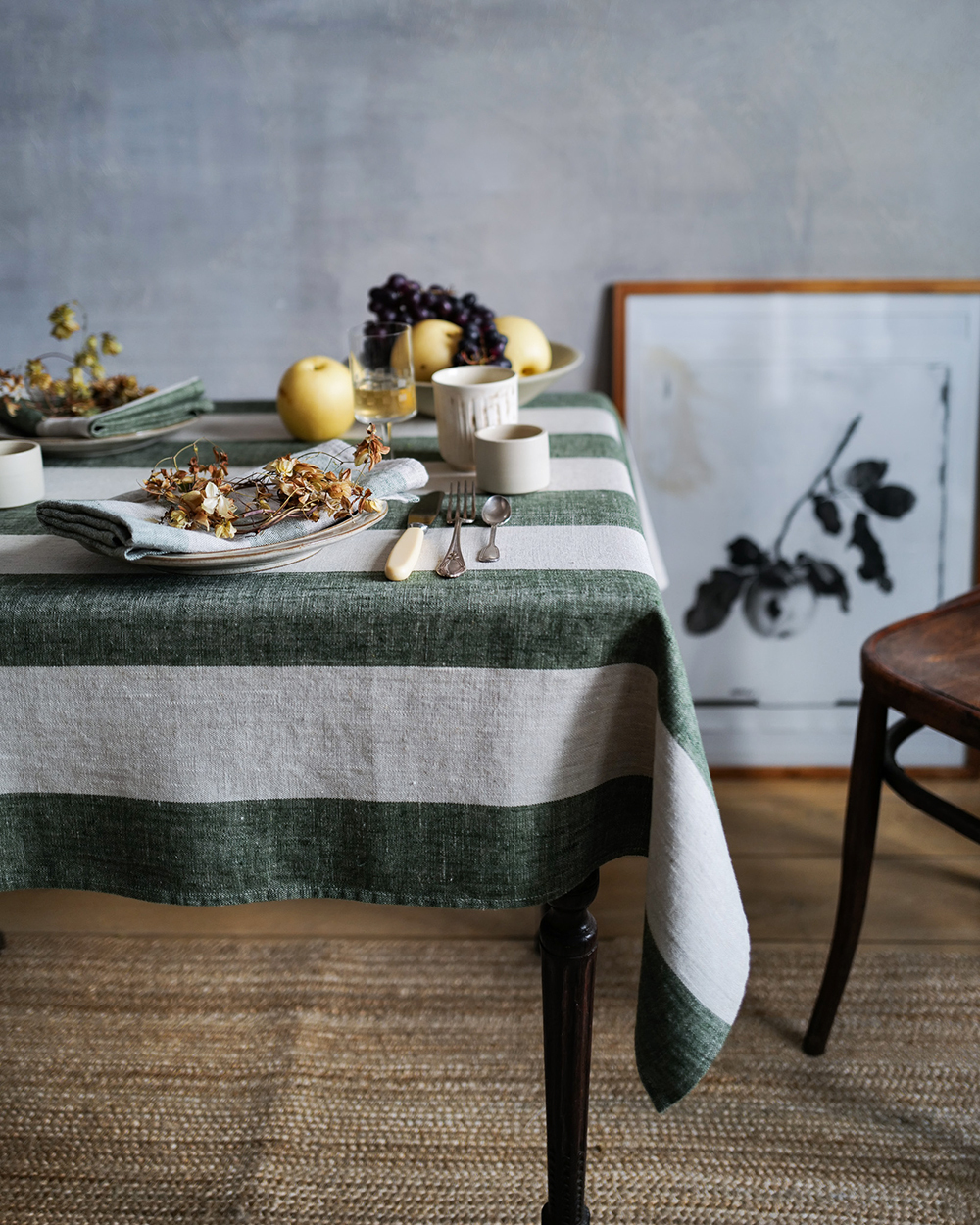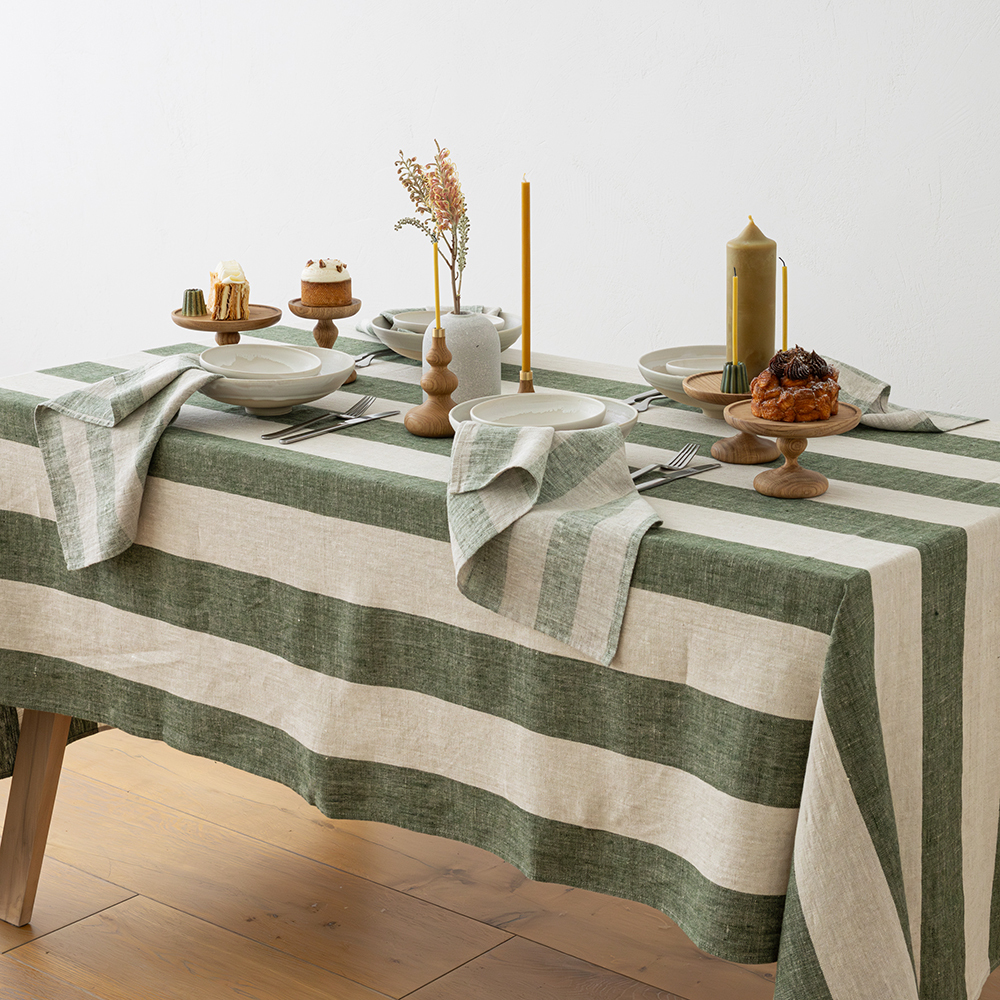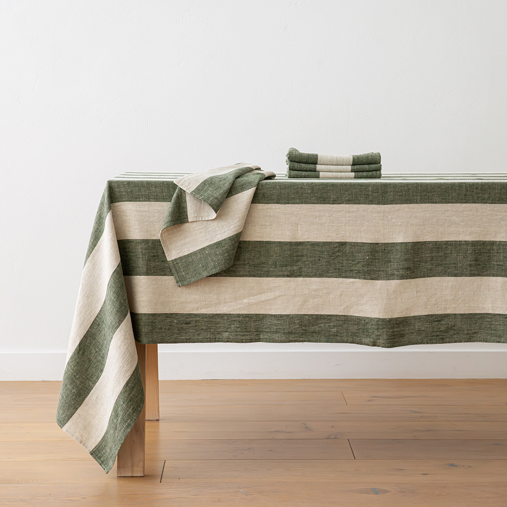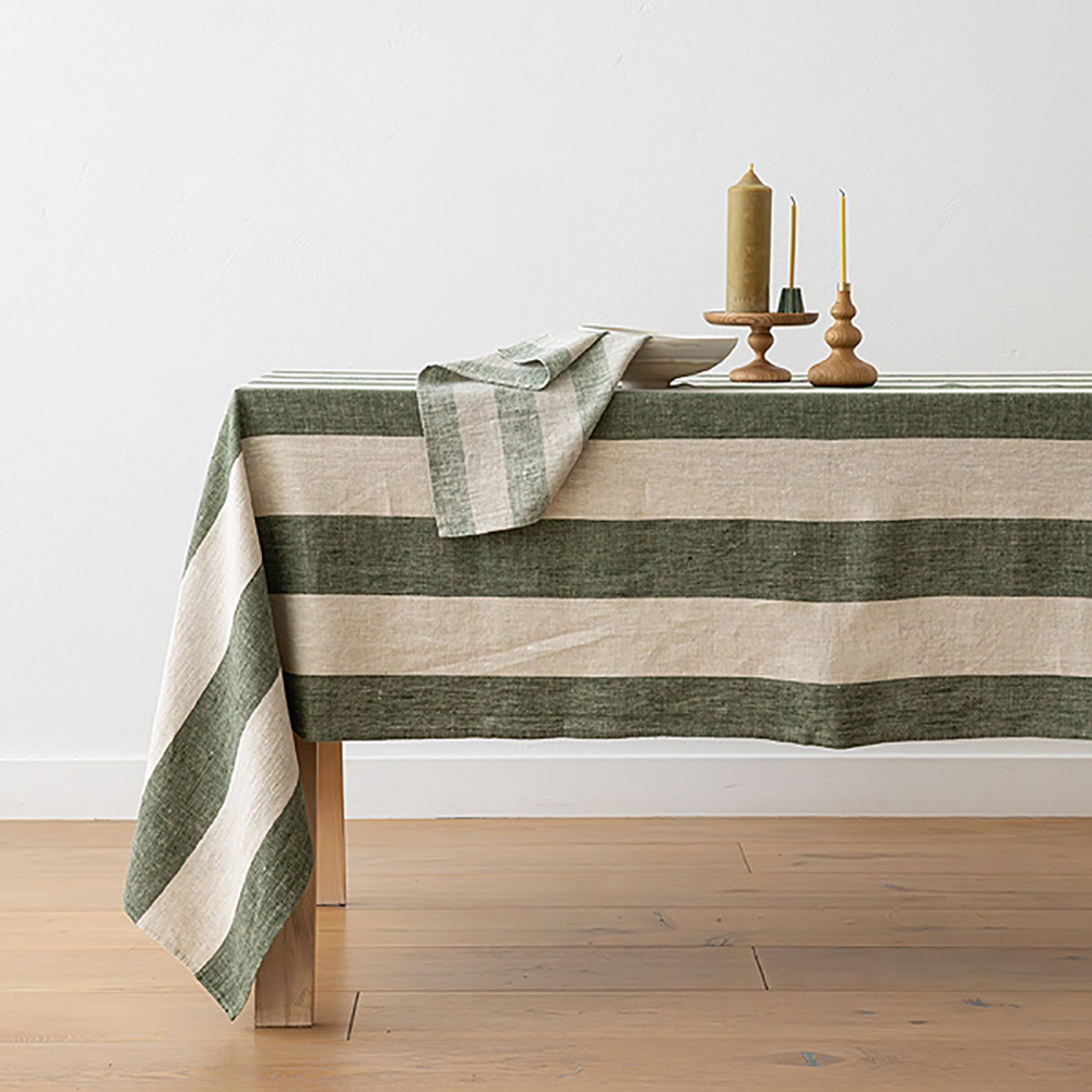 將天然未染色亞麻的永恆耐用性與醒目的紗線染色條紋完美融合,打造出經典的麻袋條紋圖案