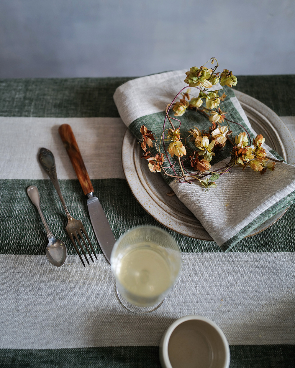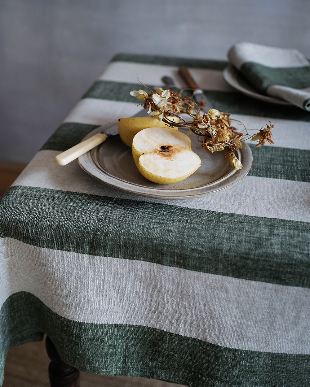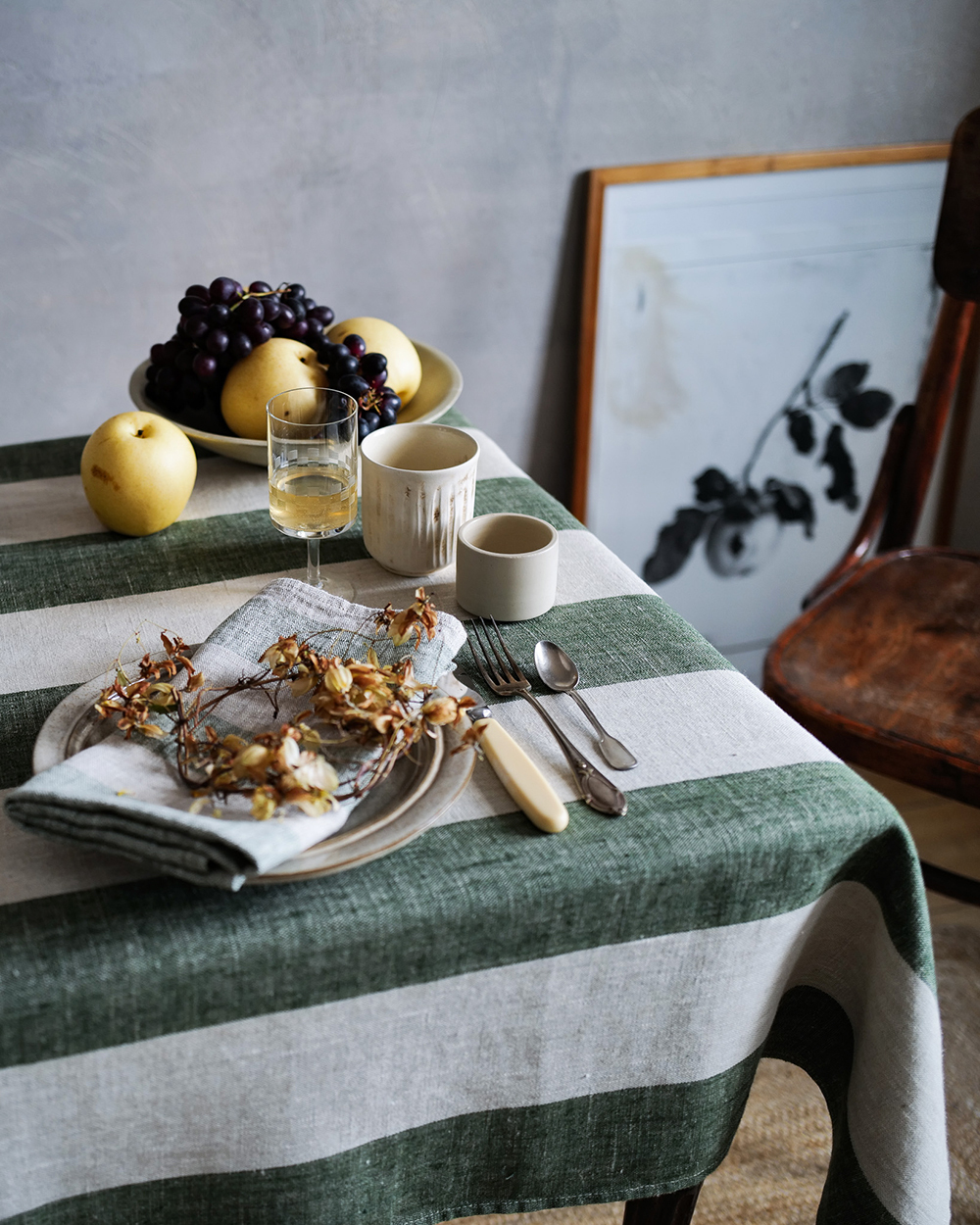 將天然未染色亞麻的永恆耐用性與醒目的紗線染色條紋完美融合,打造出經典的麻袋條紋圖案