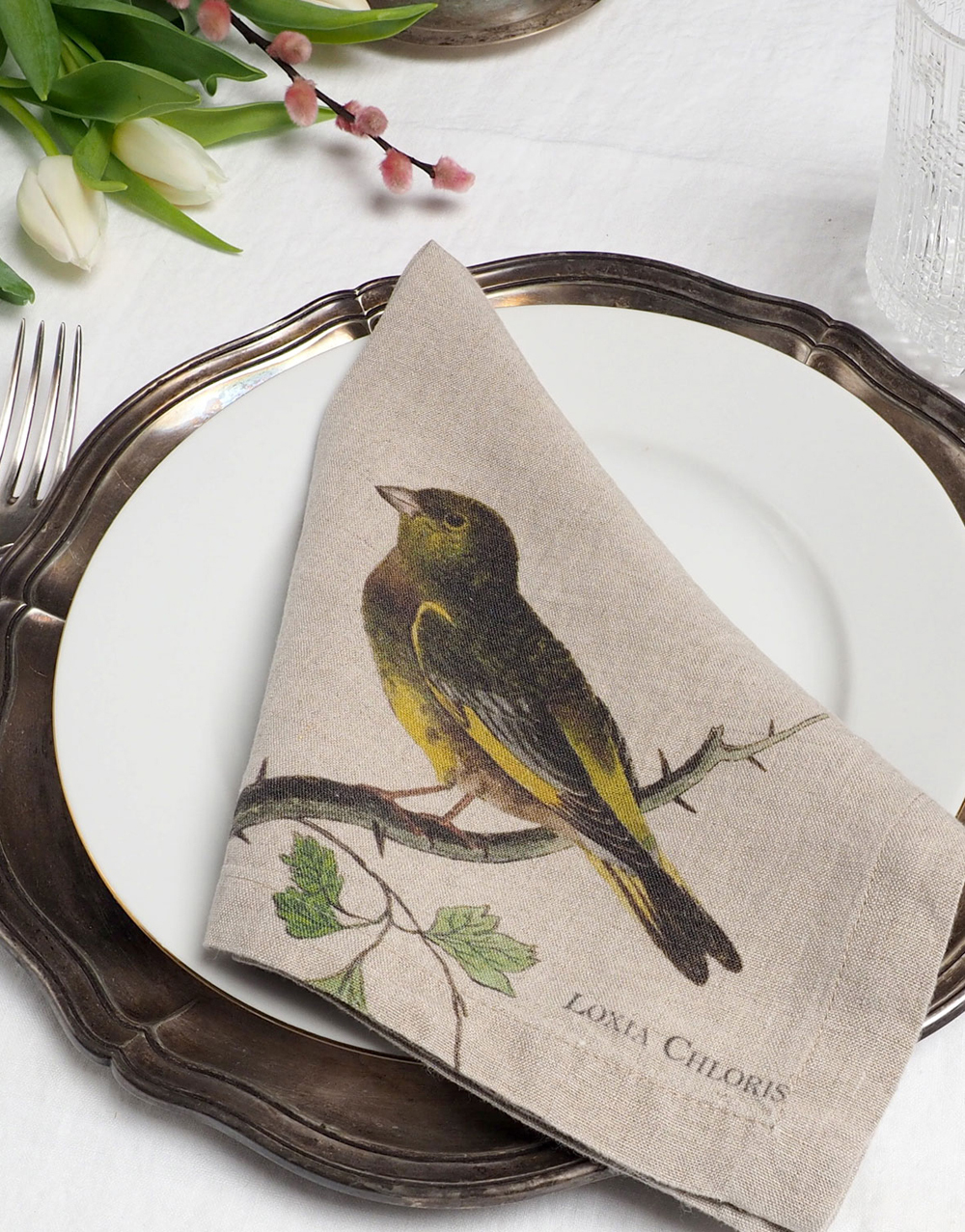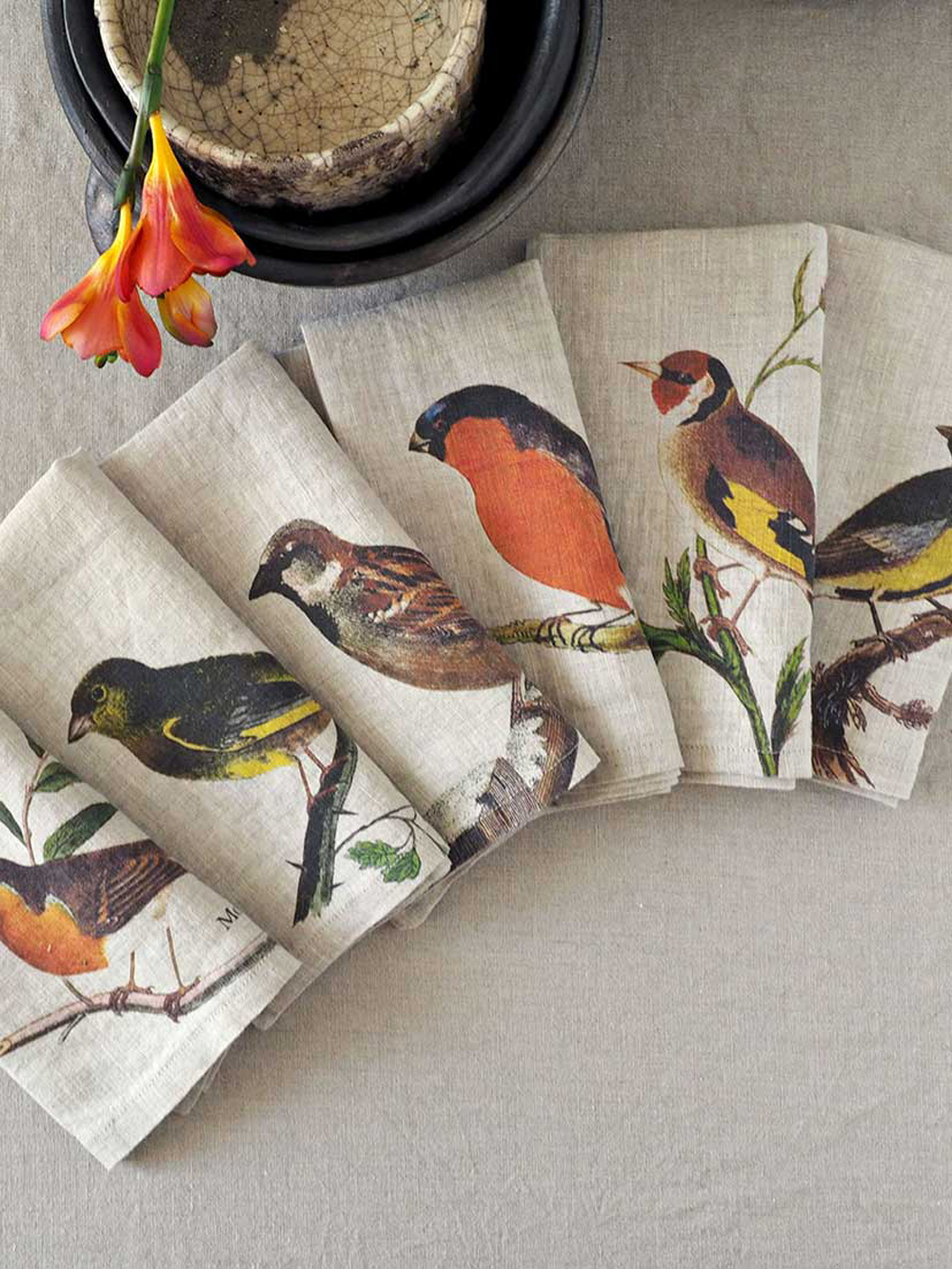 對於浪漫和熱愛野生動物的靈魂來說,這些迷人 的Garden Birds印花亞麻餐巾是餐桌裝飾物品,無法抗拒!