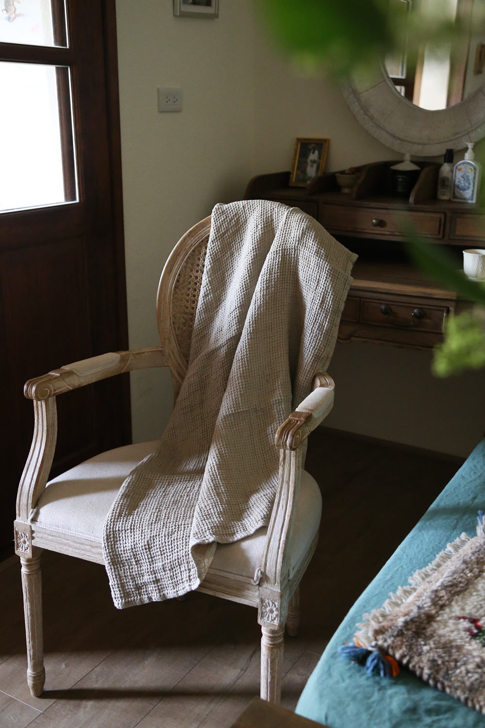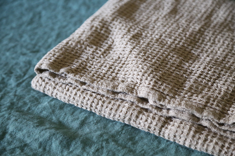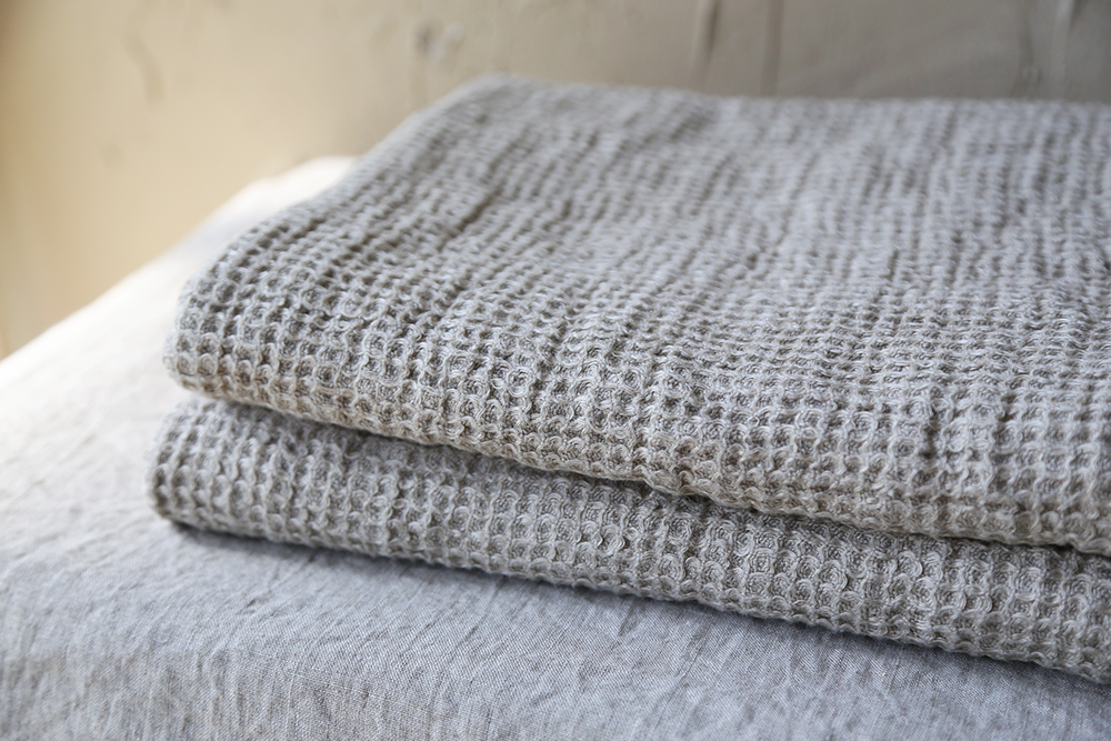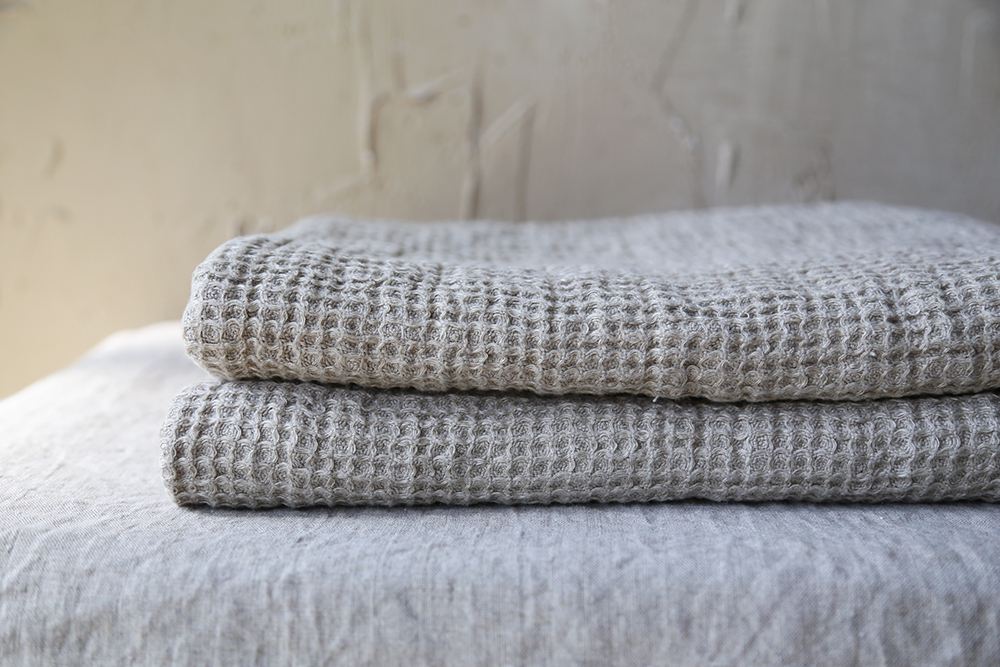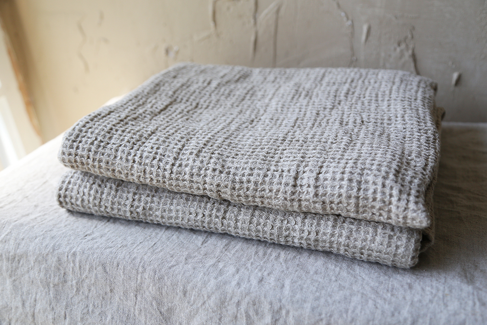 華夫格亞麻大浴巾,由100%水洗亞麻蜂窩狀編織製成,非常柔軟
