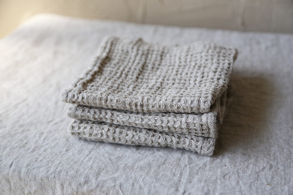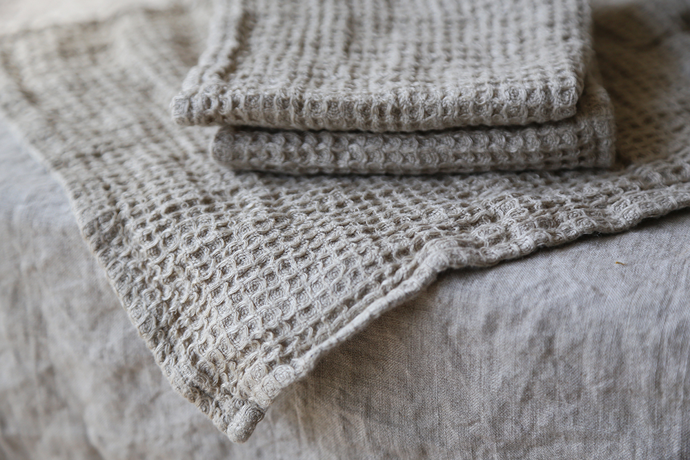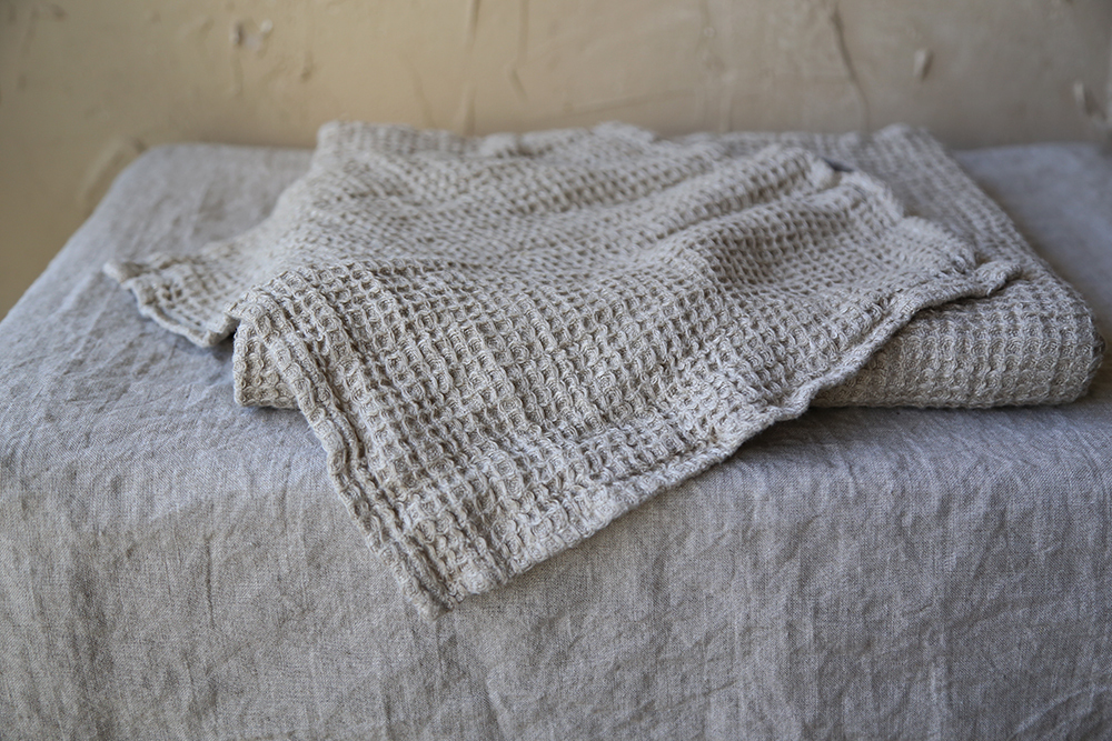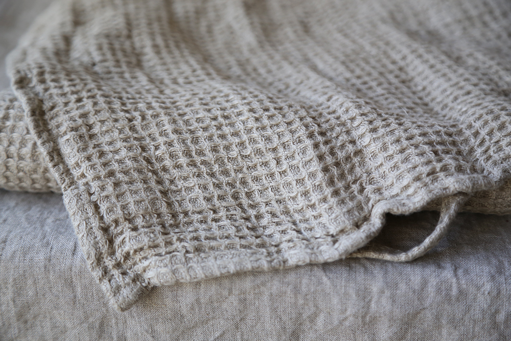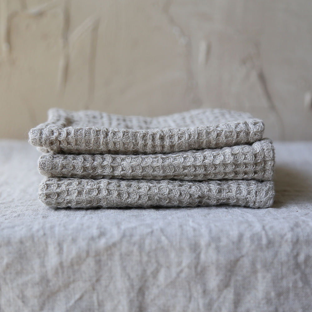 華夫格亞麻方巾,由100%水洗亞麻蜂窩狀編織製成,非常柔軟