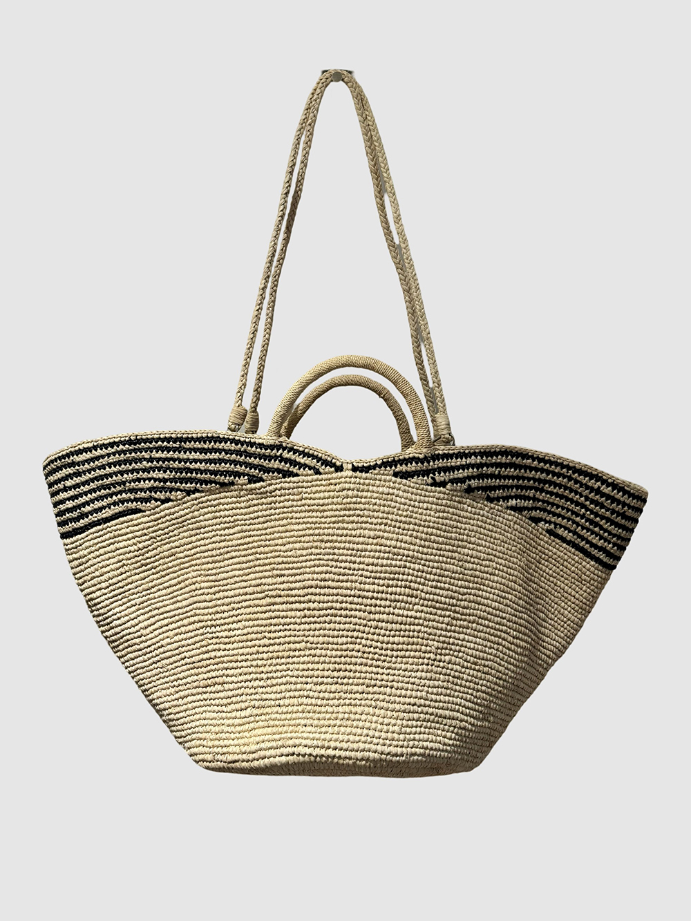 MAYA拉菲草手提肩背兩用藤包-自然色+黑色(預購商品)