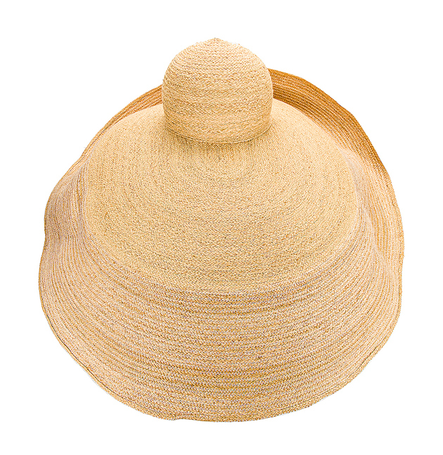 這一頂大草帽,特別挑選極為纖細的拉菲草編織而成,因此有絕佳的柔軟度