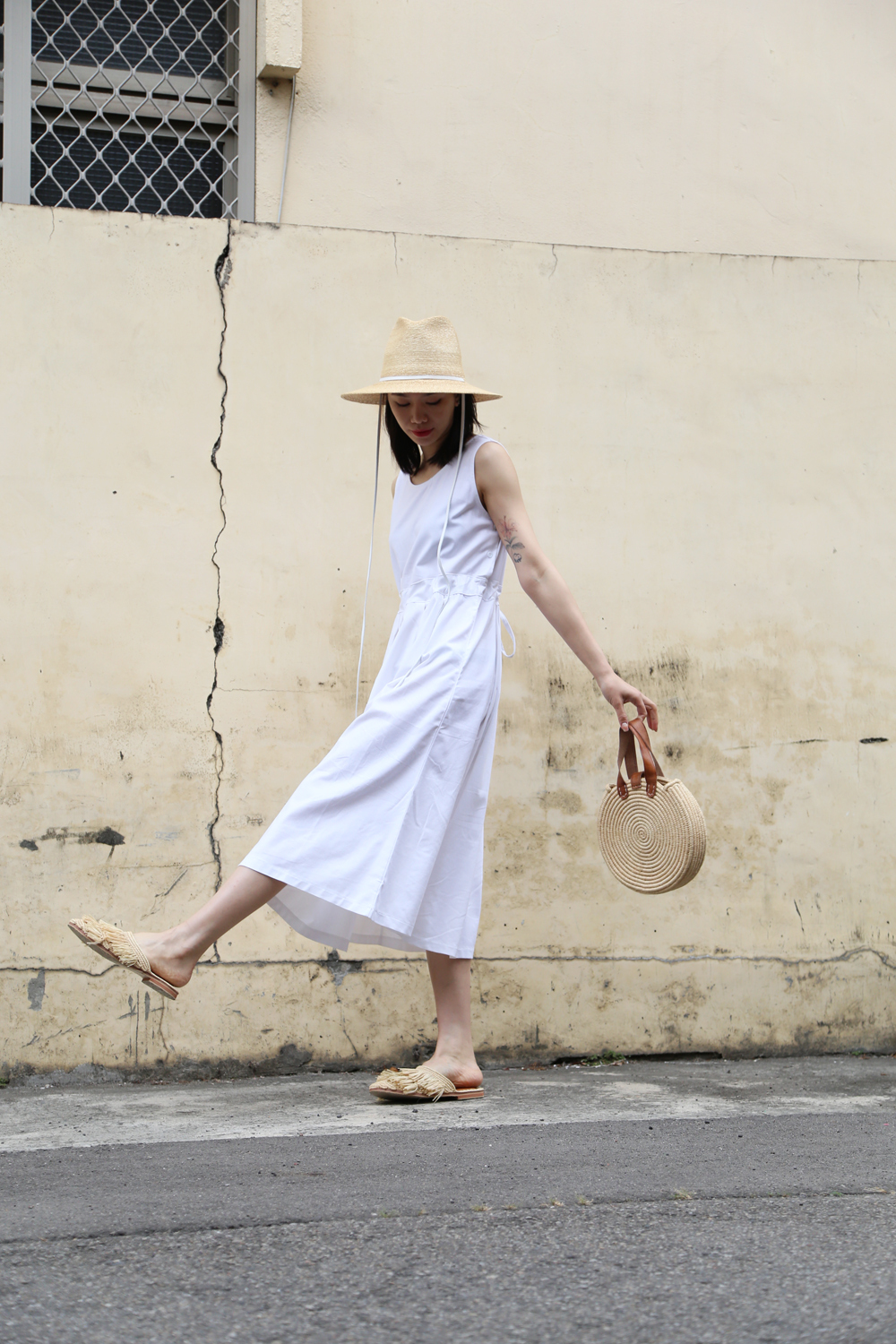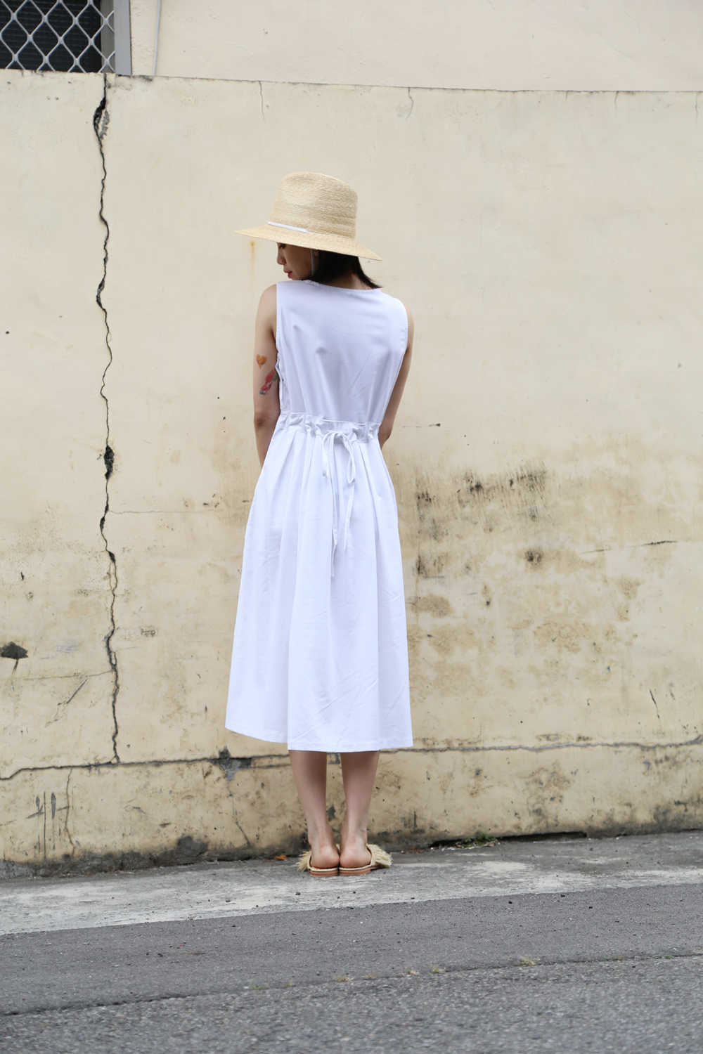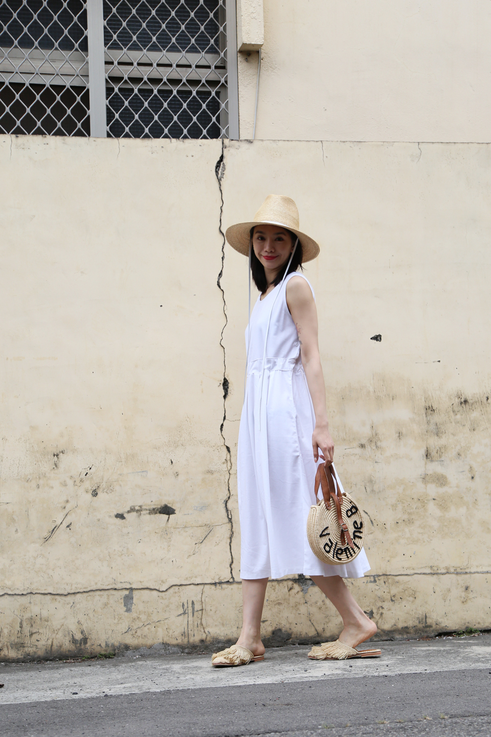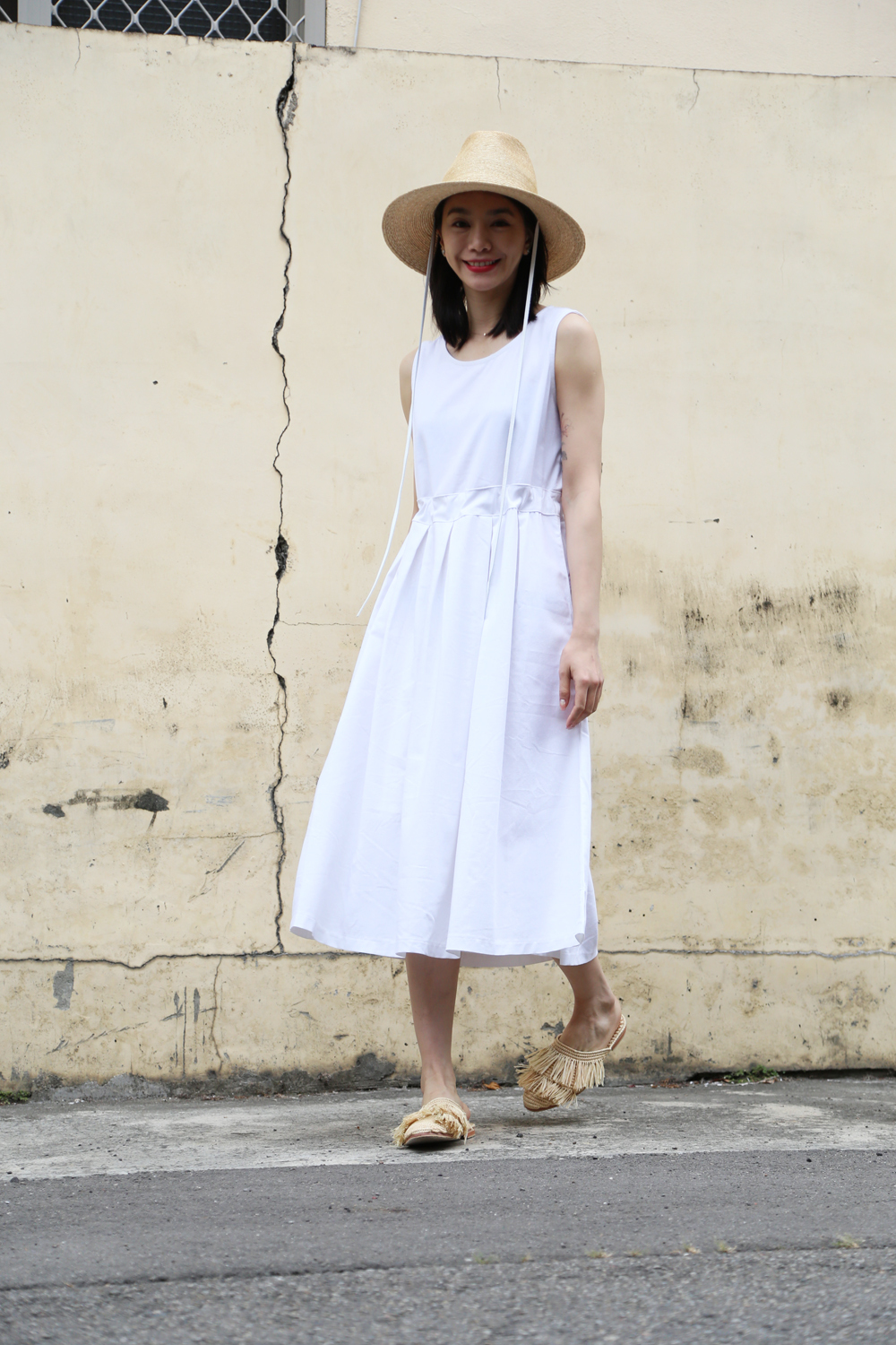繫上白色皮革,簡單時尚,是夏日優雅時尚或外出的防曬帽