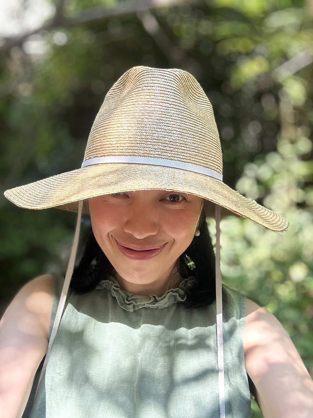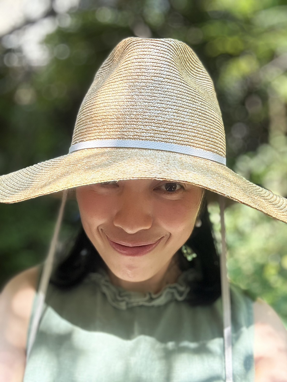 一個經典,這款麥草軟呢帽帶有略微超大的表冠,低垂在額頭上,提供充足的陰影